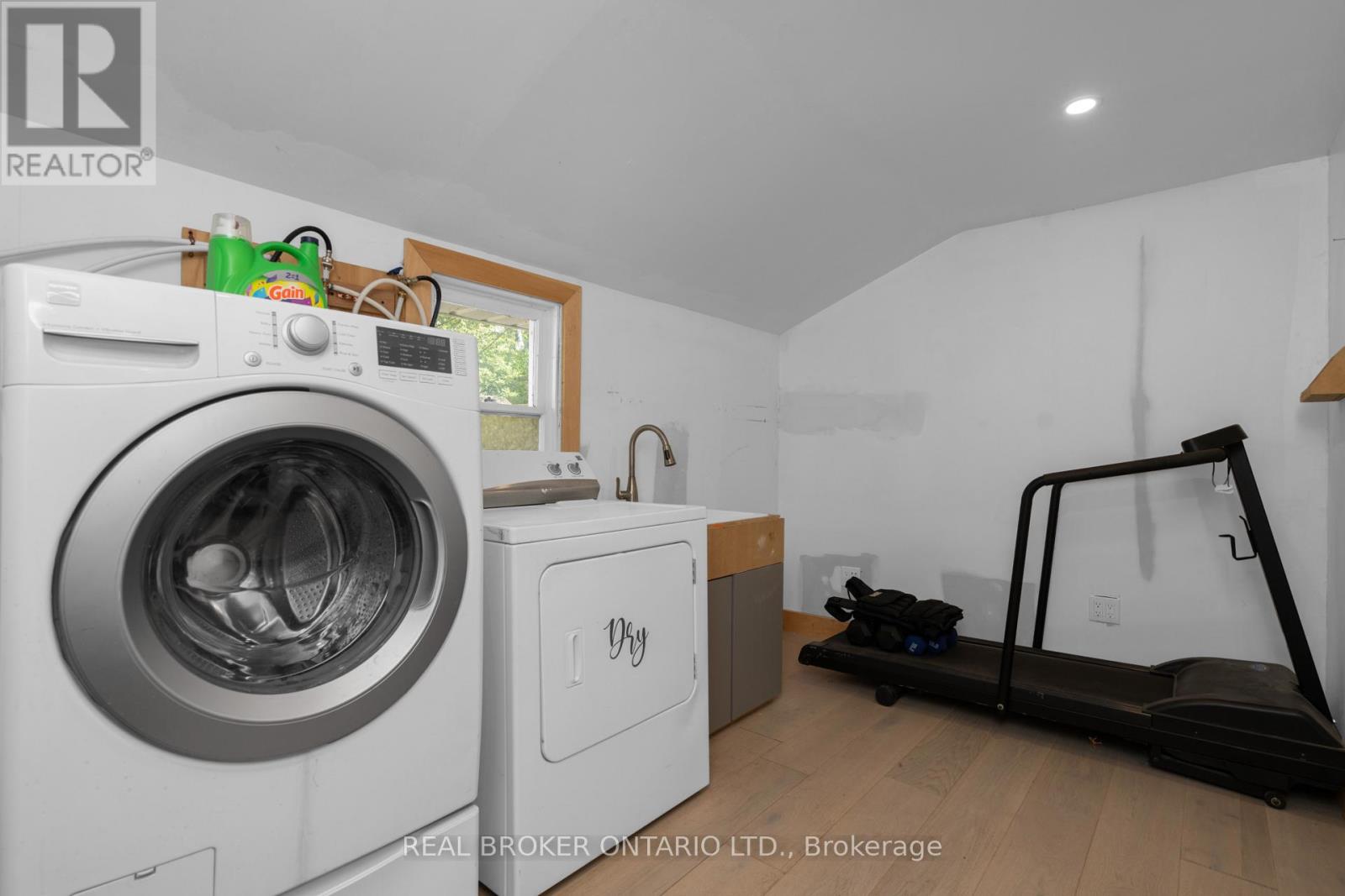 Surrounded by expensive homes this adorable ranch all brick bungalow (not garage) was renovated 2021and has a huge usable backyard with tons of trees and privacy! With plenty of parking we start off on theright foot before even stepping inside. Then once inside you will notice all of the flat ceilings and pot lightsRoomsPhotos(2021) as well as vinyl flooring and trim replaced (2021). The adorable ship lapped fireplace also hashandy storage on both sides and light beams in the massive window. Open to the dining room and kitchenthe flow works well and there is even a barn door to main floor laundry which also has access to the insidesingle car garage (which has pot lights). Onto the kitchen (refaced 2021) you will see sleek granitecounters with undermounted sink, pot filler, gas stove and backsplash. Down the hall three spaciousbedrooms all with the updated flooring and trim as well as one with a closet organizer and pot lights. Thereis also a deep linen closet and 4-piece updated bathroom. The welcoming back yard has massive deck(2023), storage shed (2022) and firepit area with string lights and built in swing. There are two cherrytrees and raspberry bushes as well. The breaker panel was also updated 2021. Right on school bus routemakes it easy for the kiddos, 8 minutes to Alliston, and 9 minutes to Base Borden (id:4555)