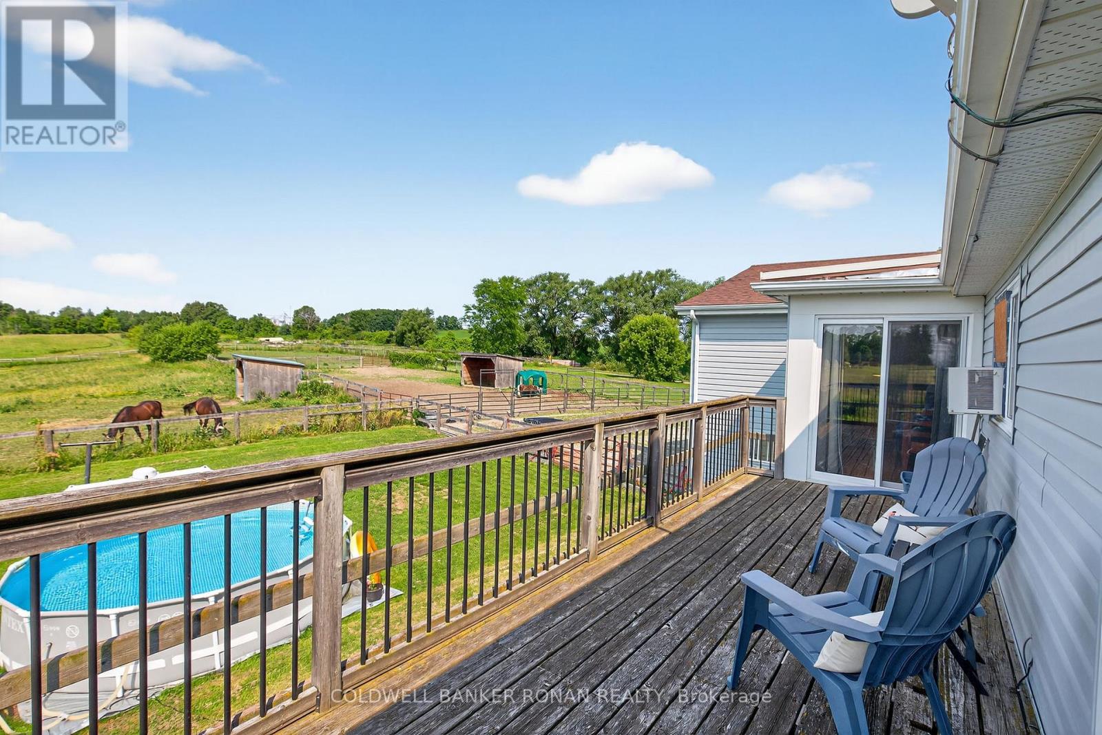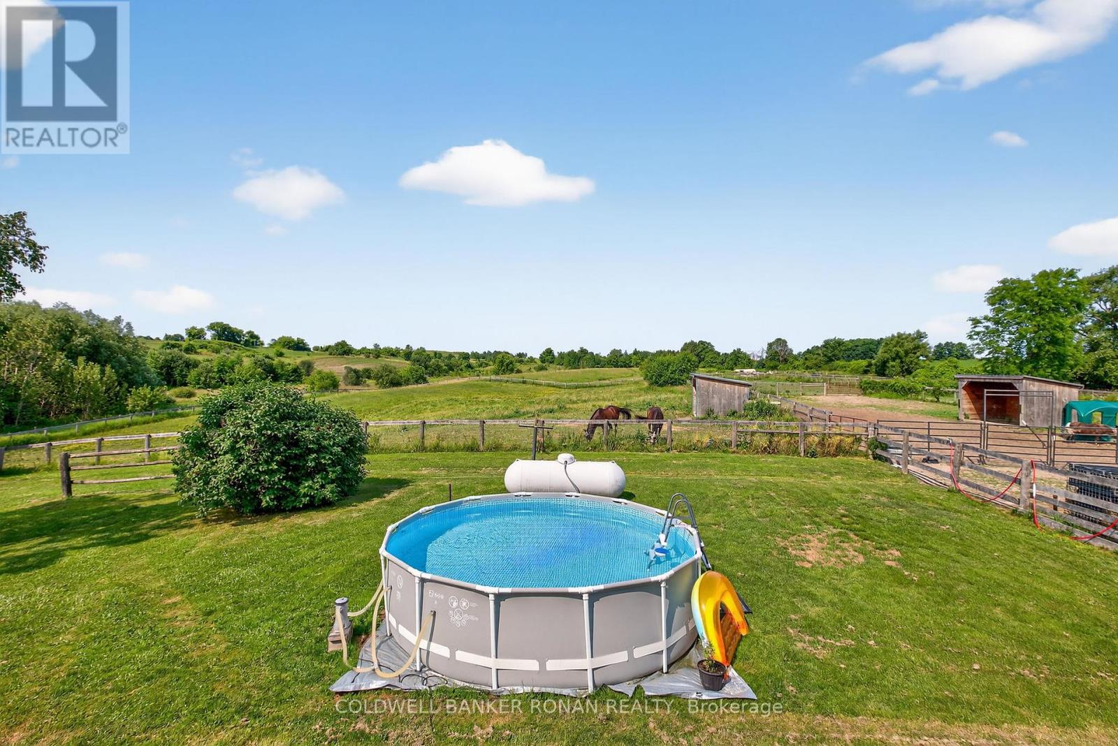 This beautifully updated equestrian hobby farm blends privacy, space and country charm just 7 mins from Alliston. Set on almost 20 scenic acres w/ 4 fenced paddocks, groomed trails, and a 64x180 outdoor riding ring, its a dream property for horse lovers and outdoor enthusiasts alike. The 5-stall barn plus tack room has been completely redone on the interior, including premium System Fencing stalls & custom insulated Dutch doors. Lovingly maintained and upgraded, this unique barn also has an untapped 30x50 1,500 sqft hayloft or left to your imagination, the perfect studio or recreation room the opportunity here is endless. The 4bed, 2bath home offers character and function, starting w/ a large foyer and laundry/utility room w/ access to the barn. The main floor includes a nanny suite or office with 3pc bath and bar area. The country kitchen takes advantage of the most magical outdoor views, while the cathedral ceilings offer brilliant natural light & character. Cozy up to your wood burning fireplace, step outside onto the patio to take in the rolling views of your countryside or curl up on the covered front porch with your morning coffee, set back off the quiet paved road. Upstairs, the spacious primary suite features a walkout to a private deck, plus a loft-style living room with second walkout. Outdoors, enjoy apple trees, forested acreage & additional acreage perfect for roaming, entertaining, or for your very own hay fields. Other additions & features to this property includes a Mennonite-built shed for tools or equipment, regraded driveway, detached 2car garage, two movable Mennonite-built horse shelters & is hydro run behind the barn, ideal for future expansion. So many thoughtful updates throughout reflect the care & vision behind this unique property. Just 15 mins from Palgrave, 50 mins to Pearson & steps from Sheldon Creek Dairy this is rural living w/o compromise. Live, ride & grow in an unmatched setting this is the lifestyle you've been waiting for. (id:4555)
