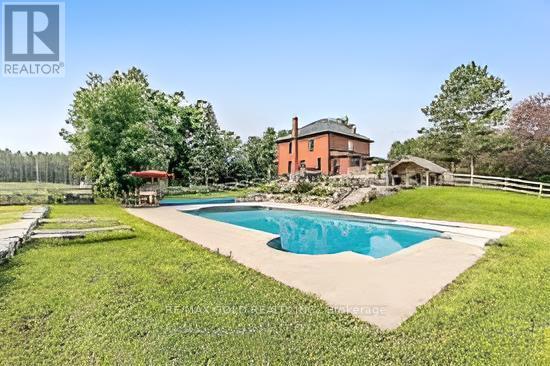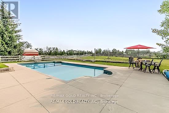 Experience the pinnacle of rural luxury on this breathtaking 91-acre corner property bordering Caledon, where a fully renovated century home perfectly blends historic charm with modern sophistication. This sprawling country estate features a private pool and spa area with a dedicated BBQ building overlooking rolling paddocks, all while offering rare, breathtaking South-East views of the Toronto skyline. The land is a dream for equestrian enthusiasts and agricultural investors alike, boasting a 50x140ft indoor arena, a 150x140ft outdoor sand ring, 12 paddocks, and over 12 stalls, alongside the serene beauty of the Humber River winding through the acreage. Beyond the residential luxury, the property is a prime candidate for a high-traffic business location, featuring extensive Highway 9 frontage, a separate bunkie, and a 50x40ft heated and insulated building currently serving as a successful country artisan store. Whether you are looking for a peaceful retreat, a world-class equestrian facility, or a strategic entrepreneurial venture, this rare offering provides a versatile and stunning canvas to bring your grandest vision to life. (id:4555)