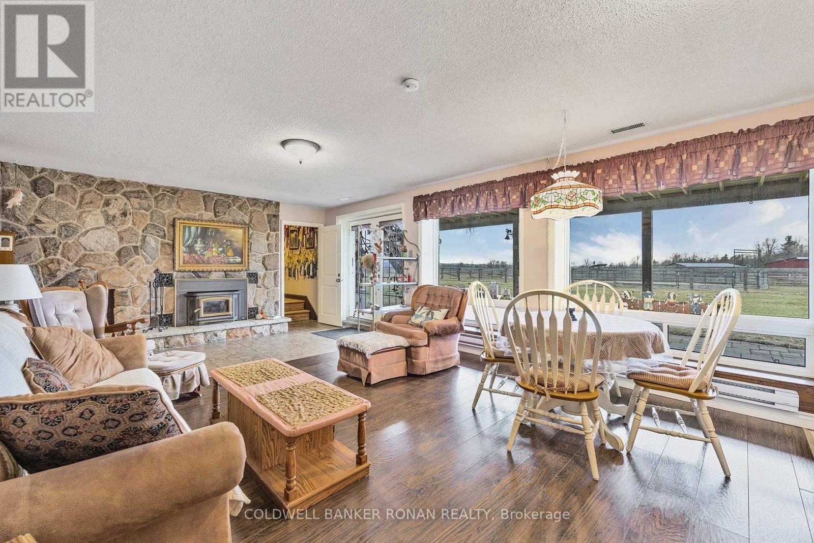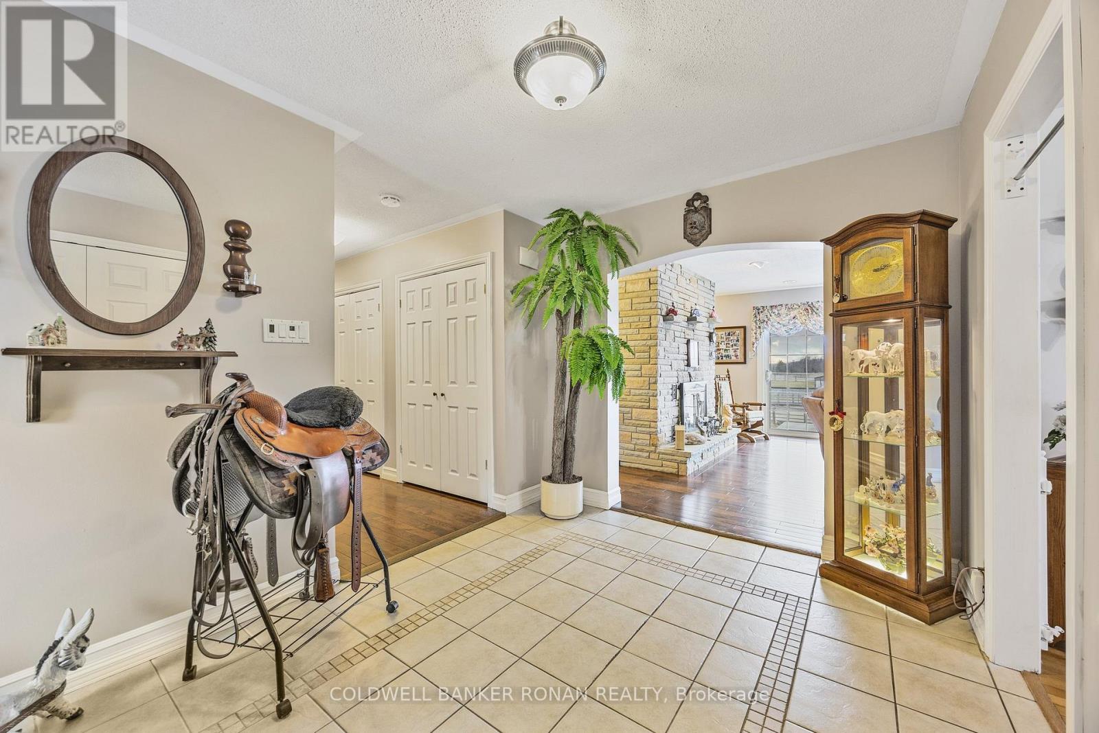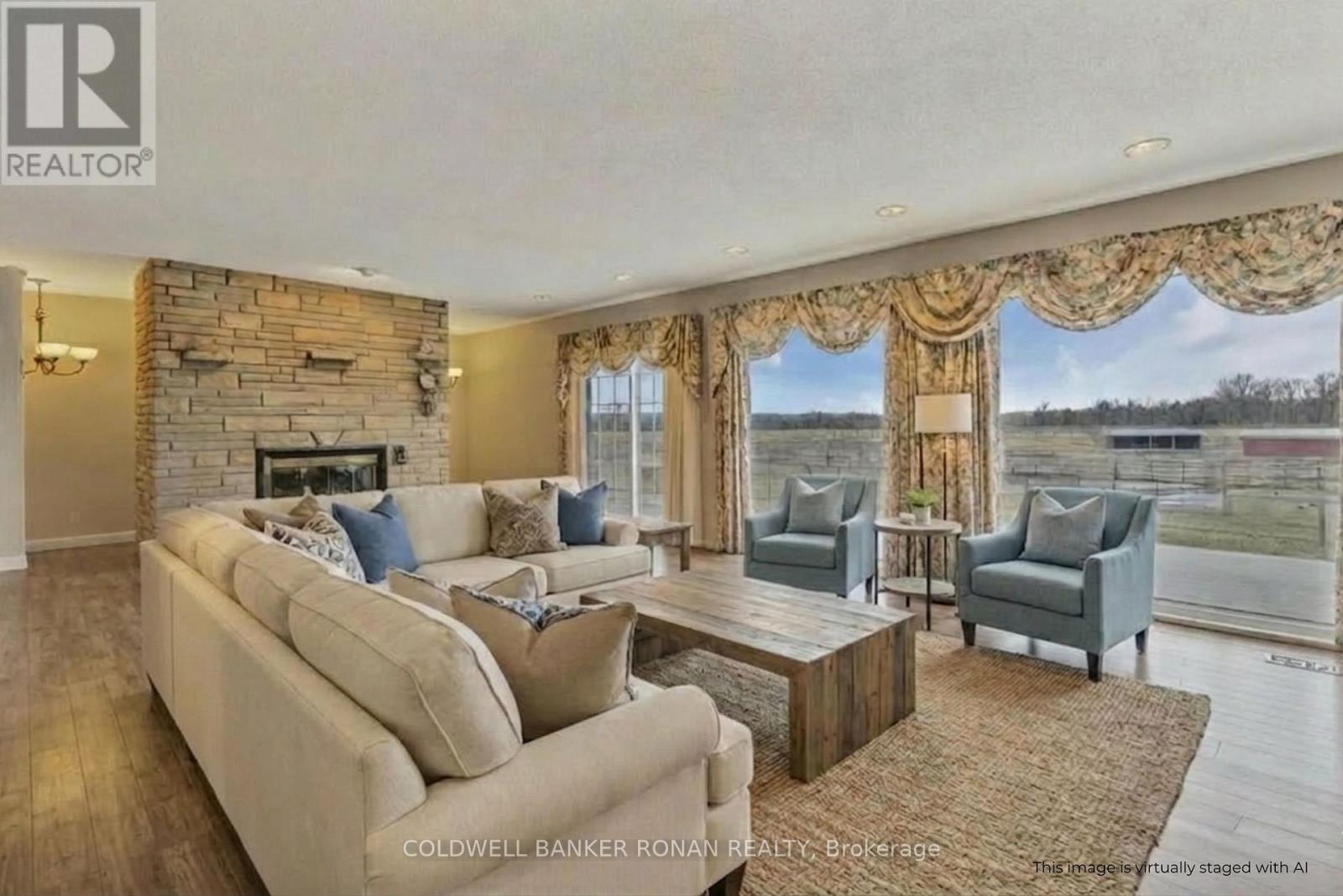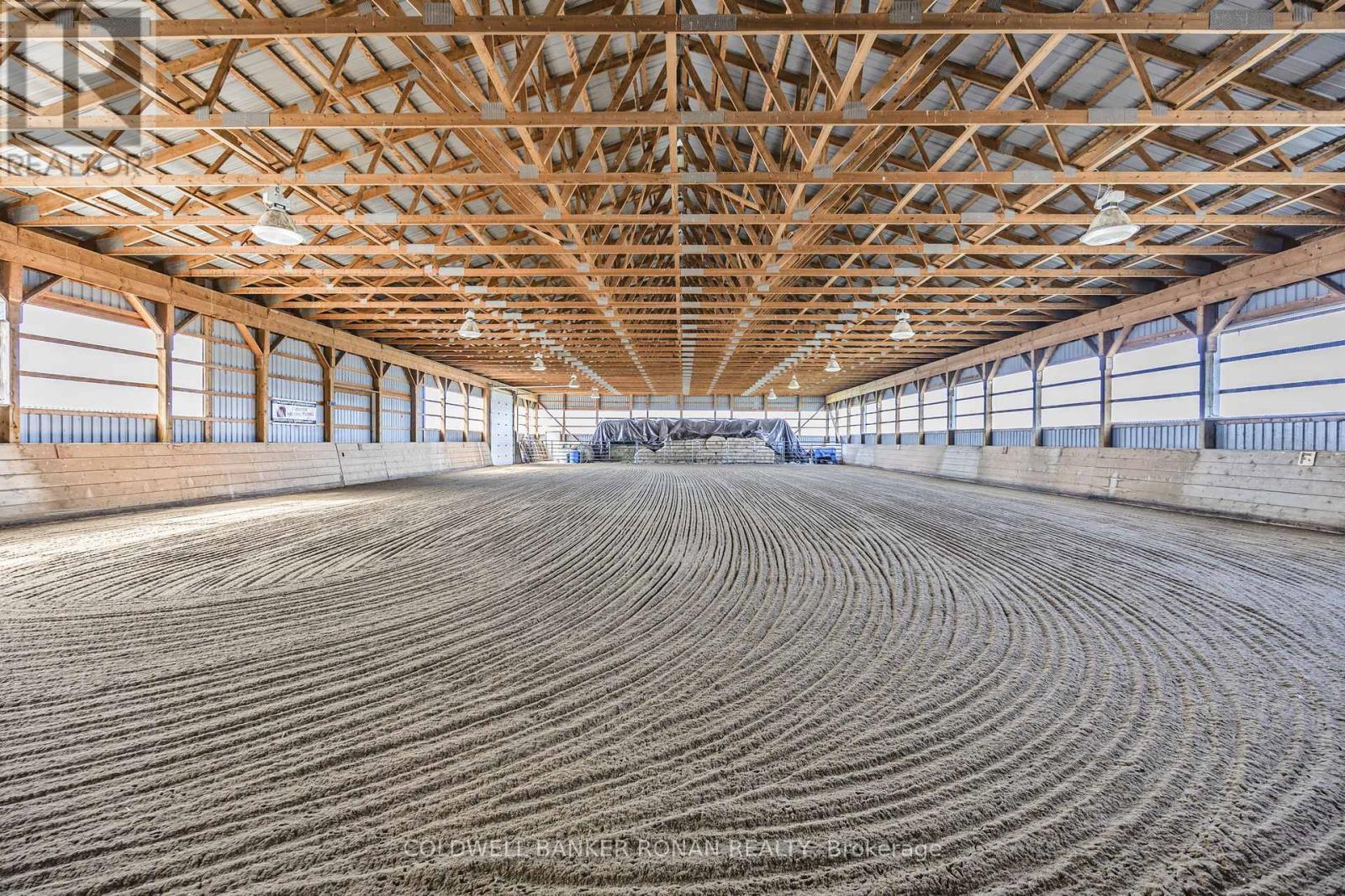 Set behind gates on 21.62 pristine acres, this private country estate offers the rare combination of usable land, impressive outbuildings, and a beautifully maintained walk-out bungalow. A property where space, privacy, and lifestyle come together in one remarkable setting. At its heart sits a spacious walk-out bungalow, designed for comfortable living while capturing sweeping views across open fields and surrounding countryside. Thoughtfully positioned within the landscape, the home offers a sense of calm and seclusion-an ideal retreat from the pace of city life while remaining within reach of the Greater Toronto Area. The home is designed with flexibility in mind, featuring a fully finished walk-out lower level with a private suite-style living space, ideal for extended family, guests, or multi-generational living while maintaining privacy and independence. Beyond the residence, the property unfolds into beautifully organized grounds offering exceptional flexibility for recreation, hobbies, and entertaining. A remarkable 120' x 70' indoor arena building with adjoining barn space provides exceptional scale and versatility, ideal for equestrian pursuits, private training, indoor recreation, or a wide range of lifestyle uses rarely found on residential properties. The surrounding acreage includes expansive paddocks, open fields, and approximately 4 acres of mature forest with private trails, perfect for enjoying nature year-round. A substantial 30' x 60' heated workshop further enhances the estate, complete with a kitchen, lounge, and bathroom-ideal for guests, creative studio space, or a variety of personal or professional uses. Additional fenced areas for small animals add to the property's authentic country charm. A property that offers the freedom to create the lifestyle you've been dreaming about. Properties offering this level of usable acreage, and exceptional privacy rarely come to market in such a beautifully maintained setting. (id:4555)