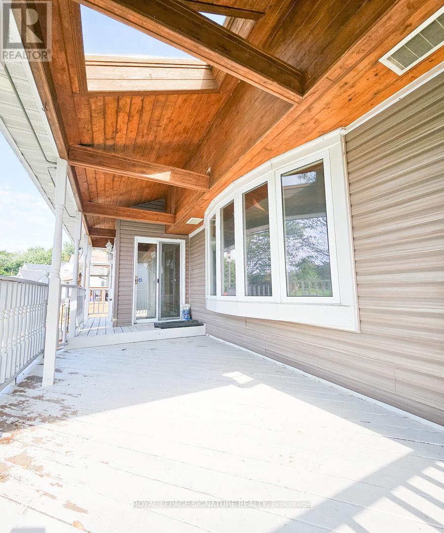 The perfect place for a young couple or small family to call home. Recently renovated with comfort and style in mind, this spacious unit offers a warm and welcoming atmosphere with all the modern upgrades you've been looking for. Step inside to discover sleek porcelain tile flooring, a sun-filled bow window, and an open, light-filled layout that makes everyday living feel easy and enjoyable. The kitchen is a standout feature, boasting elegant stone countertops and stainless steel appliances ideal for everything from casual breakfasts to family dinners. Whether you're entertaining guests or enjoying quiet nights in, this space is designed to suit your lifestyle. Outside, a charming wood front porch offers the perfect spot for your morning coffee or watching the kids play, with a peaceful park view right across the street. Set in a friendly, family-oriented neighbourhood close to schools, shops, public transit, Highway 401, Ajax Waterfront Park, this home offers the perfect balance of comfort, convenience, and community. Don't miss this rare opportunity to settle into a beautiful home thats ready for you to move in and make your own. (id:4555)