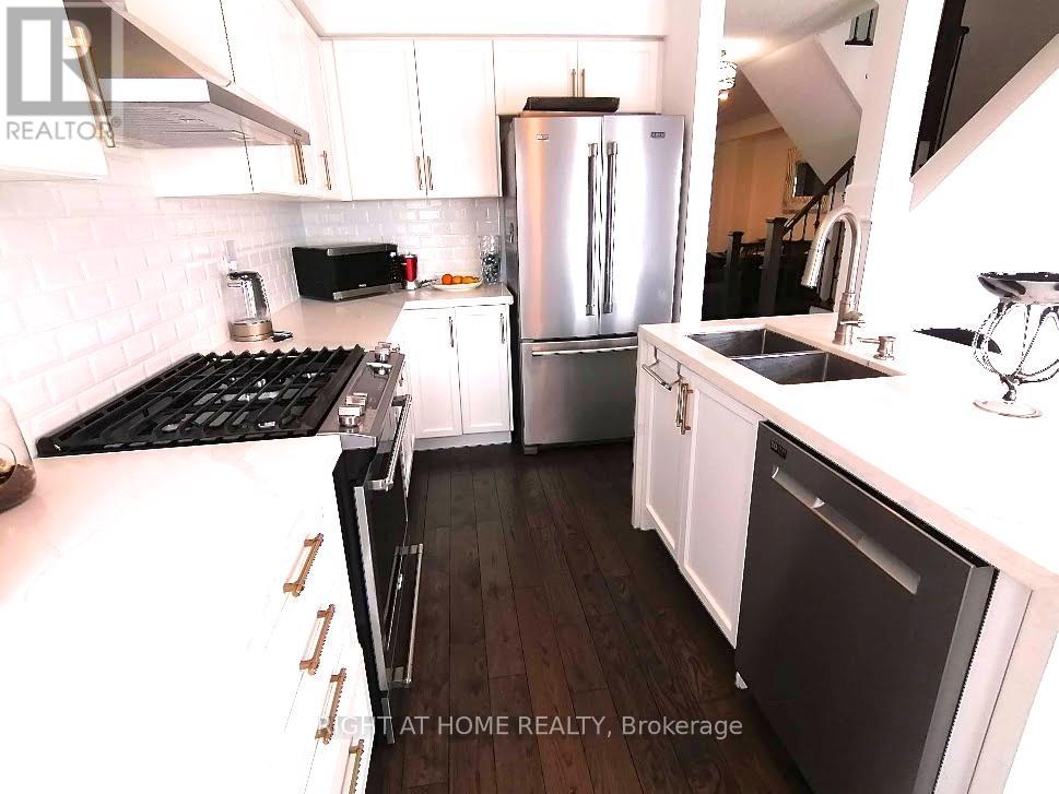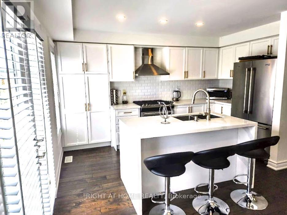 Stunning 4-Bedroom Semi-Detached Home in the Heart of Central East Ajax. Welcome to this beautifully maintained 2,191 sq. ft. semi-detached home located in the desirable Central East Ajax community. Featuring four spacious bedrooms and four modern bathrooms, this home offers exceptional living space for families of all sizes.The exterior boasts an elegant interlock walkway and a rare three-car parking capacity. Inside, youll find hardwood flooring throughout, stylish pot lights, and a bright, open-concept layout. The gourmet kitchen is a chefs dream, equipped with quartz countertops, a decorative backsplash, stainless steel appliances, a center island, premium cabinetry, and a walk-out to a large covered balcony plus an additional balcony for added outdoor enjoyment.The primary suite includes a four-piece ensuite and a walk-in closet, providing a private retreat. Elegant oak stairs with wrought iron railings add a touch of sophistication, while the upper-level laundry room offers added convenience.Natural light floods the family room through large windows, creating a warm and inviting atmosphere. The unfinished basement includes rough-ins for plumbing and electrical, offering great potential for customization.Located in one of Ajax's most sought-after neighborhoods, this home is a perfect blend of style, comfort, and future possibilities. (id:4555)