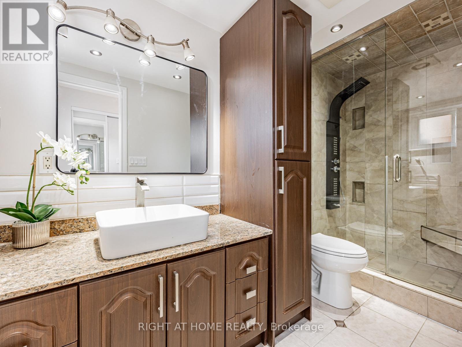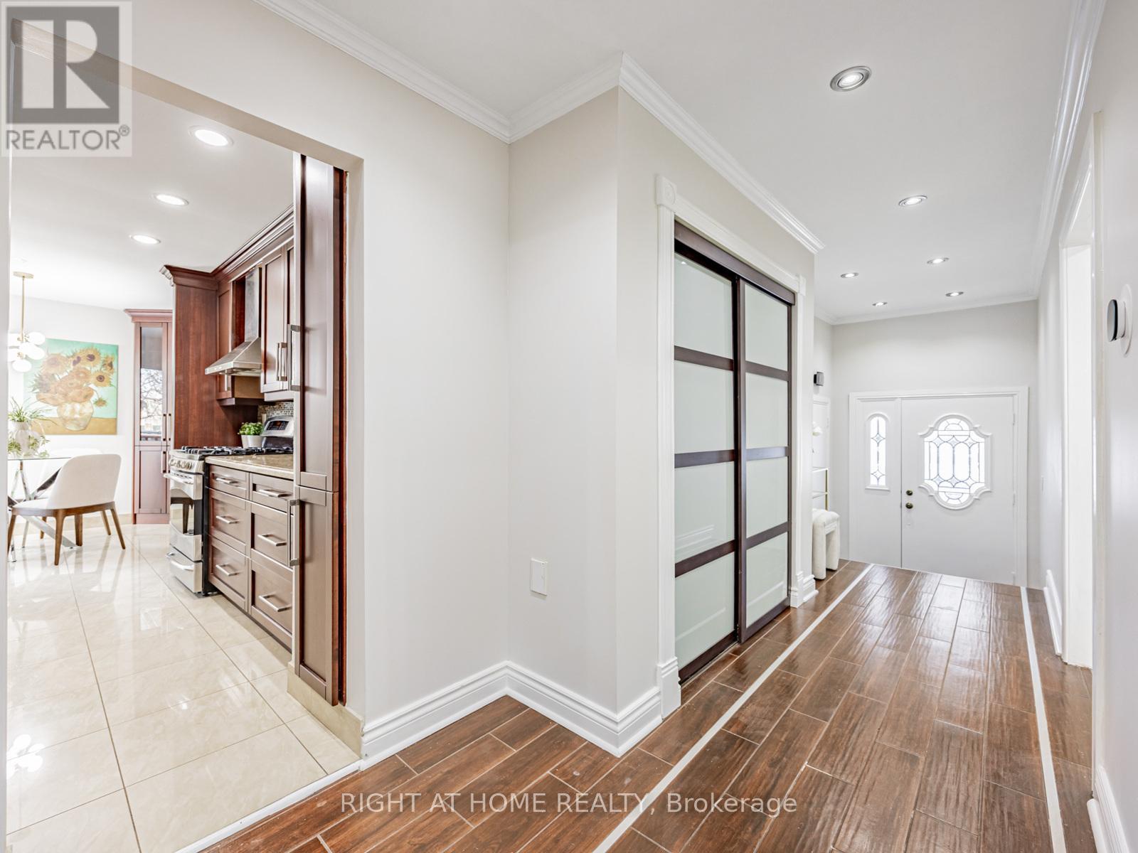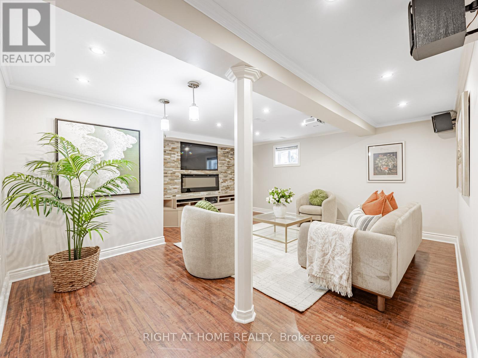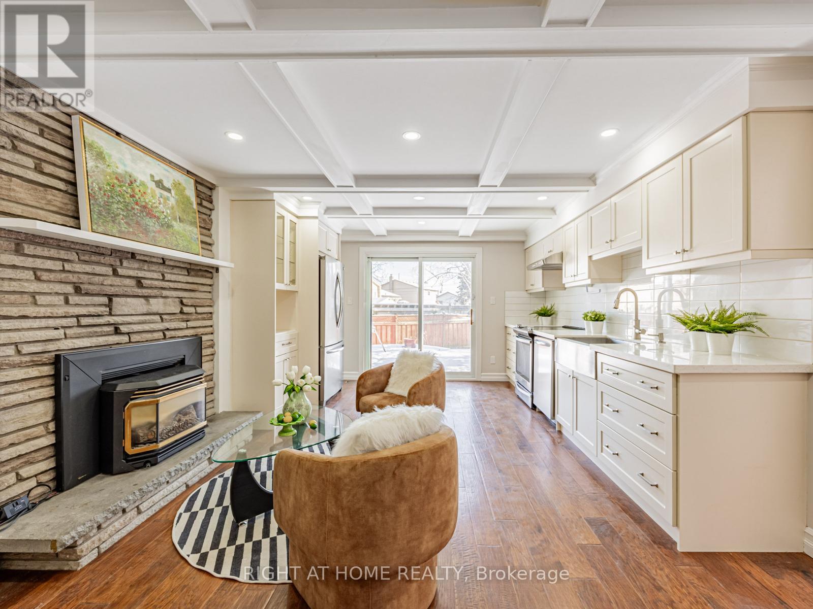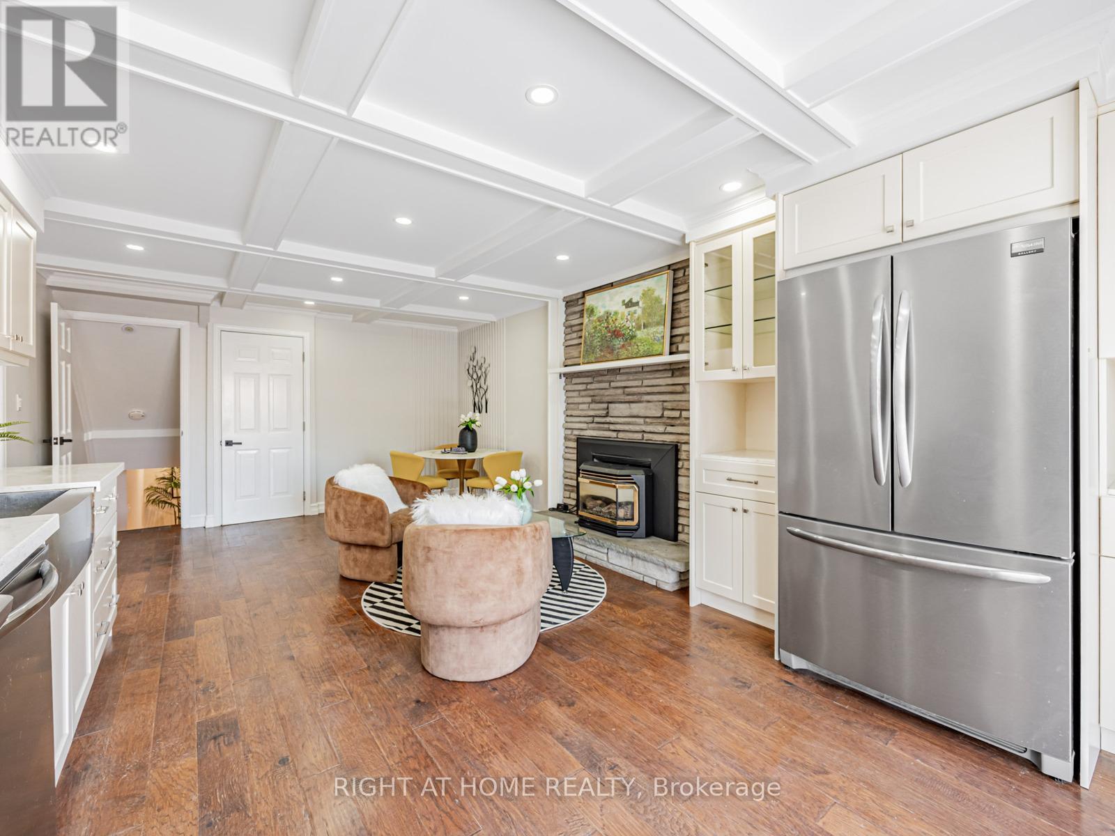 Walk to the lakeshore and the fantastic Waterfront Trail from this sought-after South Ajax location. This newly renovated backsplit 4 detached home, with 2 self-contained living quarters/double garage/long driveway, is perfect for a large family or potential rental income. Freshly painted walls/hardwood floor/smooth ceiling/pot lights throughout. Two large eat-in full kitchens with stone countertop/backsplash/SS appliances. Upgraded bathrooms with glass showers and corner jacuzzi upstairs & bidet in 2nd bath. Open concept cozy family room with fireplace and moulded ceiling, combined with dining area and 2nd kitchen, walks out to large fenced private backyard. Professional finished basement complete with home theatre with built-in TV/theatre screen/projector/speakers/fireplace. Direct access from garage to large front foyer. Minutes drive to HWY 401/Go Station/Costco/schools/community centre/hospital. (id:4555)