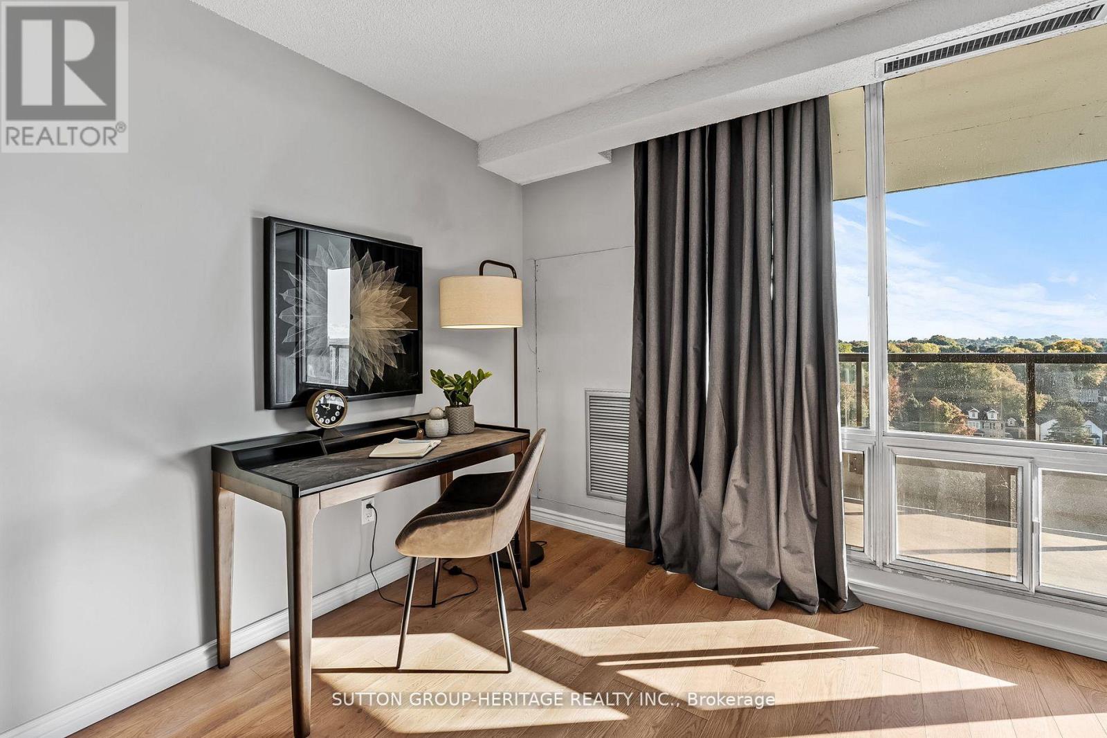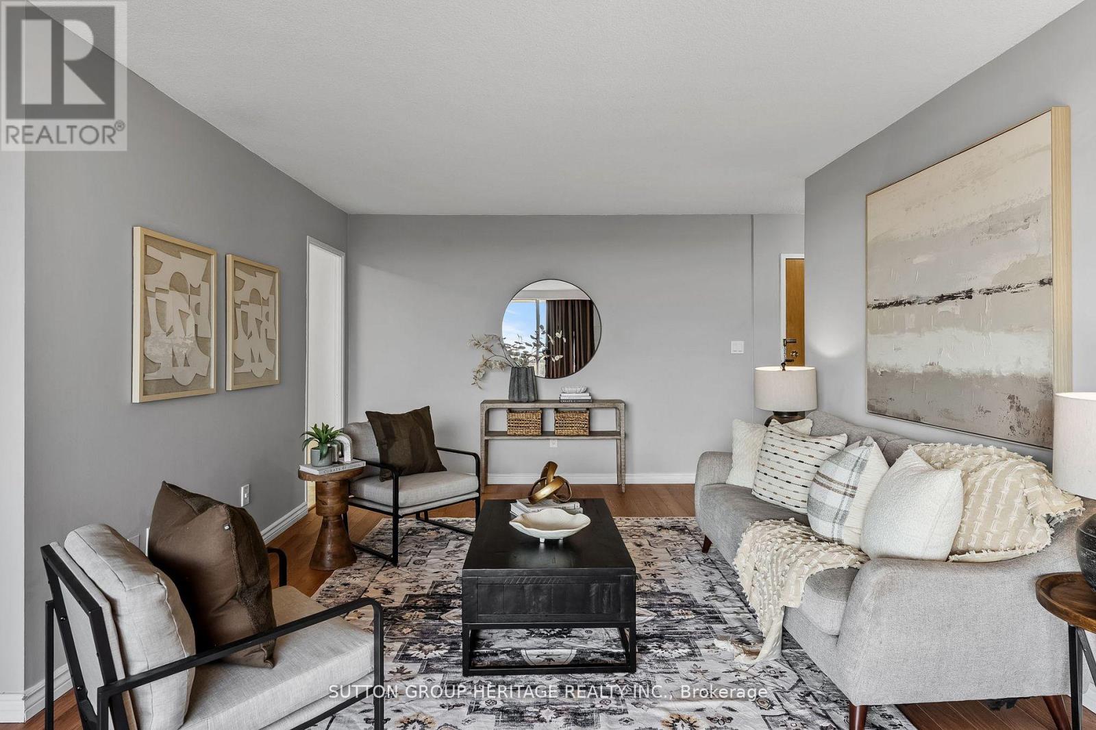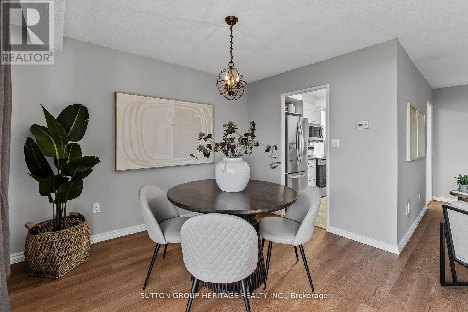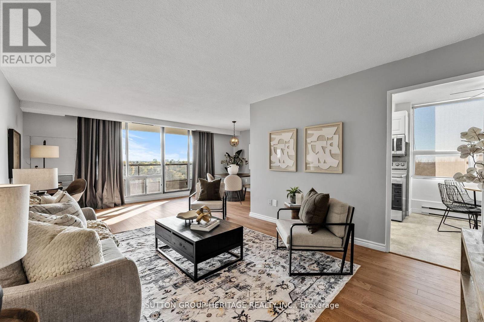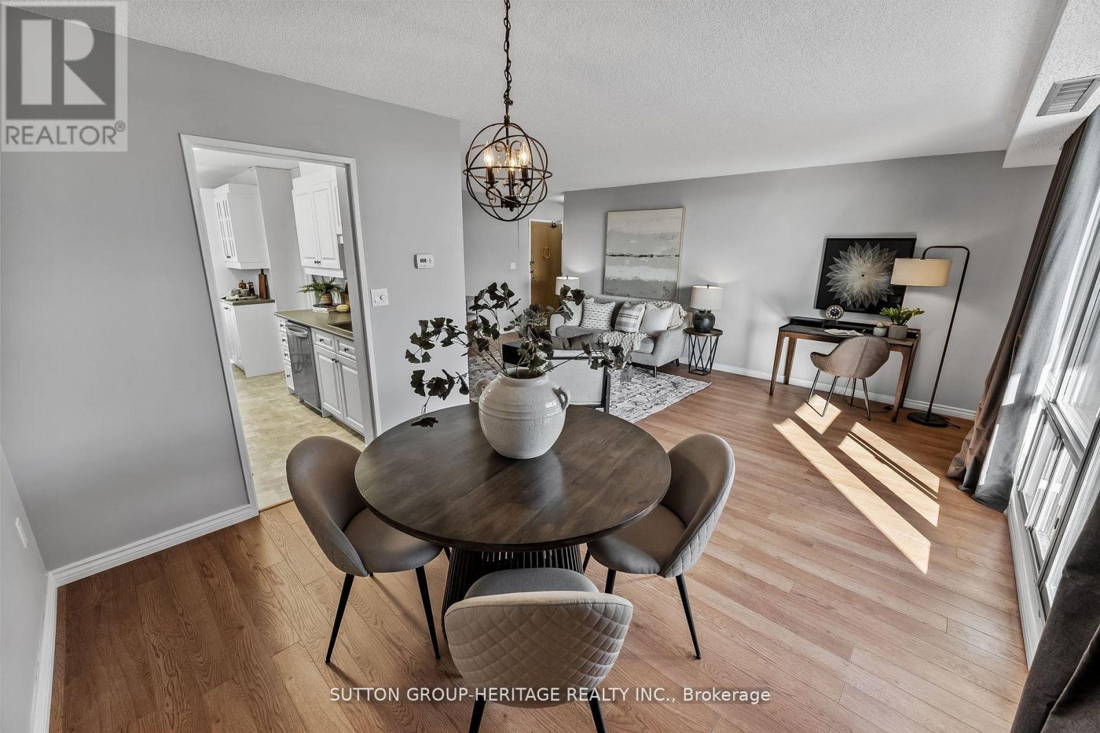 Welcome Home! Spacious 2-Bedroom, 2-Bath Condo With Stunning Views Ajax/Pickering Border. Discover This Beautifully Updated And Expansive 2-Bedroom, 2-Bathroom Condo, Offering A Peaceful Retreat With A Breathtaking Panoramic View Of The Southwest Skyline. Enjoy The Tranquil Setting Overlooking A Serene Forest With A Walking Trail Right At Your Doorstep. The Open-Concept L-Shaped Living And Dining Area Flows Seamlessly Onto A Large Balcony That Stretches The Full Length Of The Unit, Perfect For Relaxing Or Entertaining. The Eat-In Kitchen Features Newer Stainless Steel Appliances And A Bright South-Facing Window. The Primary Bedroom Offers A Walk-Through Closet, A Private 2-Piece Ensuite, And Its Own Walkout To The Balcony. The Second Bedroom Is Spacious, With A Double Closet And Large Window, Ideal For Guests Or A Home Office. Hardwood Floors Throughout And Elegance. Conveniently Located With Easy Access To Ajax GO And Hwy 401, This Condo Is Perfect For Commuters. (id:4555)