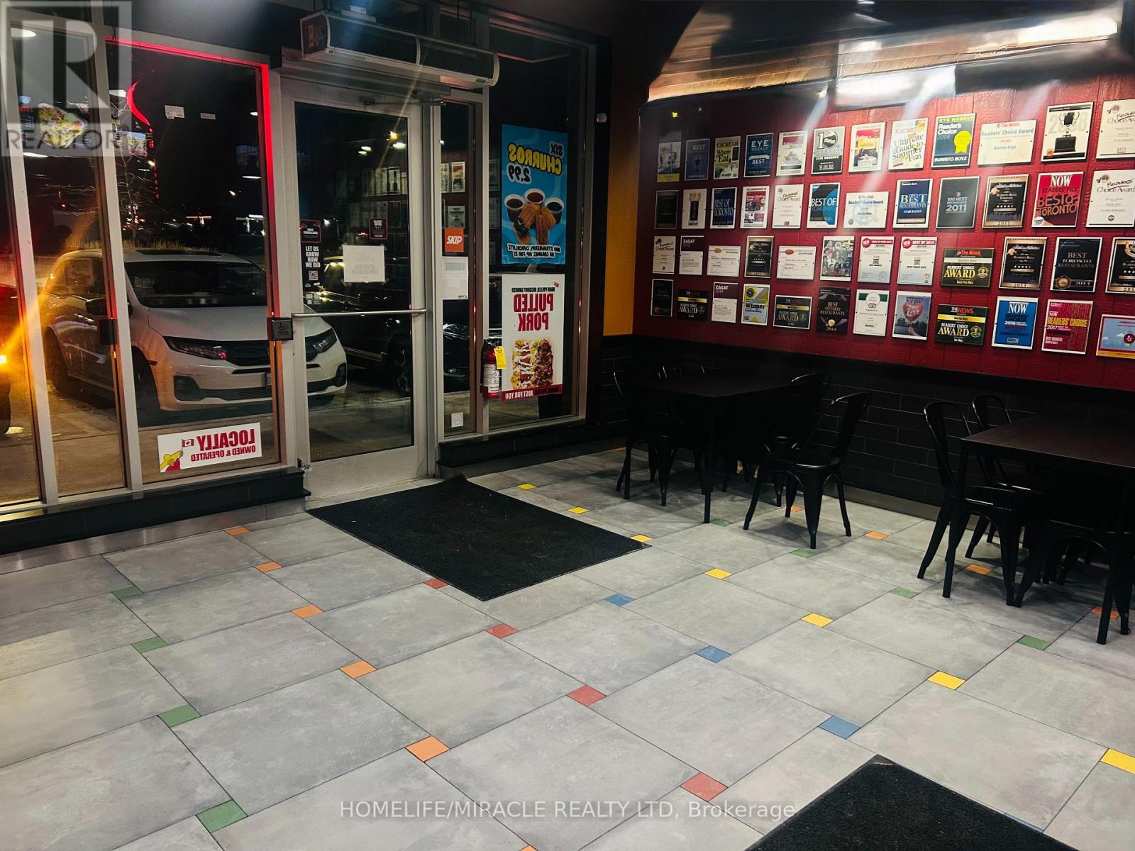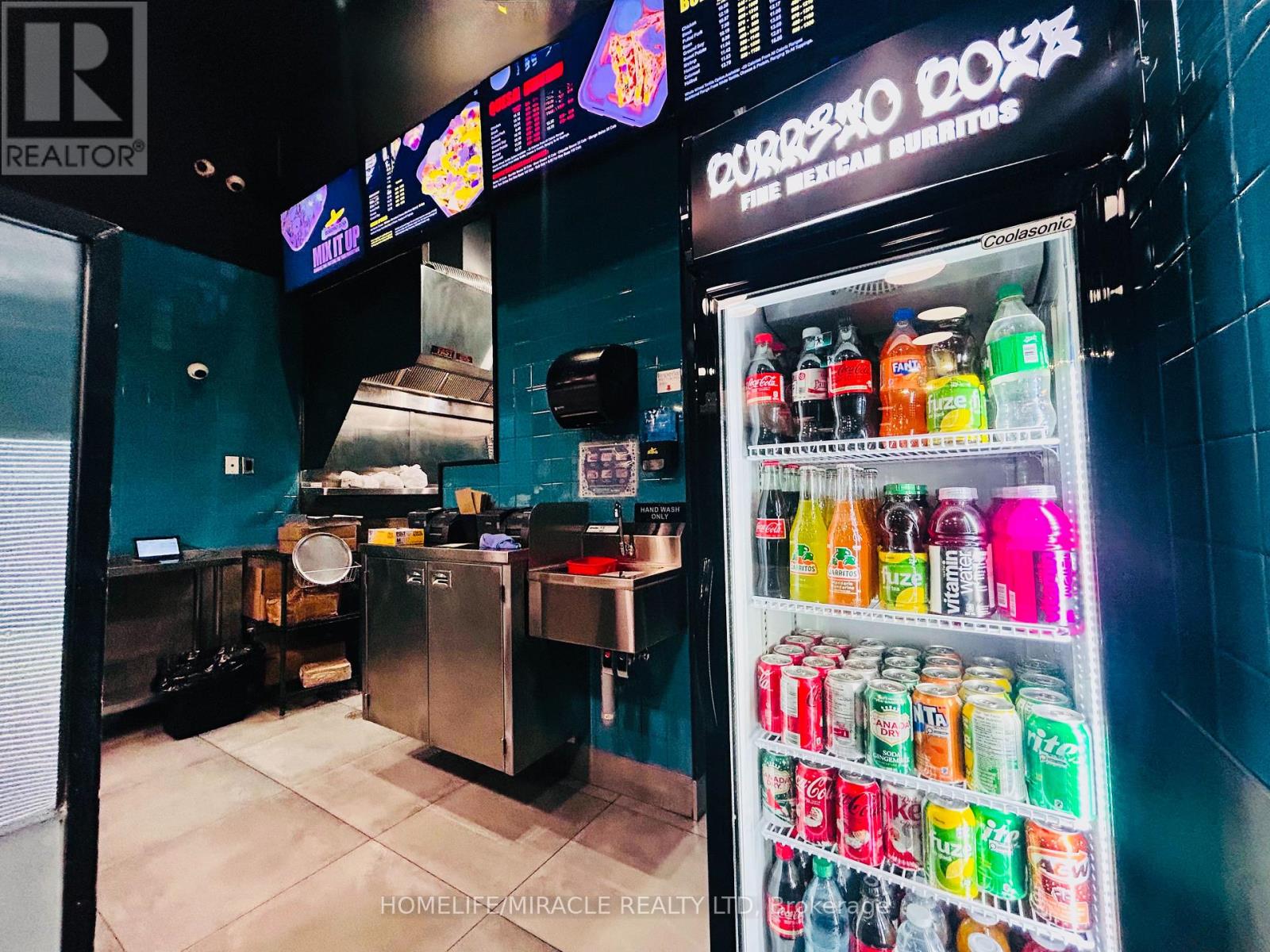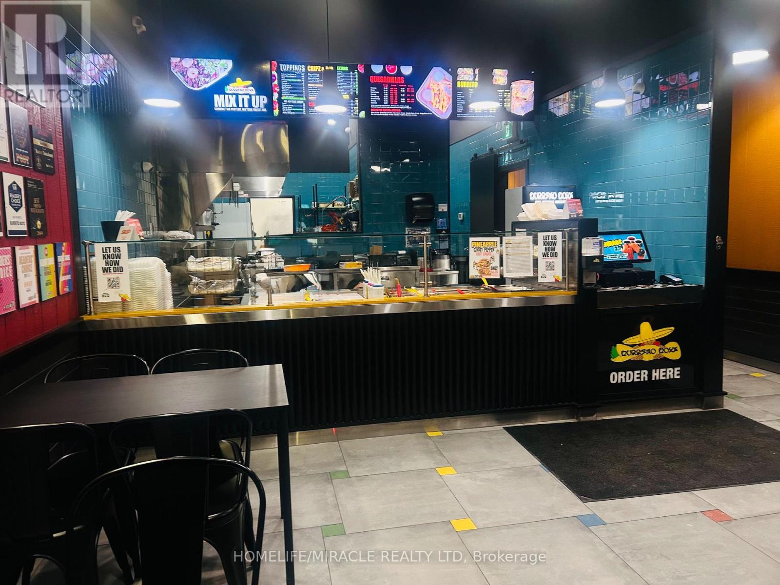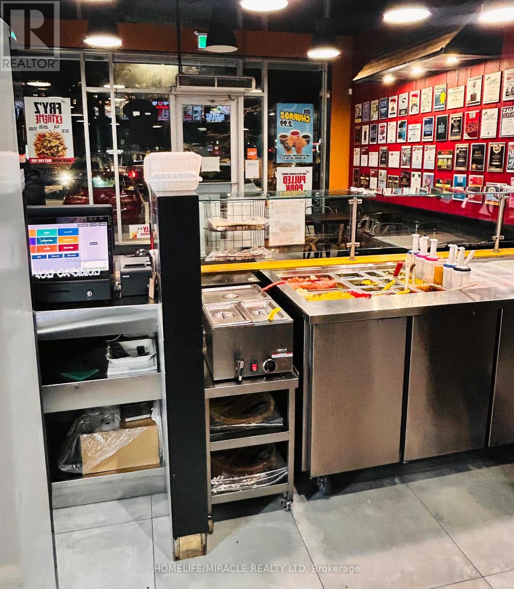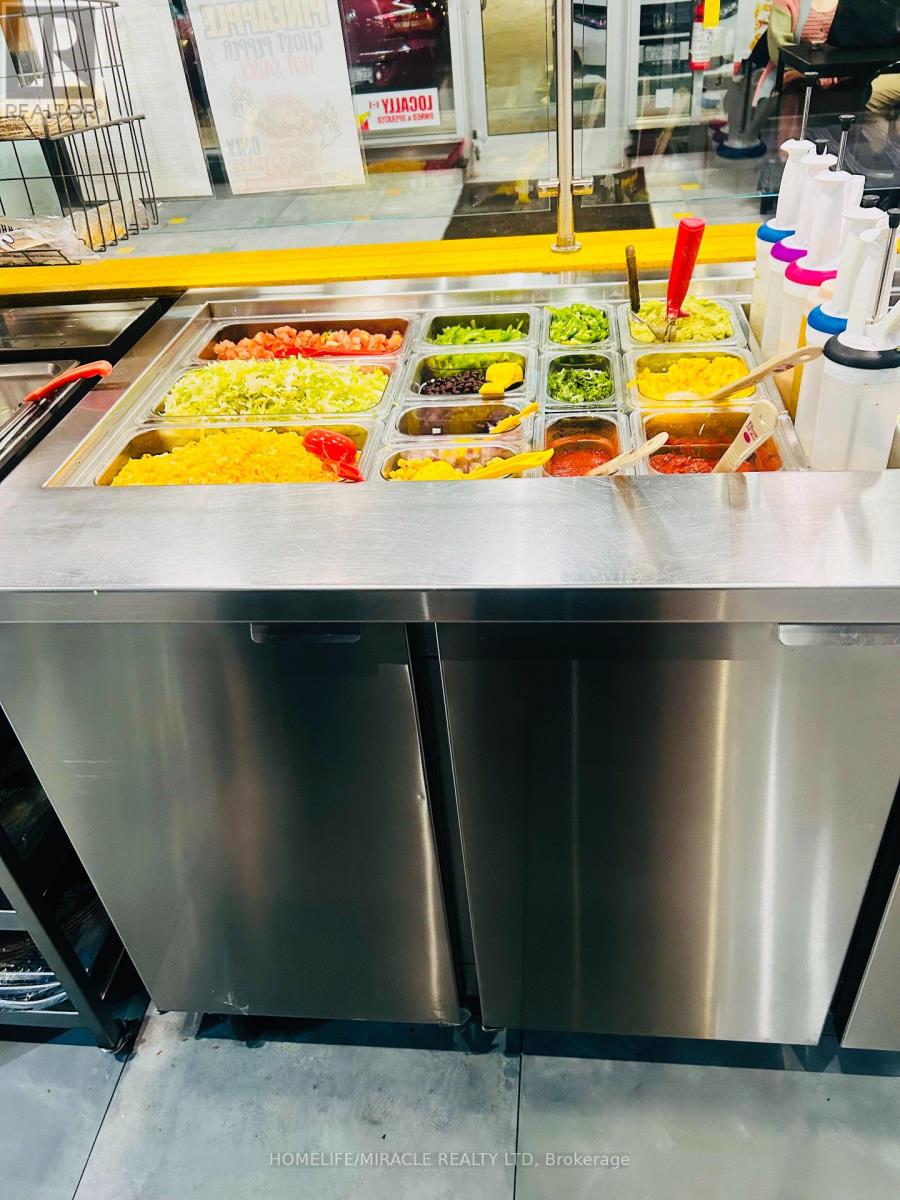 Discover an exceptional opportunity to own a high-traffic Burrito Boyz franchise in one of Ajax's most active commercial pockets. Perfectly placed at Rossland Rd E & Salem Rd N, this location is surrounded by nonstop activity from nearby childcare centres, corporate offices, Amazon Fulfillment Centre staff, the Ajax Fire Department, schools, and dense residential communities. The beautifully updated 1,279 sq. ft. unit offers strong curb appeal, excellent visibility, and consistent daily foot traffic-ideal for a thriving quick-service restaurant. With affordable rent ($3,943.58 + $2,250.48 TMI, including pylon signage and water), this setup delivers strong value in a premium corridor. A steady flow of loyal customers, strong online presence, and established delivery partnerships make operations smooth and profitable from day one. Surrounded by major brands and a growing population, this location is perfectly positioned for continued growth-plus additional upside from catering, local marketing, and community outreach. A modern, well-run franchise in a booming area... buyers looking for a ready-to-operate, income-producing business will love this one. (id:4555)