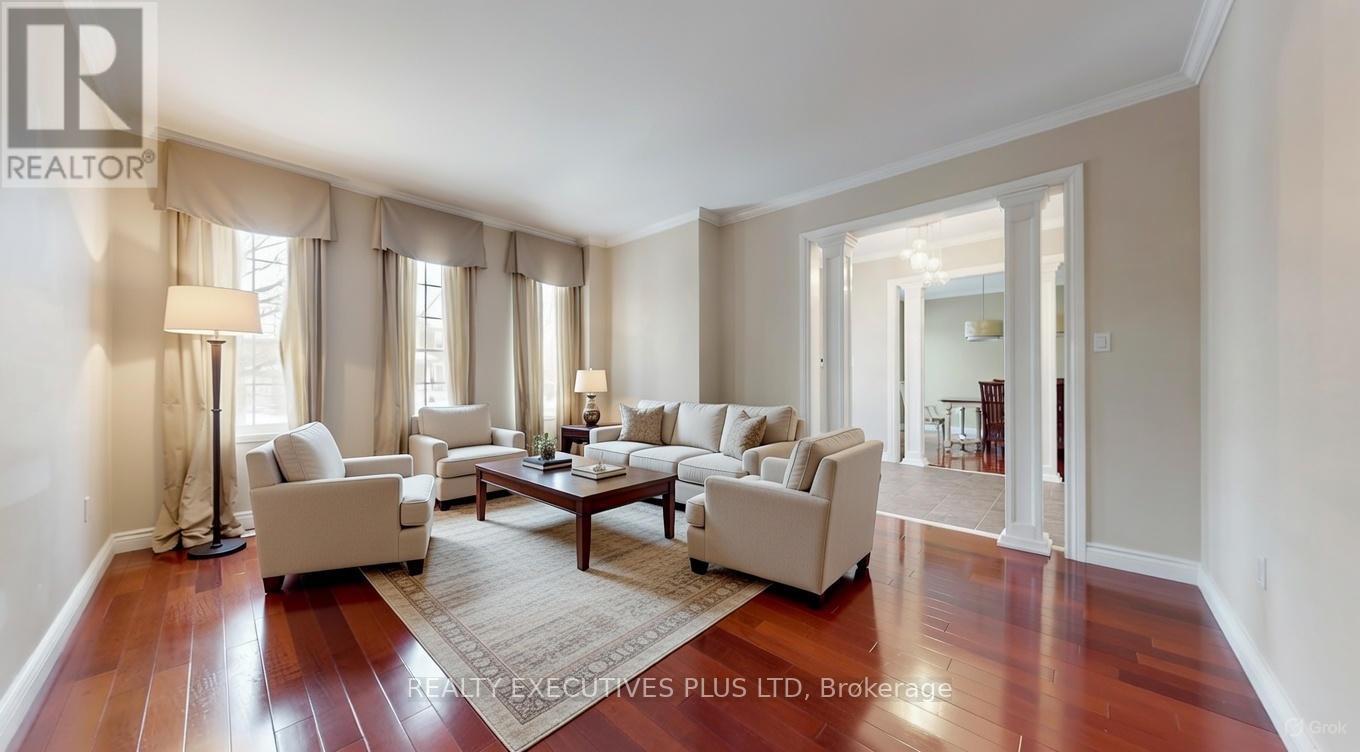 Offering Over 5,300 Sq Ft Of Finished Living Space, This Exceptional Detached Home is the Largest Model by Tribute Homes!! Located in Sought-After Northwest Ajax with the Convenience of Walking Distance to Groceries, Restaurants, and Local Mosque! Filled with Natural Light from Large Windows, the Home Features 9 Ft Ceilings on the Main Floor and a Spacious Open-Concept Layout Ideal for Entertaining. The Kitchen Showcases Upgraded Appliances! Quartz Counters! A Tiled Backsplash! And A Large Island With Bar Fridge! Complemented By California Shutters, and Opens to a Grand Family Room with Custom Built-Ins and a Gas Fireplace with a Stunning Two-Storey Soaring Ceiling! Formal Living And Dining Rooms Provide Elegant Hosting Spaces and a Main Floor Office or Den Offers Flexibility as a Main Floor Bedroom with Potential for a 3-Piece Bath! A Functional Mudroom with Laundry Includes Convenient Garage and Backyard Access. Brazilian Hardwood Flooring Accents the Main Level, While the Second Floor Offers Five Large Bedrooms and Three Full Bathrooms with New Upgraded Carpet Throughout! The Finished Basement Features a Large Entertainment Area! Wet Bar With Quartz Counters! a Spacious Exercise Room with Bedroom Potential! an Additional Bedroom! and a 3-Piece Bathroom!! Easily Convertible to an In-Law Suite with Potential for a Separate Entrance. Meticulously Maintained with Multiple Storage Areas, this Home is Completed by a Beautifully Landscaped Yard Featuring a Large Deck, Covered Gazebo, and Low-Maintenance Artificial Turf Grass. (id:4555)
