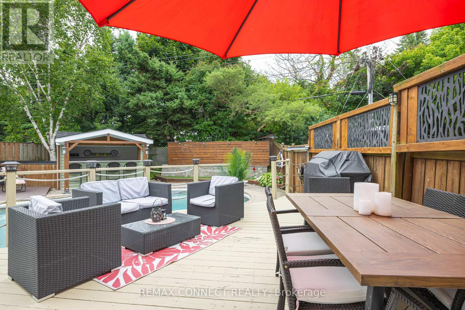 Welcome to a spacious and well-cared-for home, thoughtfully designed for everyday living and located in one of South Ajax's most sought-after neighourhoods. Just minutes from the lake, parks, hospital, schools, transit, and the 401. Everything your family needs is close at hand. Inside, the bright and comfortable living room features hardwood floors and a built-in electric fireplace, creating a space that feels inviting year-round. The updated kitchen blends style and practicality with granite countertops, stainless steel appliances, a breakfast bar, and durable porcelain flooring. The adjoining eating overlooks the backyard, where a sunny deck, inground pool, and putting green offer a great setting for both relaxing and entertaining. Upstairs, the generously sized primary bedroom includes hardwood floors, a cathedral ceiling, three walk-in closets, and a well-appointed 5-piece ensuite. The fifth bedroom works equally well as a home office or hobby space and is already set up with capped gas and plumbing for optional second-floor laundry. The fourth bedroom features standalone custom closets, which may be included subject to negotiation with the Seller. The finished basement provides additional living space with a dry bar, 3-piece washroom, dedicated office area, and a versatile room suited for a gym, studio, or playroom. With comfortable living spaces, practical features, and room to grow, this home offers a welcoming setting to enjoy both everyday moments and special occasions. (id:4555)