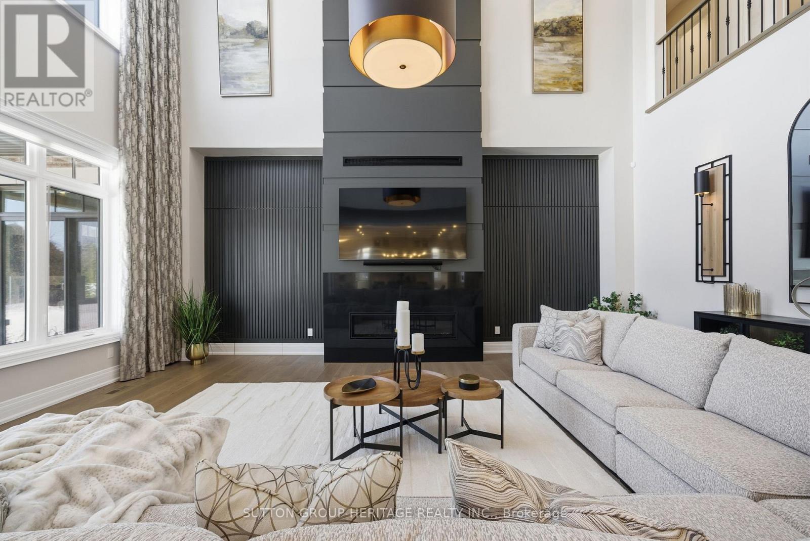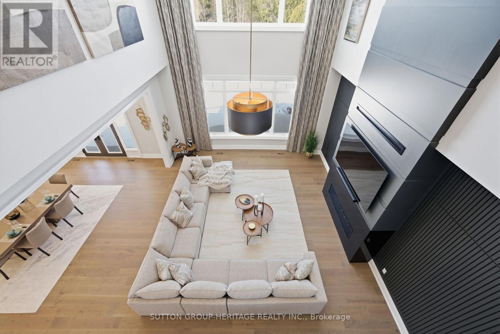 Spectacular Custom Estate With Over 10,000 Sq Ft Of Luxurious Living Space Backing Onto Deer Creek Golf Course. Welcome To This Extraordinary Residence Situated On A Premium 1 Acre Lot, Fully Serviced, Showcasing Exceptional Craftsmanship, Upscale Finishes And Thoughtfully Designed Spaces For Both Family Living And Grand Entertaining. Main Level Features 11 Ft Ceilings, Hardwood Floors, Breathtaking Two-Storey Dining And Great Room Anchored by A Dramatic Upgraded Fireplace And Secret Door Into Private Cabana With Kitchenette, 3 Piece Bath, Laundry And Walkout To Covered Loggia For Outdoor Entertaining. Expansive Principal Rooms Featuring Front Office, Living Room, Elegant Dining Room With Climate Controlled Wine Cellar, Chef Inspired Kitchen Equipped With Premium Appliances Including 6 Burner Gas Stove, Convection Oven And Built-In Coffee Maker, Complemented By A Full Secondary Spice Kitchen With Its Own Appliances And A Convenient Server Door. 4 Spacious Bedrooms Upstairs, All With Hardwood Floors, Walk-In Closets And Ensuite Bath. Master Suite Features Custom Dressing Rooms & Luxurious 5 Piece Ensuite Bath With Heated Floors. Fully Finished Basement Designed For Entertainment And Relaxation. Theatre Room With Wet Bar, Rec Room With Bar, Sink, Wine Fridge And Dishwasher, Games Room And Fully Equipped Gym With 3 Piece Bath, As Well As Two Additional Bedrooms With Semi-Ensuite. Direct Access To Garage From Basement. Additional Upgrades Include 400 Amp Service, 2 Furnaces, Electric Blinds, Elevator Shaft For Future Installation, Mudroom With Garage Access, Upgraded Cabinetry, Baseboards, Pot Lights, Crown Moulding And Spacious 4 Car Garage. This Is A Rate Opportunity To Own One Of The Largest And Most Luxurious Homes In The Area! This One Of A Kind Estate Blends Elegance, Comfort And Modern Convenience In An Unbeatable Setting! A MUST SEE!! (id:4555)