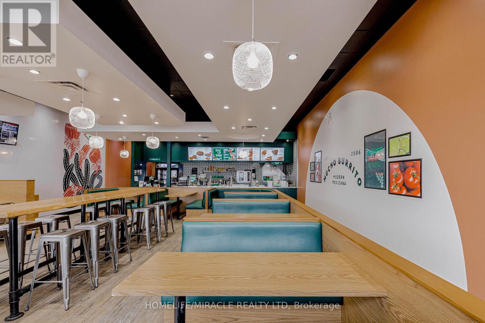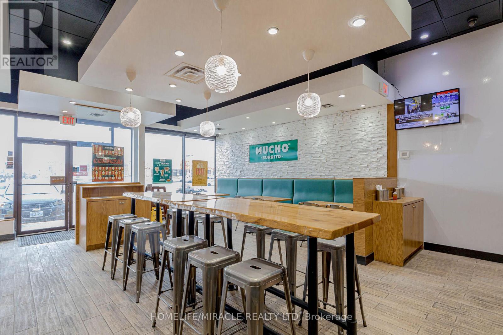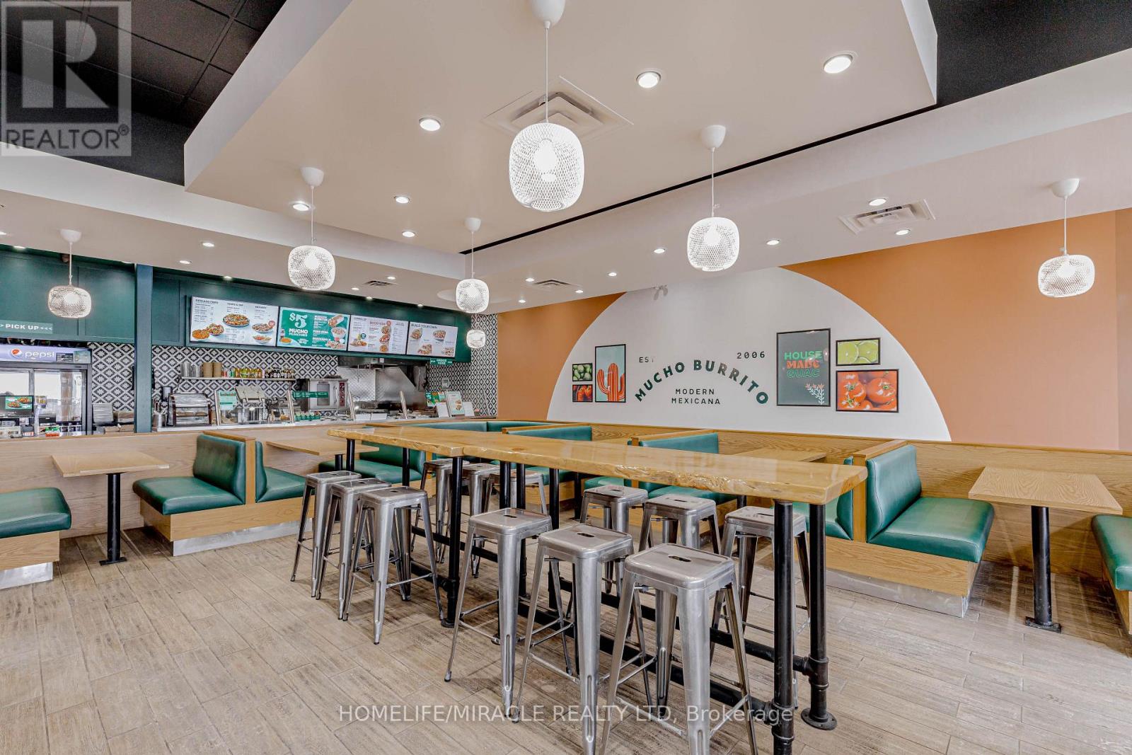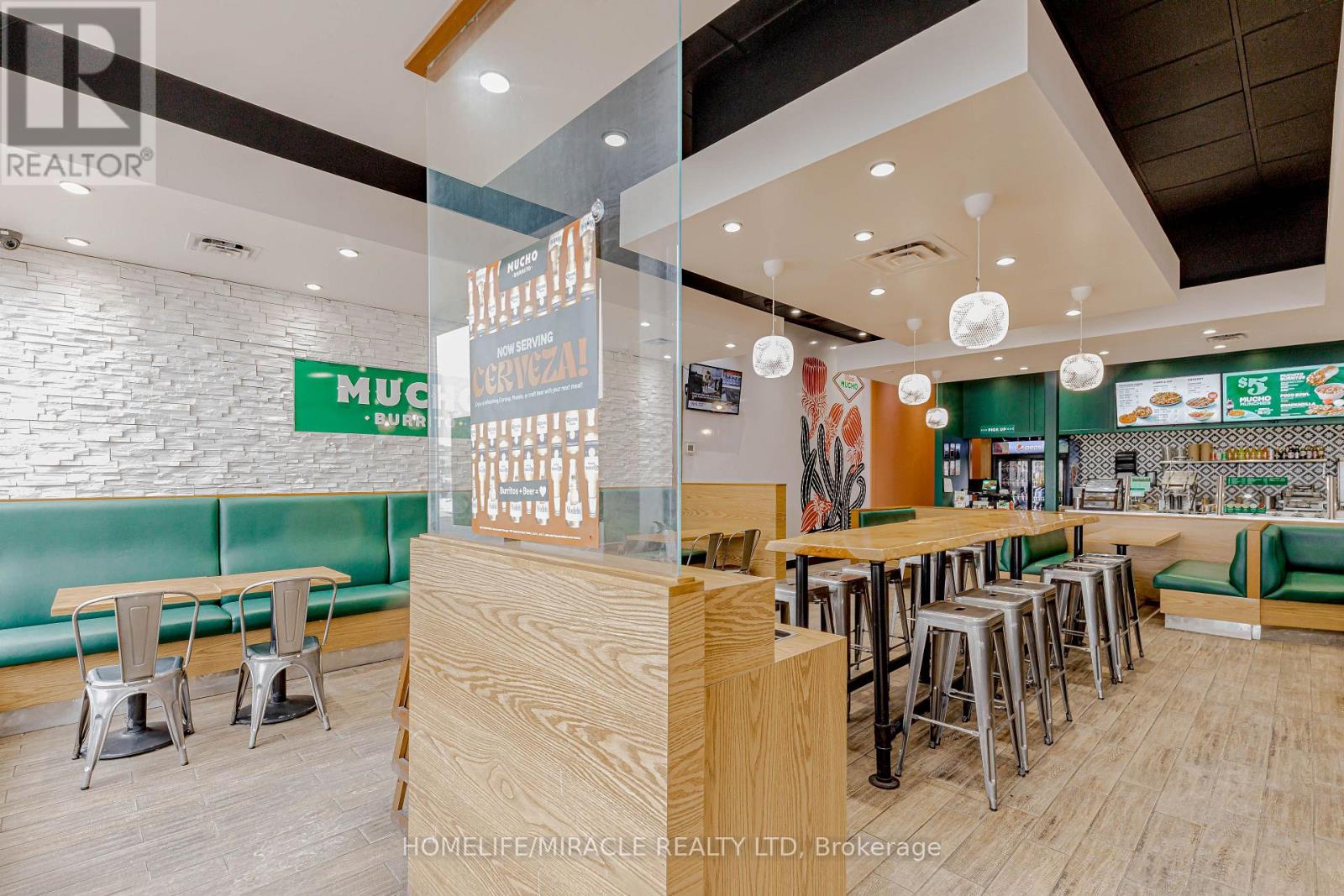 Mucho Burrito for Sale in Ajax, ON. Located at the busy intersection of Bayly St W / Harwood Ave S, surrounded by fully residential neighbourhoods. Close to schools, highways, offices, banks, and major big-box stores. Operating since 2014 with strong sales and growth potential. Avg. Monthly Sales: $53,650, Rent: $8721.71/m incl. TMI. Lease Term: Existing till May 2026 + 5 + 5 years option to renew, Royalty: 6%, Advertising: 4%, 68 seating with Turnkey operation. (id:4555)