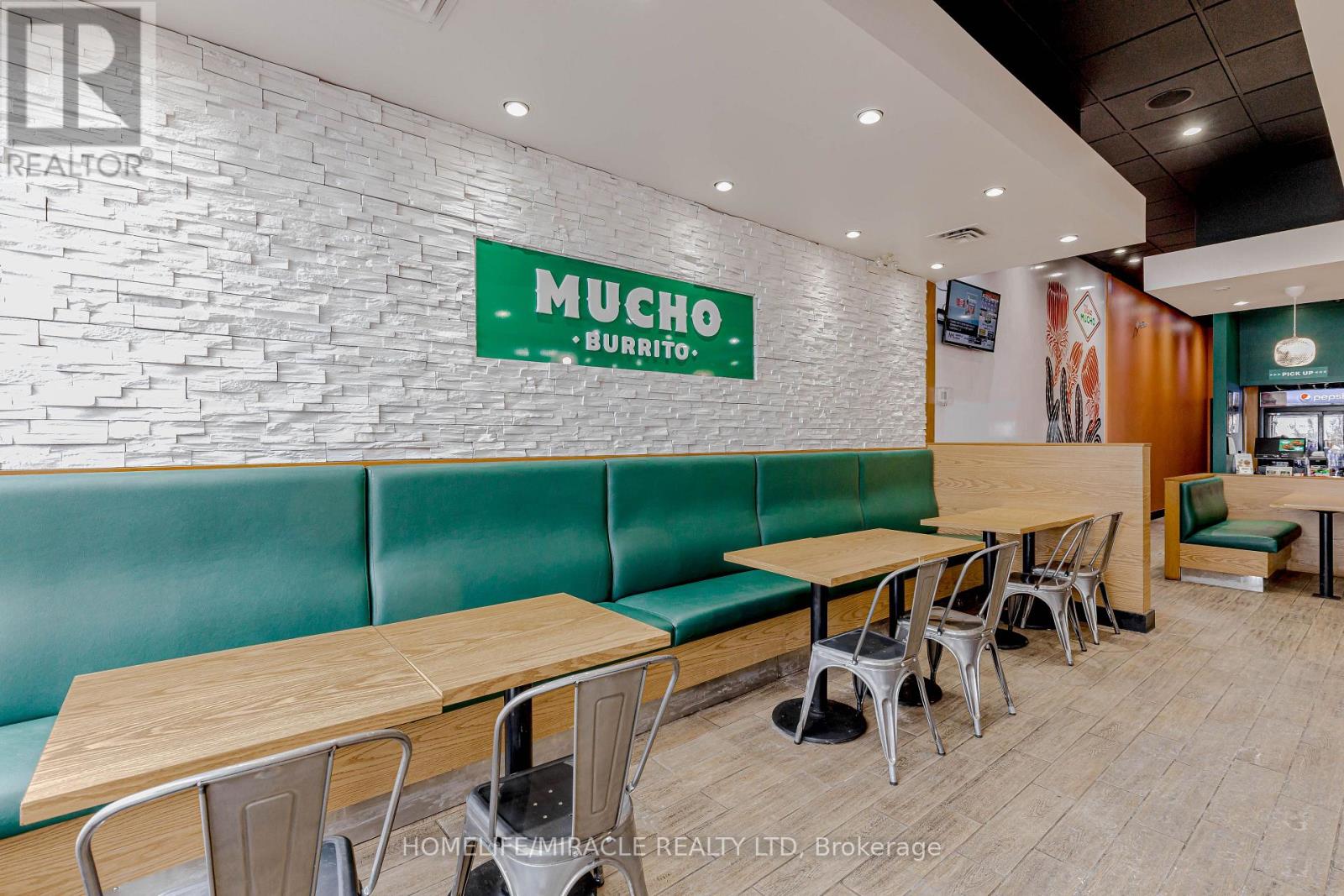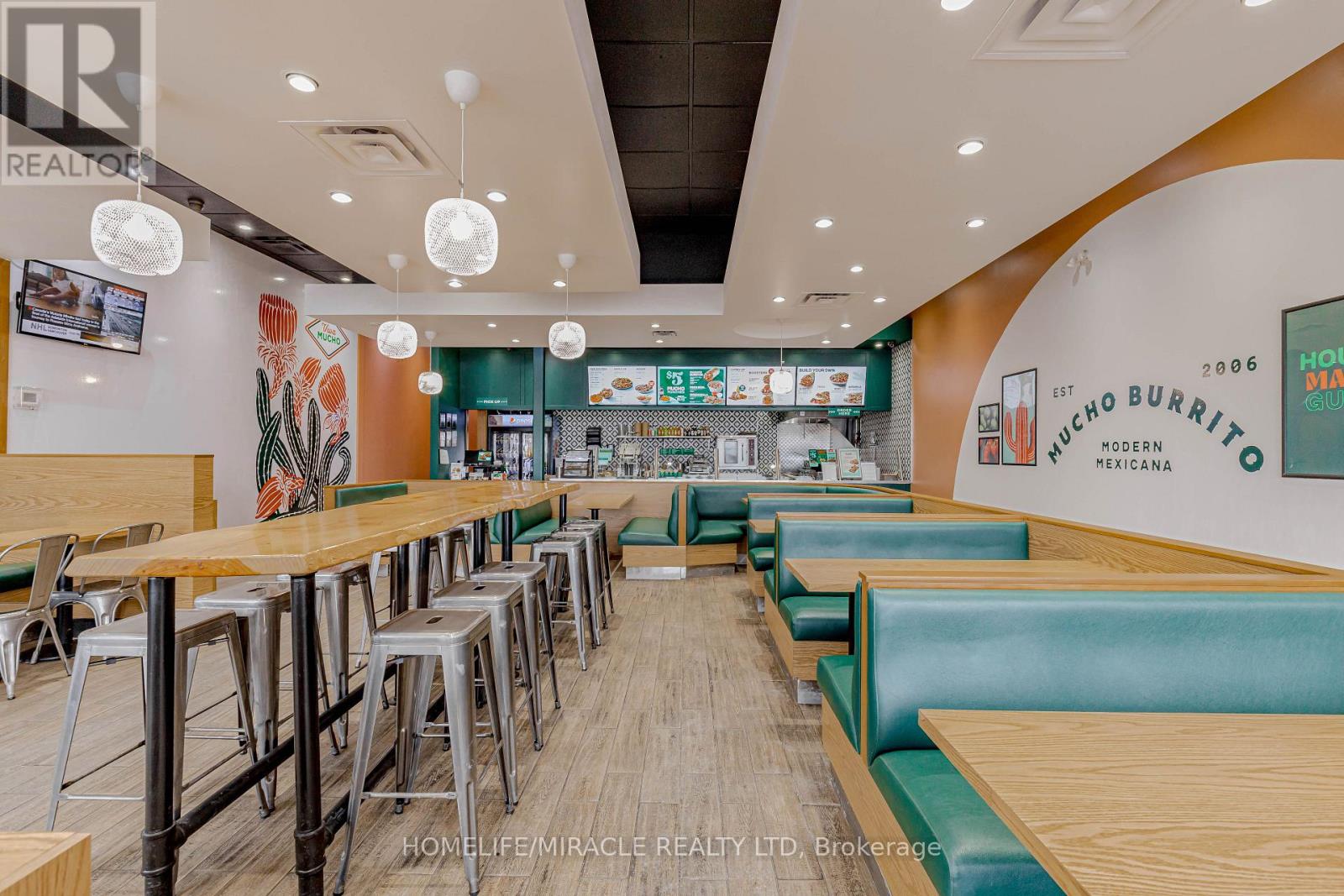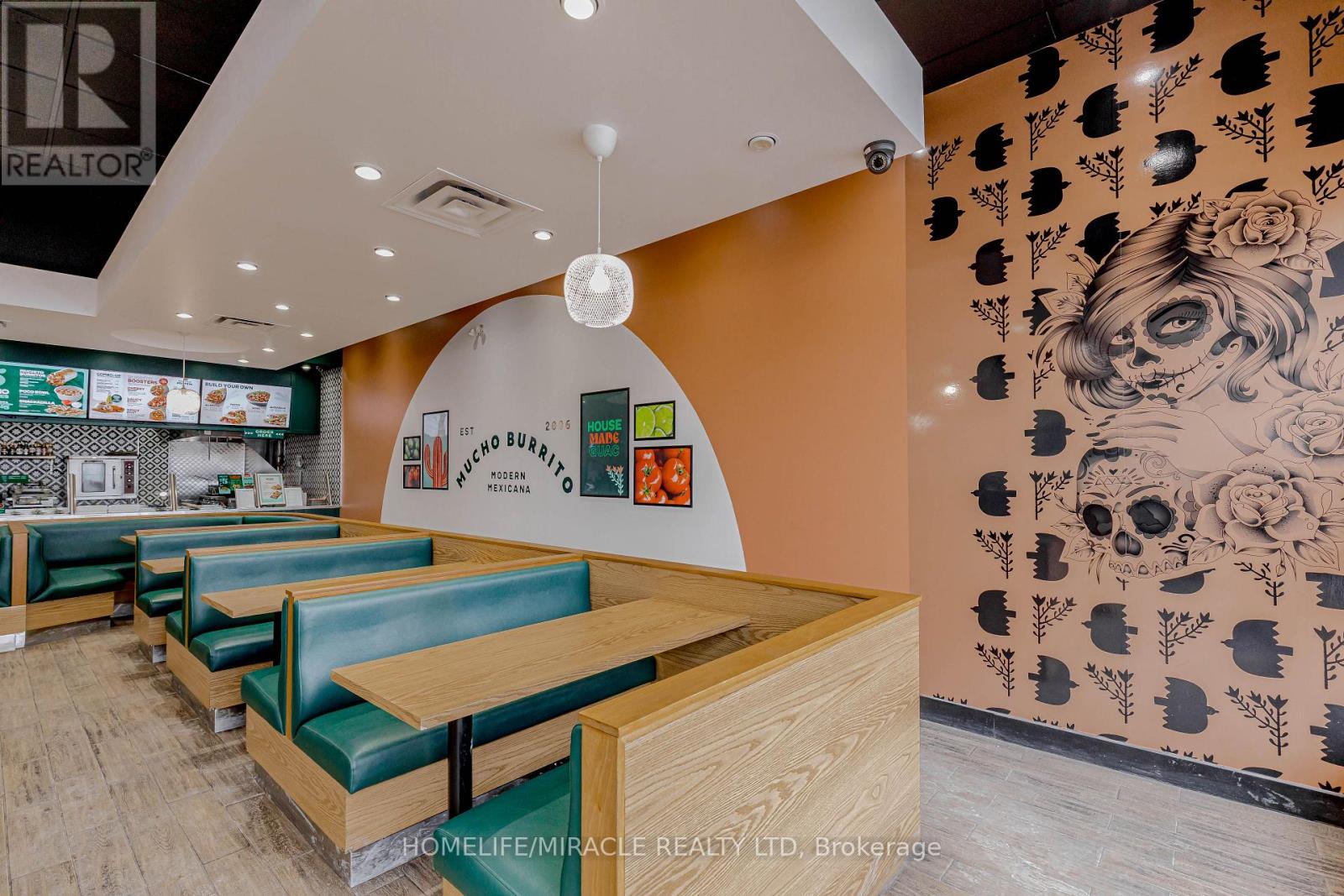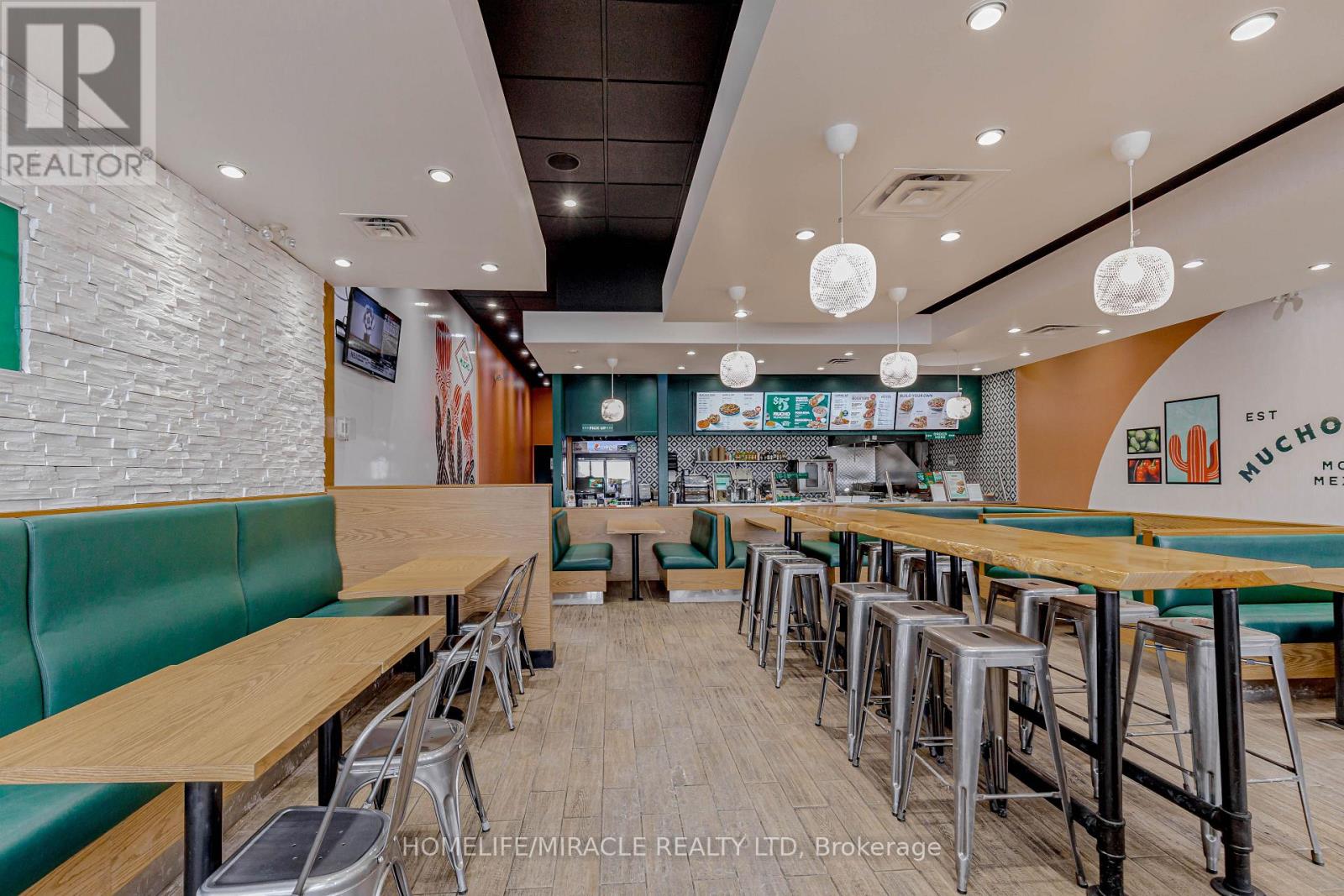 Mucho Burrito for Sale in Ajax, ON. Located at the busy intersection of Bayly St W / Harwood Ave S, surrounded by fully residential neighbourhoods. Close to schools, highways, offices, banks, and major big-box stores. Operating since 2014 with strong sales and growth potential. Avg. Monthly Sales: $53,650, Rent: $8721.71/m incl. TMI. Lease Term: Existing till May 2026 + 5 + 5 years option to renew, Royalty: 6%, Advertising: 4%, 68 seating with Turnkey operation. (id:4555)