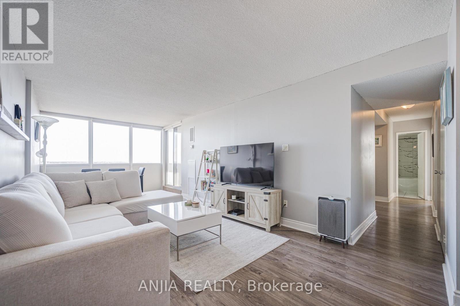 Welcome to this bright and spacious 2+Den corner suite in the heart of Ajax! Offering approximately 1,100 sq ft of well-designed living space, this southeast-facing unit is filled with natural light and showcases beautiful sunrise views.The versatile separate den provides excellent flexibility - ideal as a third bedroom, private home office, or guest space. The thoughtfully updated interior features newer paint, quality laminate flooring, updated light fixtures, and new blinds (2025), creating a modern and cohesive feel throughout.The beautifully renovated kitchen (2022) boasts stainless steel appliances, quartz countertops, stylish backsplash, and ample cabinetry - perfect for both everyday living and entertaining. The updated main bathroom adds a fresh, contemporary touch.The spacious primary suite offers a walk-in closet and private 3-piece ensuite bath. Enjoy the convenience of in-suite laundry. Situated in a prime location with easy access to Hwy 401 and just steps to shopping, restaurants, plazas, and Lakeridge Health, this condo offers exceptional convenience. Residents enjoy outstanding building amenities including a pool, recreation room, exercise room, tennis court, and visitor parking. A bright, move-in-ready home combining space, updates, and unbeatable location - perfect for families, professionals, or investors alike. (id:4555)