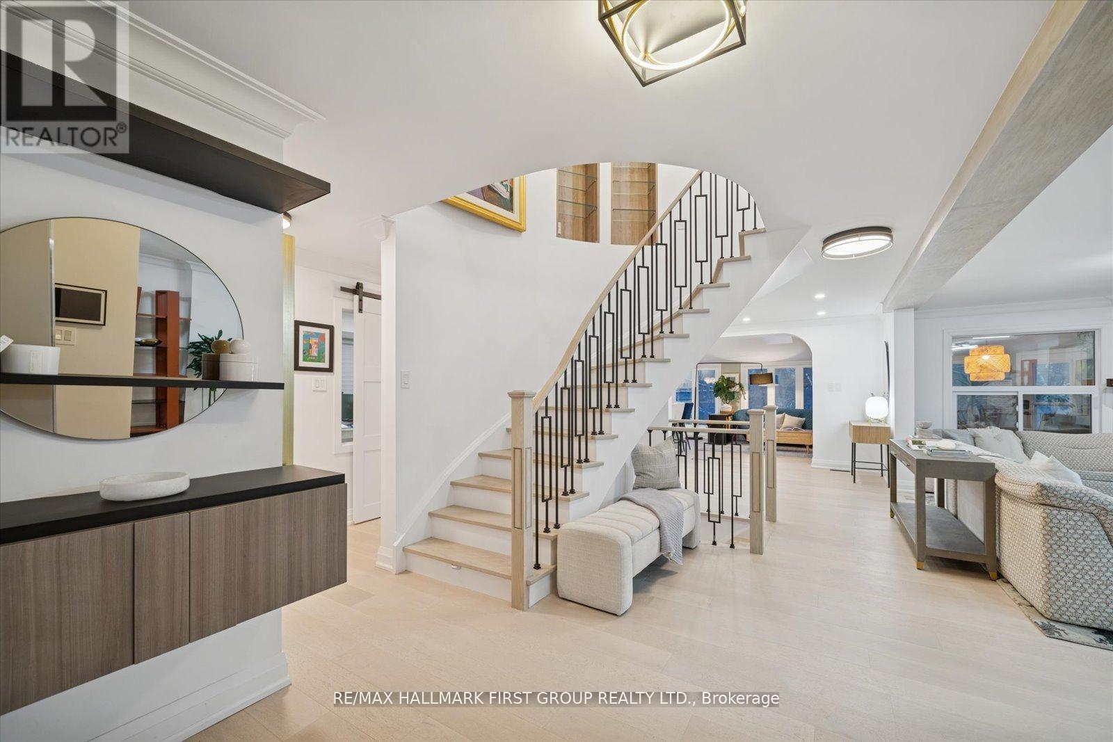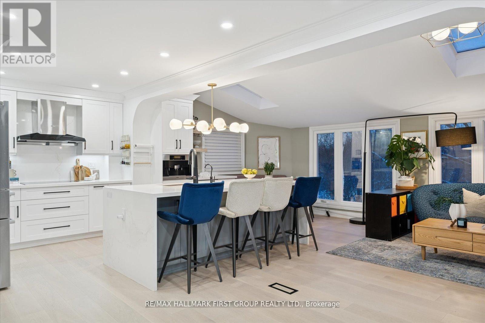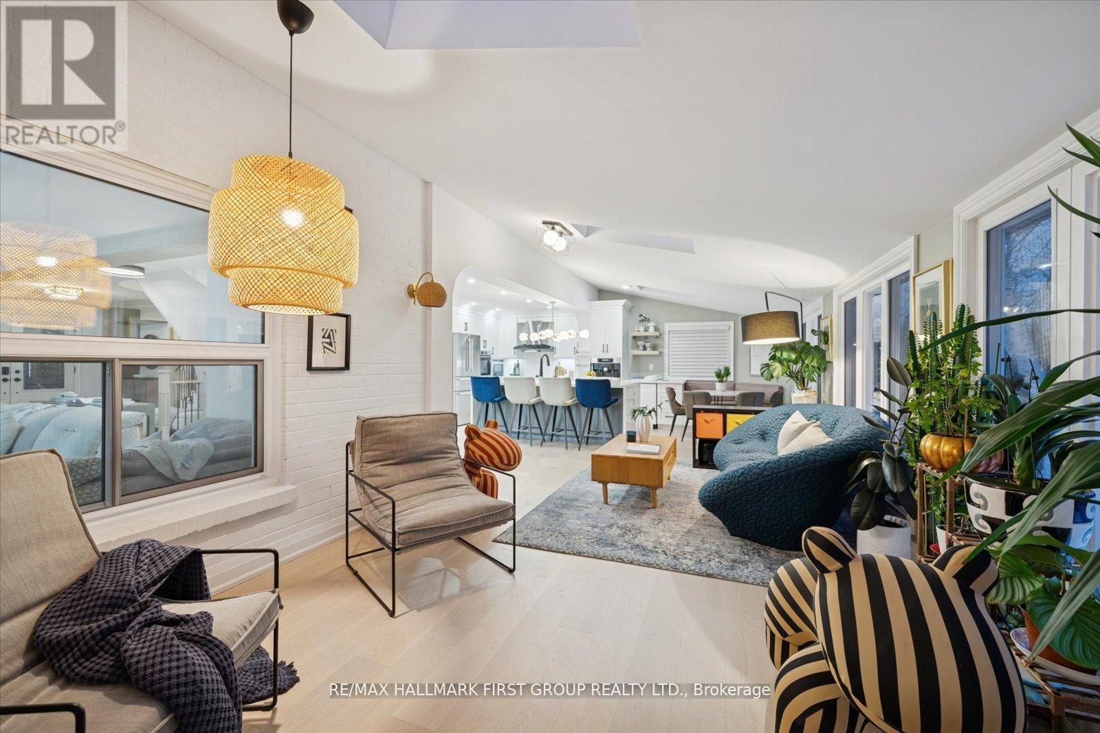 Welcome to an exquisitely renovated, designer-curated home in a coveted South Ajax location close to the lake, backing onto protected greenspace with a peaceful river flowing into Lake Ontario. Private, serene, and surrounded by nature, this exceptional residence offers refined finishes and effortless functionality.Completely renovated in 2022, the home features rich hardwood flooring, elegant crown moulding on the main floor, pot lights, and three skylights that fill the space with natural light. At the heart of the home is a stunning chef's kitchen with quartz countertops and a striking waterfall-edge island, built-in double ovens, premium appliances. Kitchen appliances were updated in 2022.The main floor includes a private office with custom built-ins and sliding barn doors, ideal for working from home, along with a convenient laundry room offering garage access, a side entrance, and additional built-in storage. The finished basement adds valuable living space and includes a spa-inspired 3-piece bath and private sauna. Smart home features are integrated throughout, including smart toilets and smart system setups designed for modern comfort. Additional upgrades include a 200-amp electrical panel, Tesla charger in the garage, and washer and dryer replaced in 2025.Offering exceptional privacy, a breathtaking natural backdrop, and a luxurious renovation, this is a rare opportunity to own a truly distinguished home in one of South Ajax's most desirable settings. (id:4555)