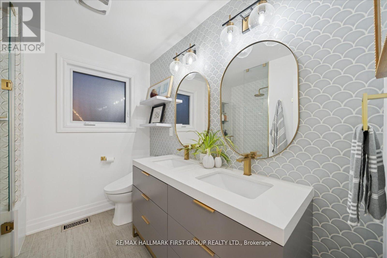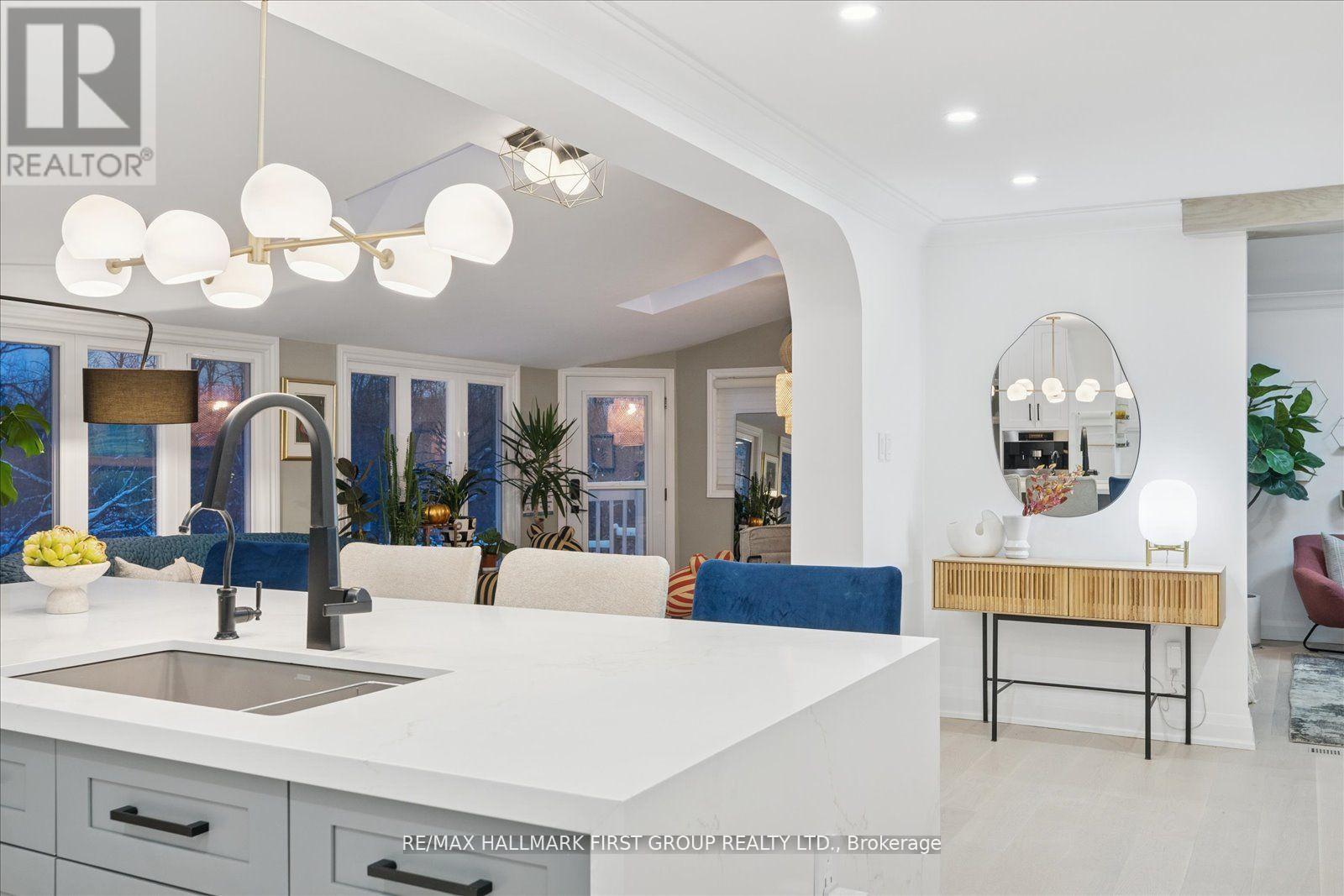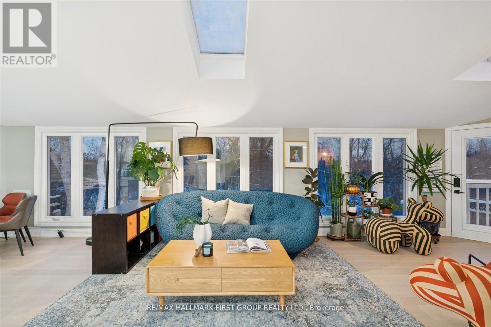 Welcome to an exquisitely renovated, designer-curated home in a coveted South Ajax location close to the lake, backing onto protected greenspace with a peaceful river flowing into Lake Ontario. Private, serene, and surrounded by nature, this exceptional residence offers refined finishes and effortless functionality.Completely renovated in 2022, the home features rich hardwood flooring, elegant crown moulding on the main floor, pot lights, and three skylights that fill the space with natural light. At the heart of the home is a stunning chef's kitchen with quartz countertops and a striking waterfall-edge island, built-in double ovens, premium appliances. Kitchen appliances were updated in 2022.The main floor includes a private office with custom built-ins and sliding barn doors, ideal for working from home, along with a convenient laundry room offering garage access, a side entrance, and additional built-in storage. The finished basement adds valuable living space and includes a spa-inspired 3-piece bath and private sauna. Smart home features are integrated throughout, including smart toilets and smart system setups designed for modern comfort. Additional upgrades include a 200-amp electrical panel, Tesla charger in the garage, and washer and dryer replaced in 2025.Offering exceptional privacy, a breathtaking natural backdrop, and a luxurious renovation, this is a rare opportunity to own a truly distinguished home in one of South Ajax's most desirable settings. (id:4555)