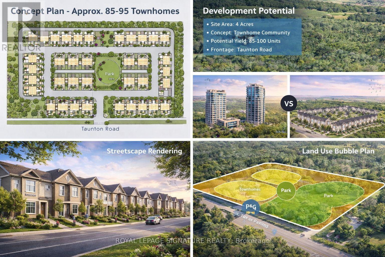 Rare chance to acquire two contiguous parcels comprising approximately 4.01 acres (174,655 SF) of development land with a combined 478 feet of prime frontage on Taunton Road West, one of Ajax's key east-west arterial corridors, located in the rapidly growing Northwest Ajax area.VENDOR FINANCING OR JV OPPORTUNITIES AVAILABLE The properties are currently zoned CR (Commercial Residential) under the Town of Ajax Zoning By-law, permitting a range of residential and commercial uses, subject to zoning regulations. and municipal approvals. The site offers strong long-term redevelopment and intensification potential within an established growth corridor.Strategically located minutes to Highways 401, 407, and 412, the site benefits from excellent regional connectivity and proximity to established residential neighbourhoods, retail amenities, schools, and transit. The parcels feature an irregular configuration, direct ingress/egress from Taunton Road West, and availability of full municipal services.The lands are currently improved with two detached dwellings: however, the properties are being marketed and valued for land and redevelopment potential only.Opportunities of this scale, frontage, and location along Taunton Road West are increasingly limited. Ideal for developers, builders, and land investors seeking a sizeable assembly in a proven Durham Region growth corridor.Information package available upon request, including third-party appraisal.The offering consists of:649 Taunton Road West (Roll No. 180501001113305)669 Taunton Road West (Roll No. 180501001113310)Each property is legally separate with its own roll number; however, they are being marketed collectively as a single land assembly. Buyer to verify zoning, permitted uses, density, servicing, and development potential. Owner highly flexible with price and terms. (id:4555)