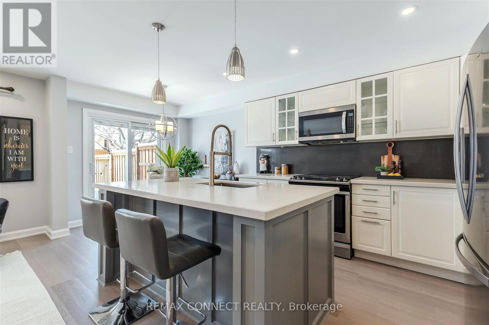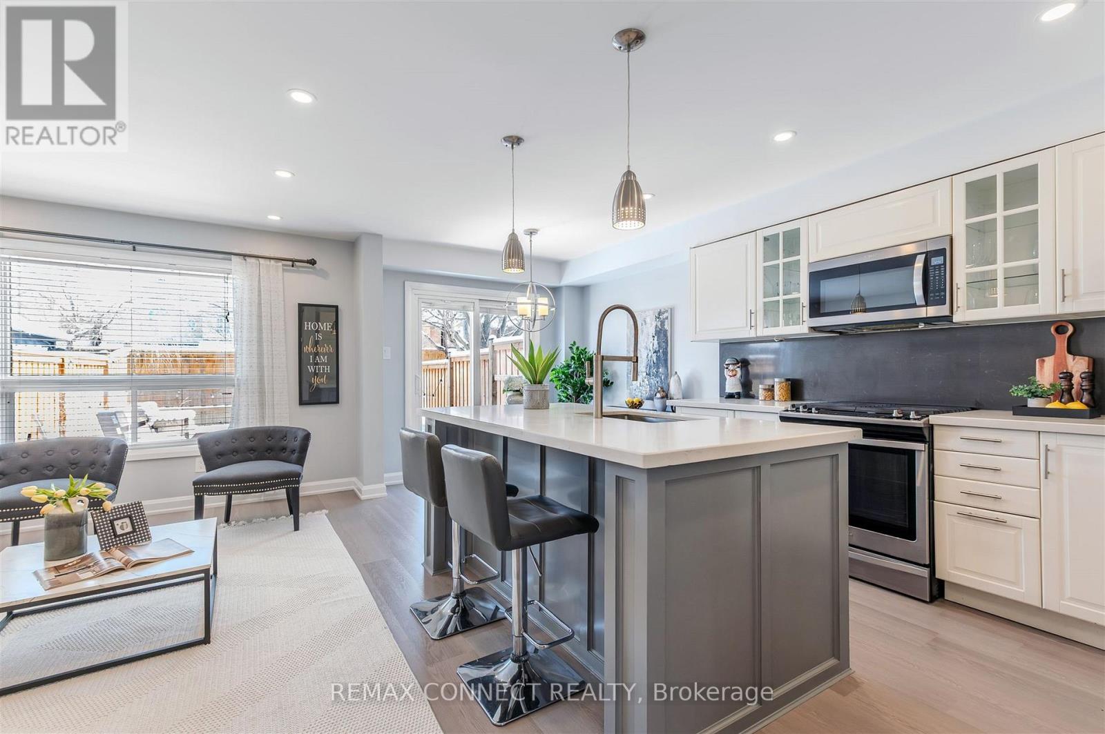 Welcome to this beautiful 3 bedroom completely upgraded home, nestled in a quiet corner of Ajax. Main floor has a stunning open concept renovation including quartz centre island quartz counters, and quartz backsplash. Large living room window allows sunshine to flood main floor adding warmth and comfort. Living room has floor to ceiling stone feature wall with built-in fireplace and built-in tv (included). Double sliding door from dining room walks out to large deck and fully fenced and private yard. No neighbours behind you. New professionally finished basement is comfortable, and adds extra square footage for family gatherings and play area for children. Loads of storage, plus a perfect little office nook. Master bedroom has walk-in closet and full ensuite bath. Upgrades and Renos include, newer kitchen, newer baths, new sliding glass door to yard 2021, new air conditioner 2022, new 2nd floor bedroom windows 2024, new roof and added insulation 2024, new garage door opener 2025, garage access through mudroom. New plank flooring throughout main floor in 2026. This home is perfect, nothing to upgrade. Definitely ready to move in, enjoy, and make it your home. (id:4555)