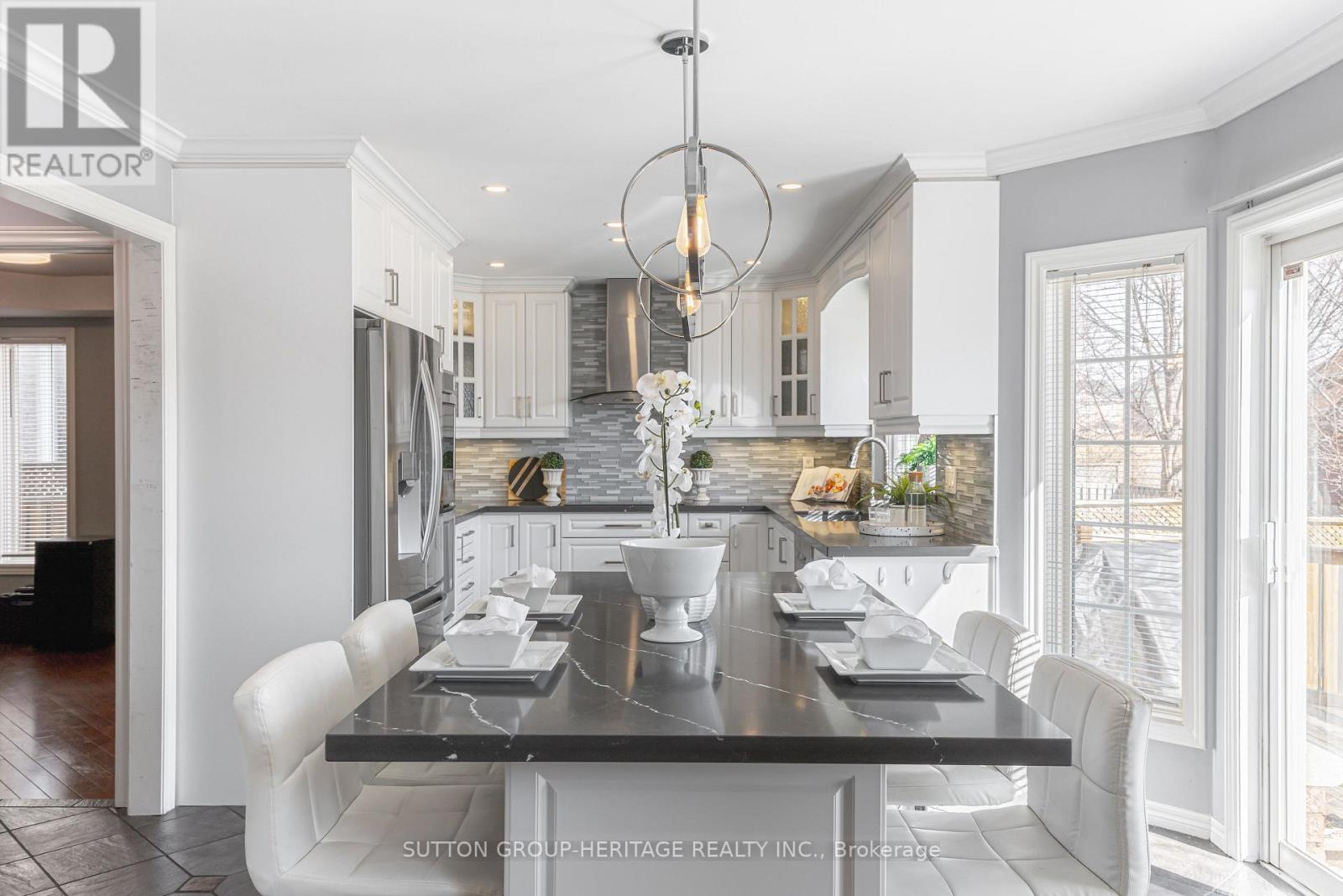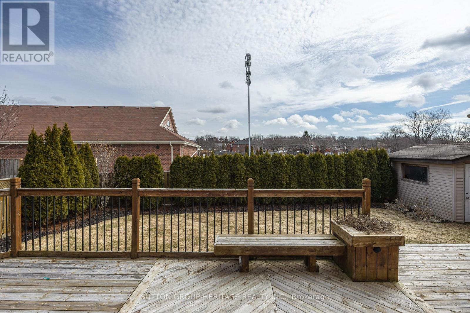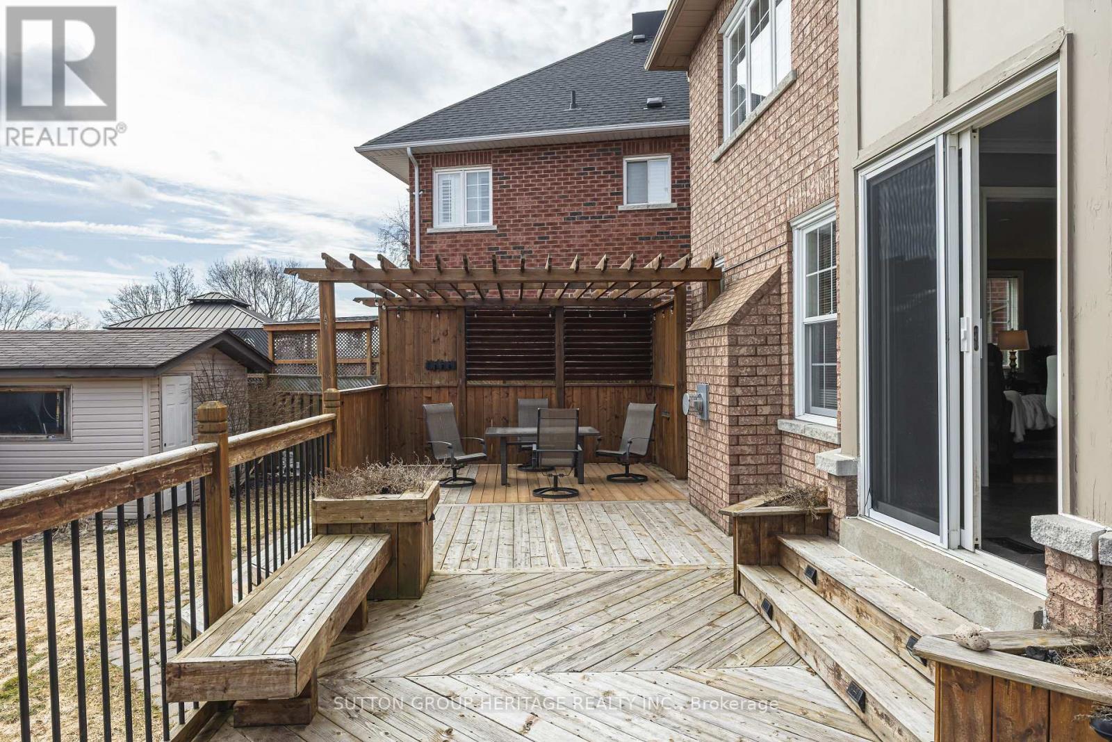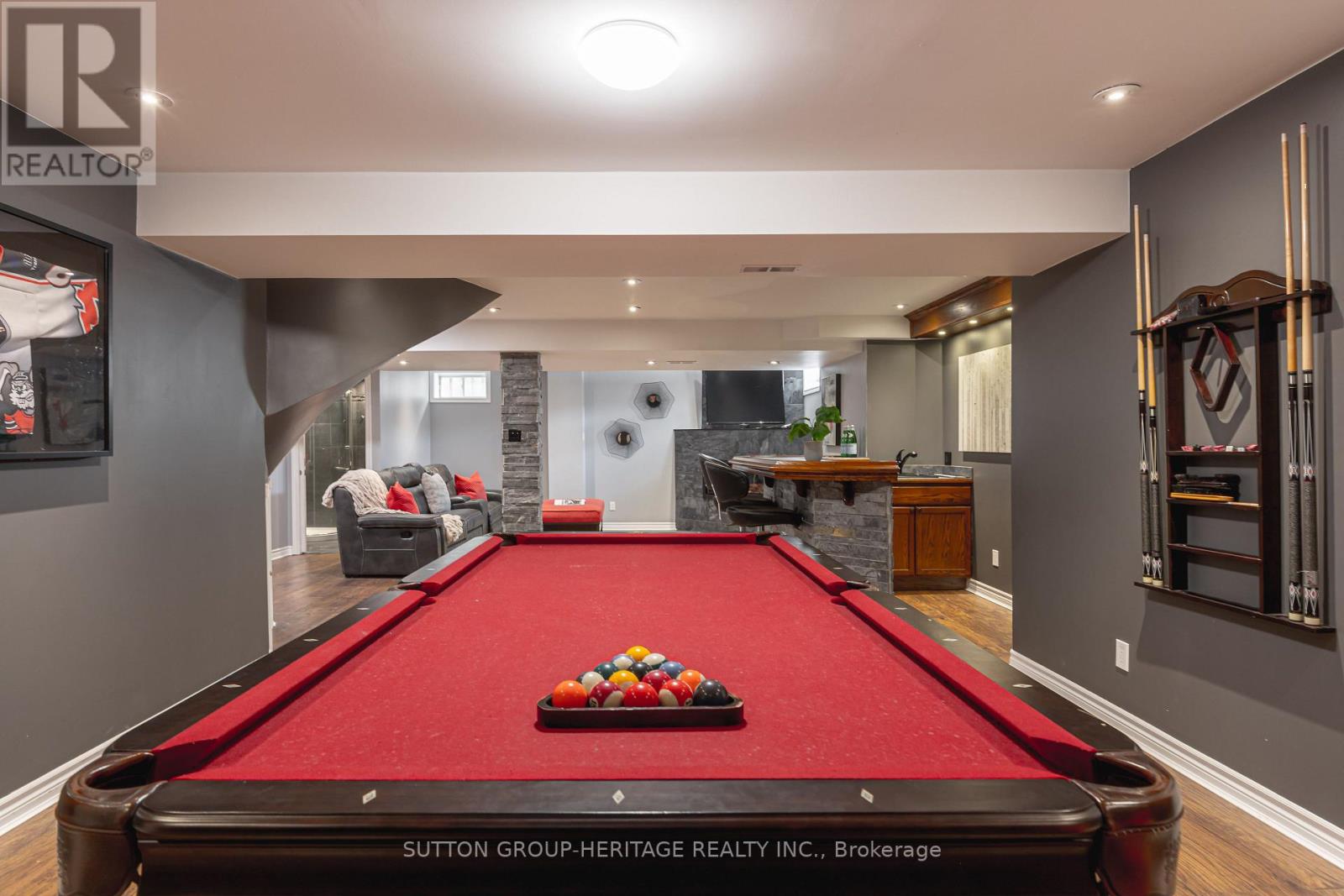 Welcome to this beautiful home in one of Ajax's most sought-after neighbourhoods, surrounded by golf courses, top-rated schools, parks, and the charm of Pickering Village. Set on a large, private pie-shaped lot with no rear neighbours, this sun-filled property offers both tranquility and space for outdoor living. Enjoy a spacious deck-perfect for entertaining family and friends in your own backyard retreat. Inside, you'll find a stunning kitchen featuring double ovens and an induction cooktop, seamlessly opening to a generous family room complete with built-in speakers-ideal for cozy nights in. The main floor also offers a formal dining room, currently used as a home office, and an elegant sunken living room that adds character and sophistication to the layout. A grand circular staircase leads to the upper level, where you'll find four large bedrooms, including a luxurious primary suite with a spa-like ensuite retreat. The fully finished basement is designed for entertainment, featuring a wet bar, fireplace, billiards room, and media area-your perfect space to relax and unwind. (id:4555)
