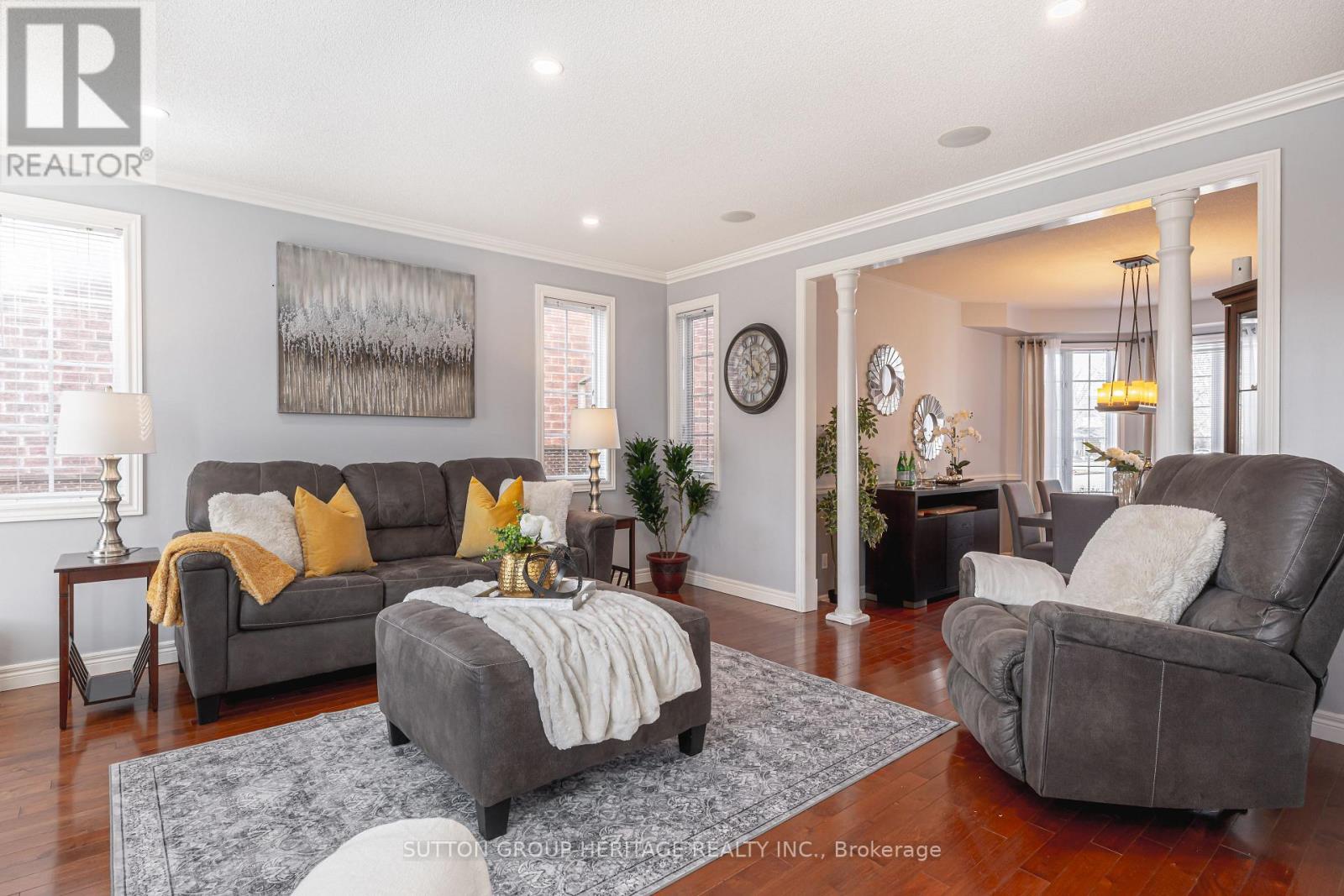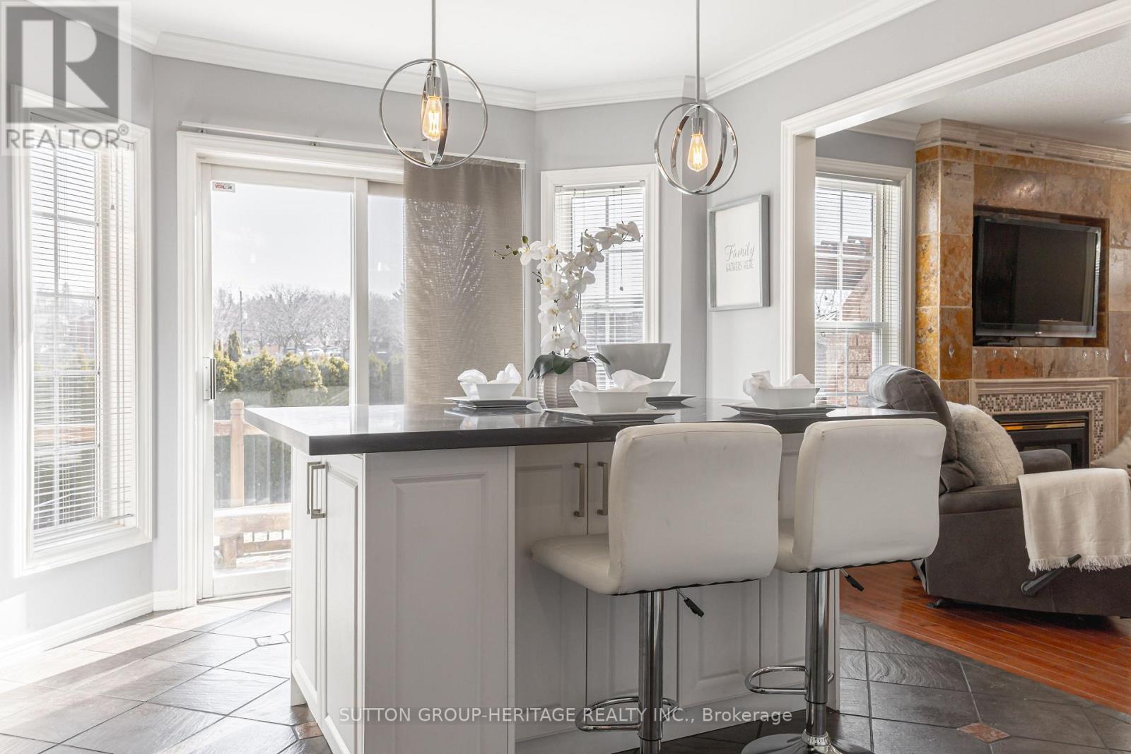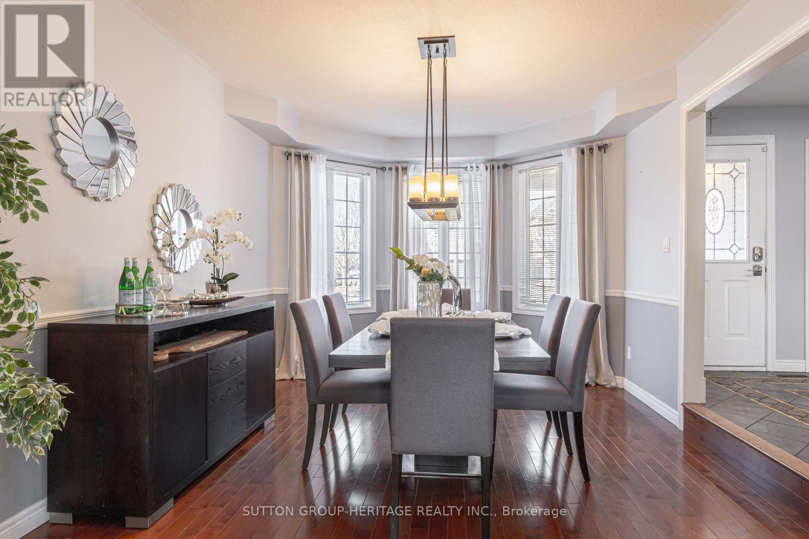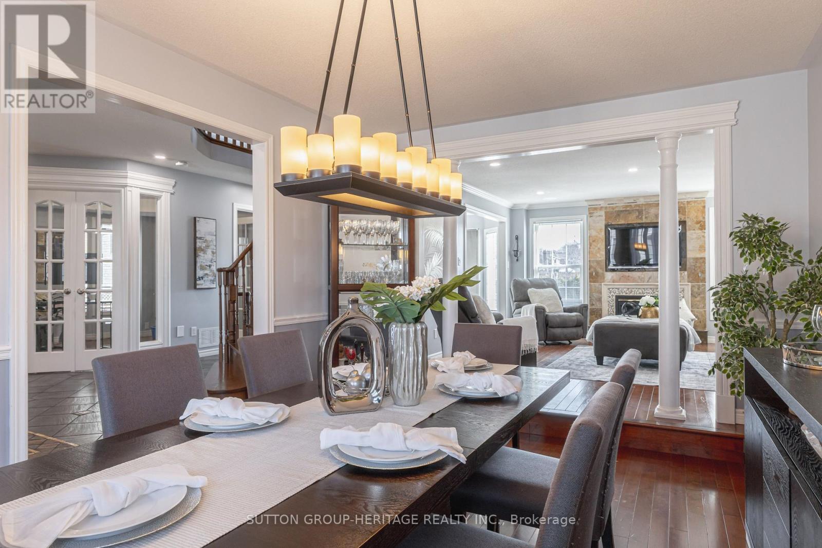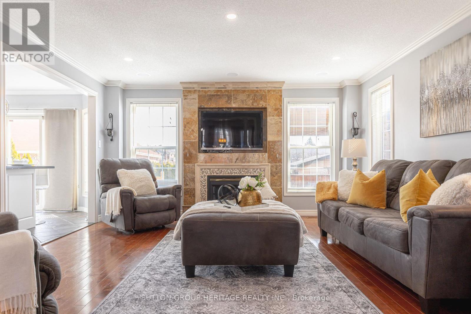 Welcome to this beautiful home in one of Ajax's most sought-after neighbourhoods, surrounded by golf courses, top-rated schools, parks, and the charm of Pickering Village. Set on a large, private pie-shaped lot with no rear neighbours, this sun-filled property offers both tranquility and space for outdoor living. Enjoy a spacious deck-perfect for entertaining family and friends in your own backyard retreat. Inside, you'll find a stunning kitchen featuring double ovens and an induction cooktop, seamlessly opening to a generous family room complete with built-in speakers-ideal for cozy nights in. The main floor also offers a formal dining room, currently used as a home office, and an elegant sunken living room that adds character and sophistication to the layout. A grand circular staircase leads to the upper level, where you'll find four large bedrooms, including a luxurious primary suite with a spa-like ensuite retreat. The fully finished basement is designed for entertainment, featuring a wet bar, fireplace, billiards room, and media area-your perfect space to relax and unwind. (id:4555)
