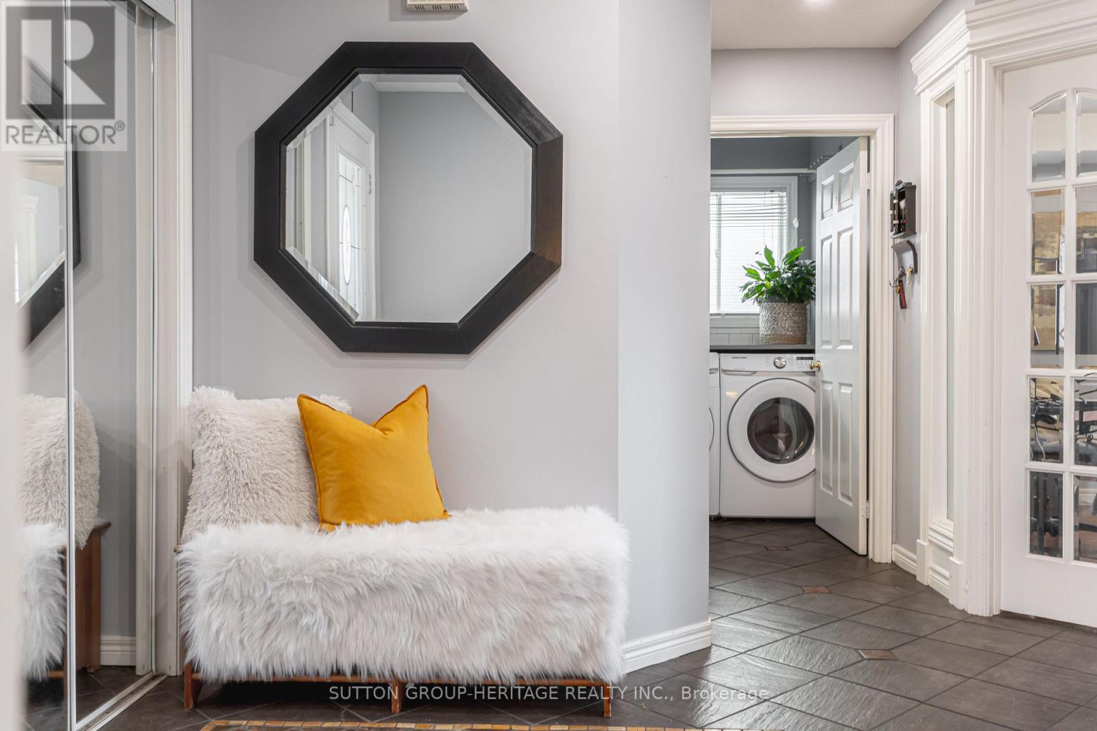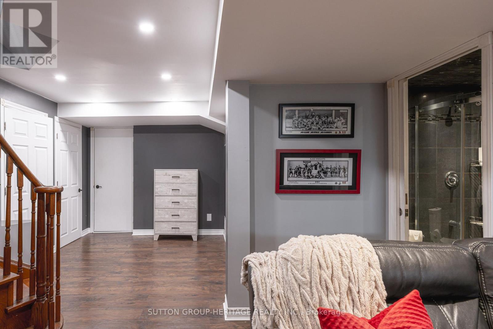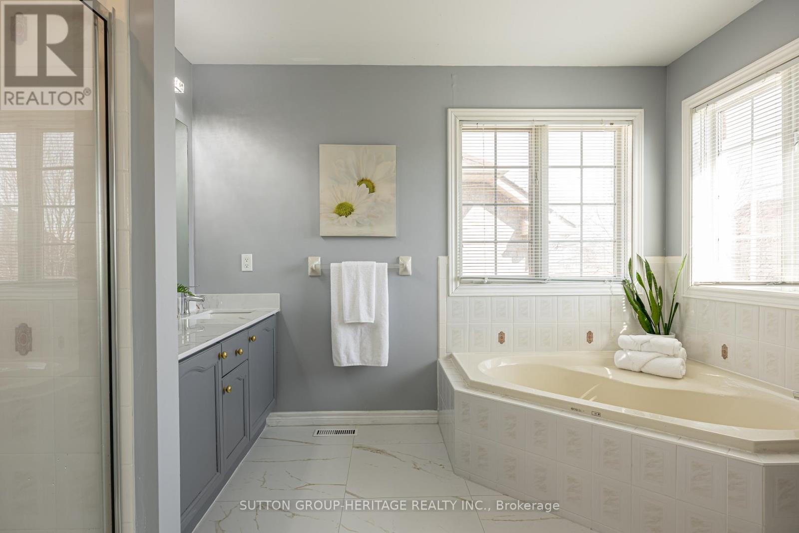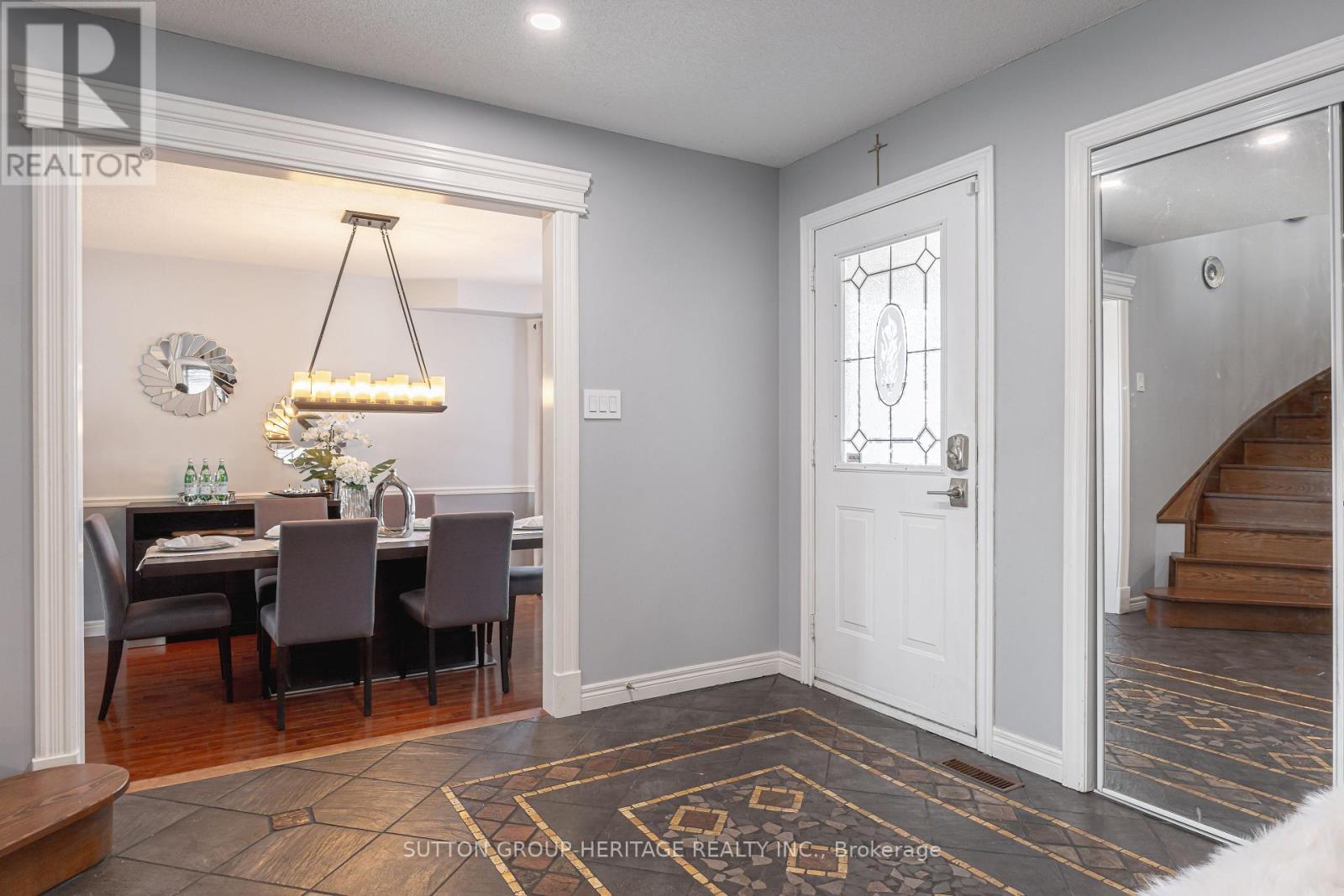 Welcome to this beautiful home in one of Ajax's most sought-after neighbourhoods, surrounded by golf courses, top-rated schools, parks, and the charm of Pickering Village. Set on a large, private pie-shaped lot with no rear neighbours, this sun-filled property offers both tranquility and space for outdoor living. Enjoy a spacious deck-perfect for entertaining family and friends in your own backyard retreat. Inside, you'll find a stunning kitchen featuring double ovens and an induction cooktop, seamlessly opening to a generous family room complete with built-in speakers-ideal for cozy nights in. The main floor also offers a formal dining room, currently used as a home office, and an elegant sunken living room that adds character and sophistication to the layout. A grand circular staircase leads to the upper level, where you'll find four large bedrooms, including a luxurious primary suite with a spa-like ensuite retreat. The fully finished basement is designed for entertainment, featuring a wet bar, fireplace, billiards room, and media area-your perfect space to relax and unwind. (id:4555)