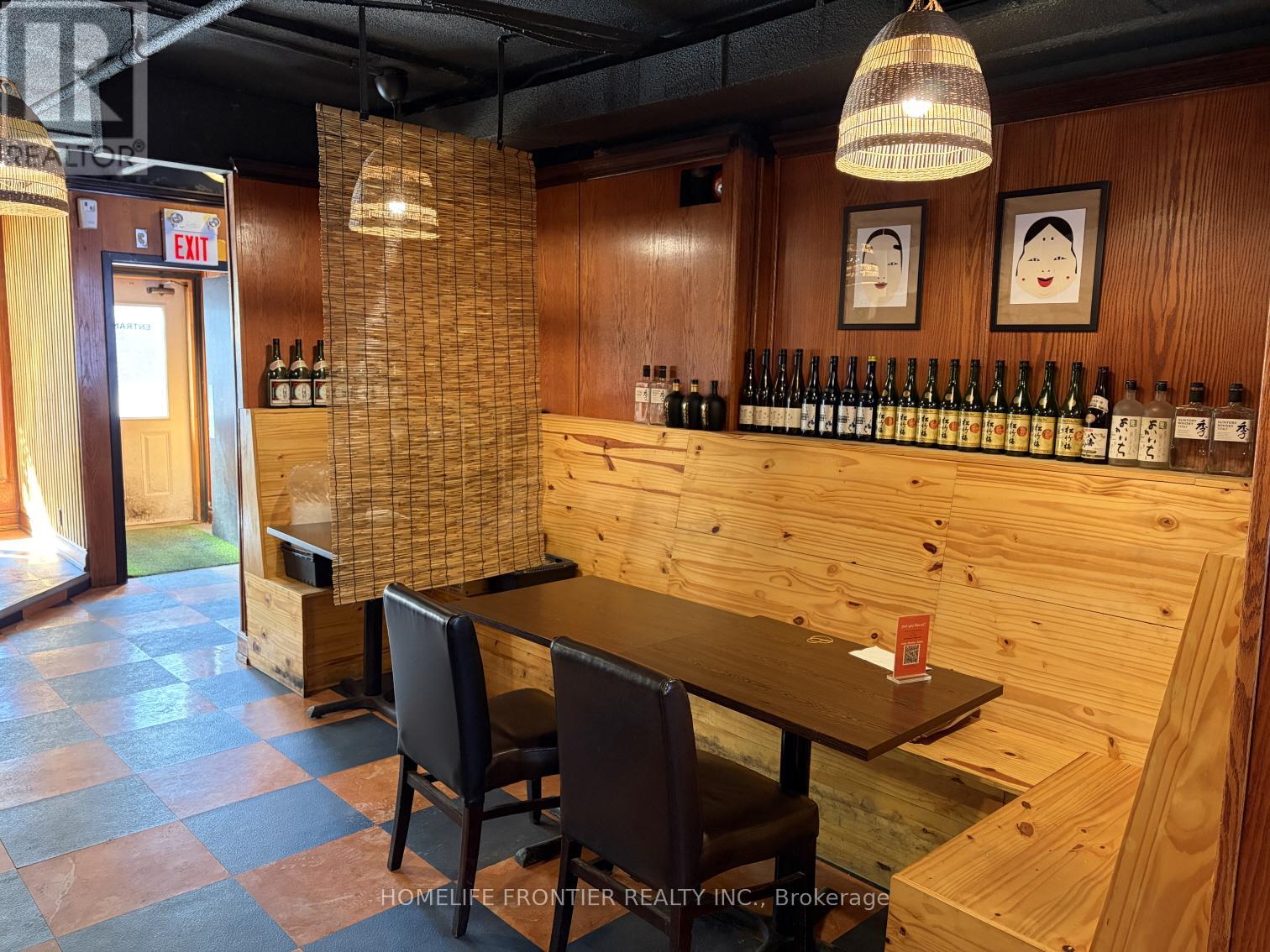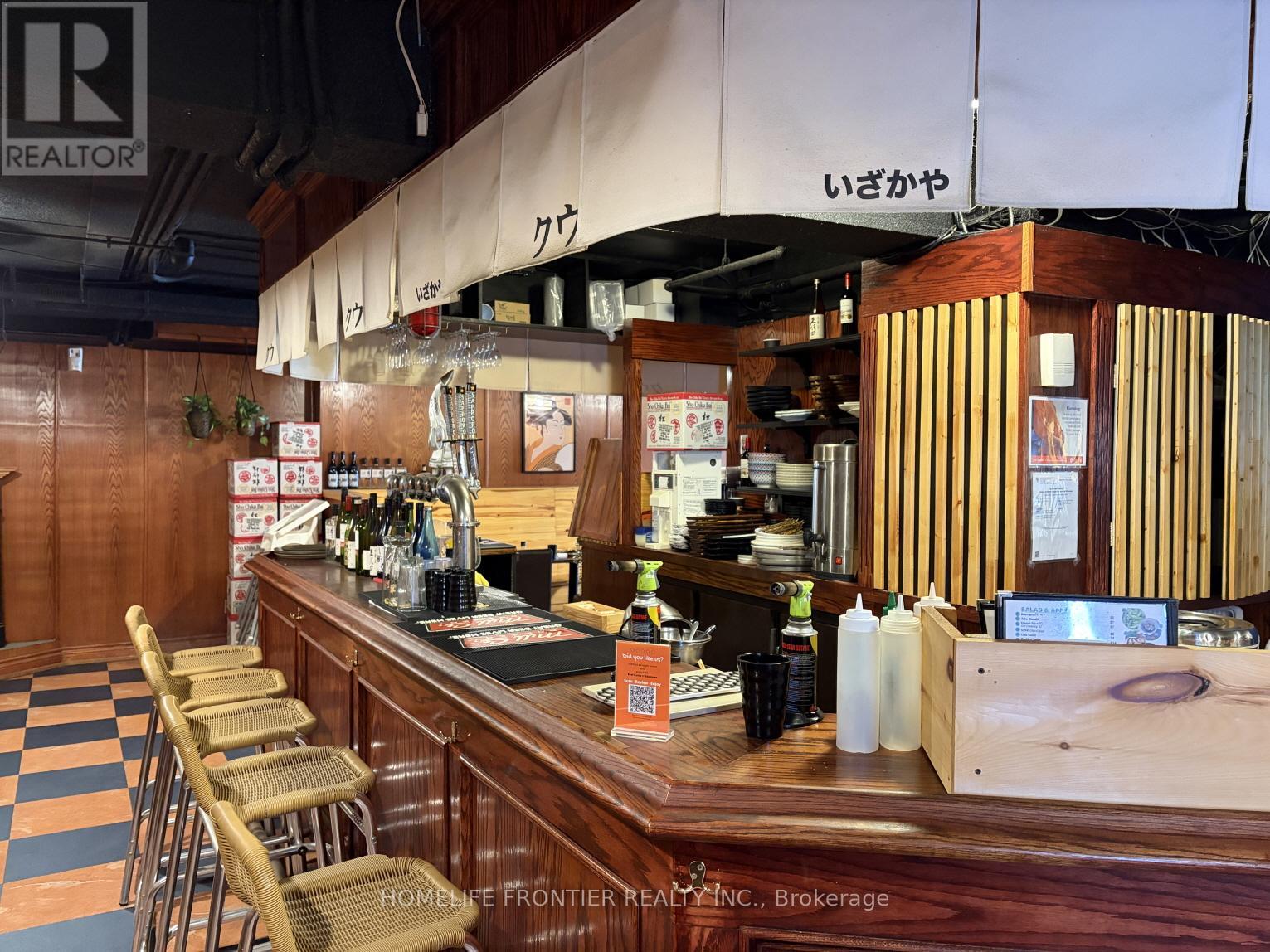 Exceptional opportunity to acquire a fully turnkey Japanese Sushi Izakaya restaurant nestled inside the charming Courtyard at Pickering Village - one of Ajax's most distinctive and sought-after commercial settings. This 2,000+ sq ft LLBO-licensed establishment is profitable, move-in ready, and backed by excellent online reviews. The fully equipped kitchen and all operational equipment are included, with significant capital already invested by the current owner. Enjoy the best of both worlds: a cozy, character-filled indoor dining room and a stunning front patio that truly comes alive in the warmer months, offering an atmosphere that keeps guests coming back. Ample on-site parking, stable monthly rent of approx. $7,000 (including TMI, water & garbage), 5 years remaining on the lease with a 5 year renewal option, and open 6 days a week with room to grow. Dine-in and take-out revenue streams already in place. A rare find in a one-of-a-kind location. (id:4555)