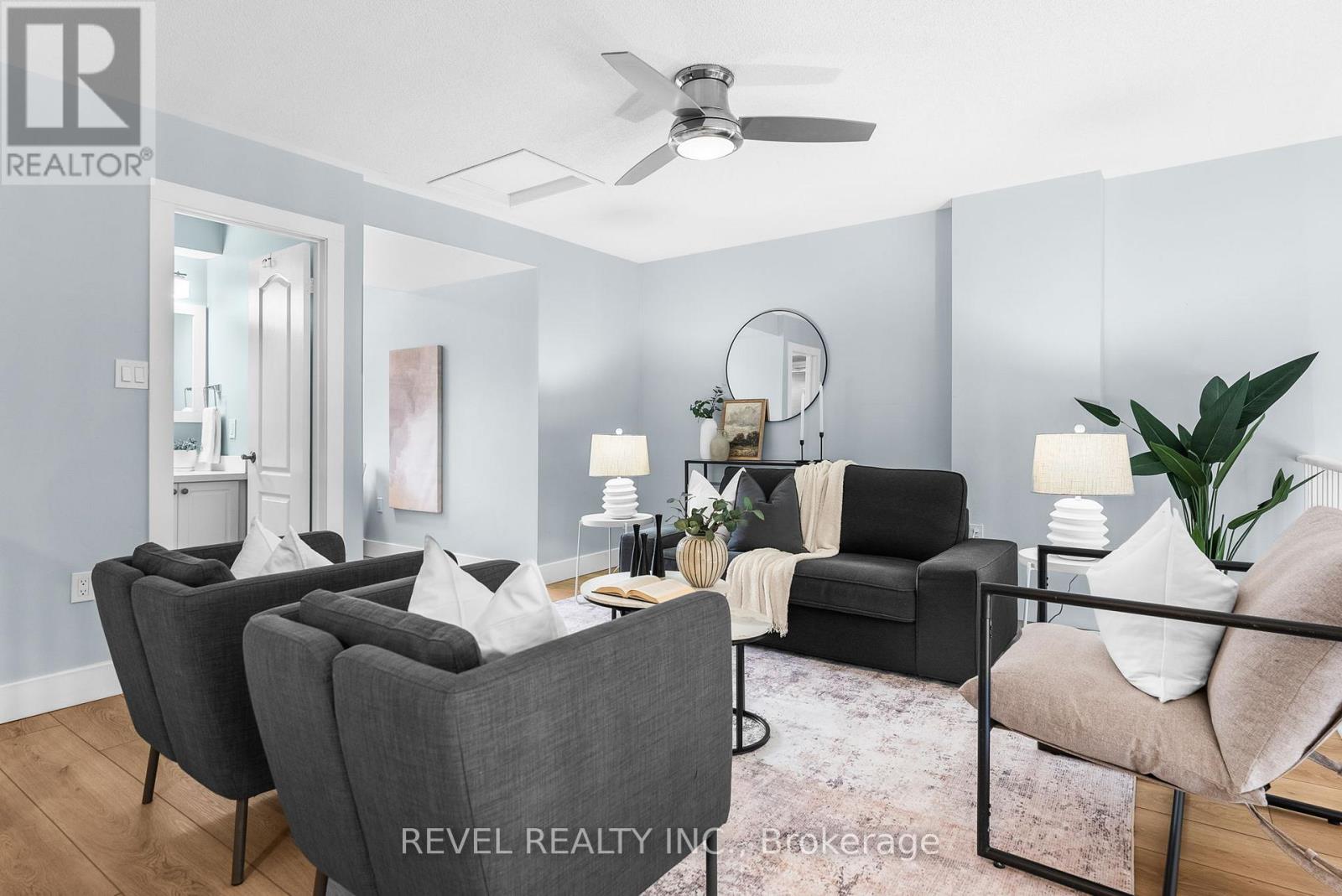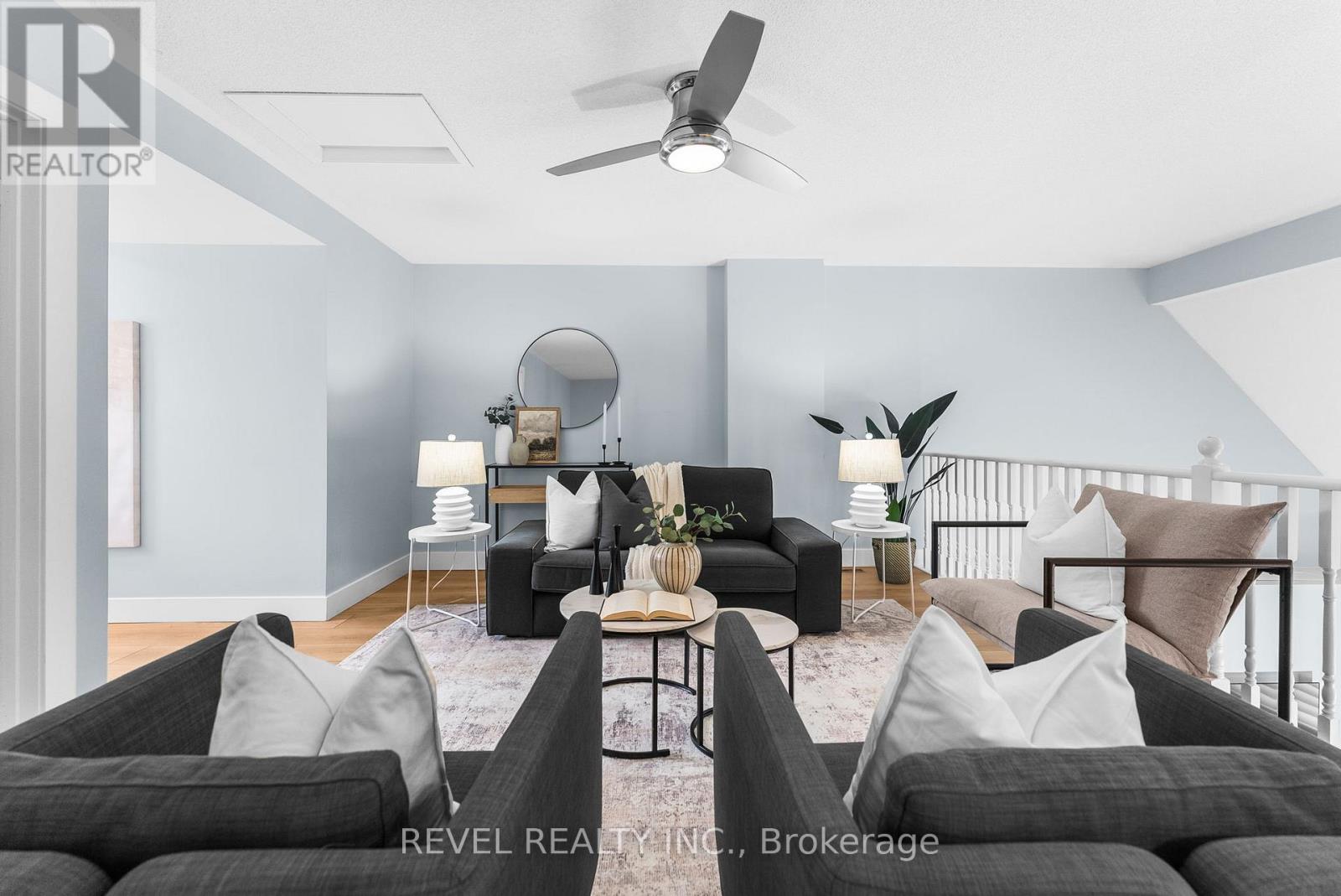 Beautifully updated home situated in the lovely gated Henderson Place retirement community in one of Ajax's most sought-after neighbourhoods. Offering comfort, convenience, and a vibrant lifestyle, this thoughtfully designed residence is perfect for those seeking low-maintenance living without compromising on space or style.This bright and inviting home features 1+1 bedrooms and four fully renovated bathrooms, along with a stair lift for added accessibility. The updated kitchen showcases elegant quartz countertops, California shutters, and built-in stainless steel appliances including a dishwasher and microwave - ideal for everyday living and entertaining.The stunning family room impresses with a cathedral ceiling, cozy gas fireplace, and walk-out access to a private backyard patio, creating the perfect setting for relaxation or hosting guests.An incredible loft level offers exceptional flexibility, complete with a large walk-in closet with custom built-ins, a 3-piece bathroom, and versatile flex space ideal for a home office ,additional family room and can also be easily converted into an additional bedroom.Convenience continues with main-floor laundry and a fully finished basement featuring a wet bar, renovated 3-piece bathroom, spacious recreation room for gatherings, and an additional office or hobby area. Highlights include two parking spaces, an attached garage with interior access, and access to the Henderson House community centre, offering social activities and events that foster a welcoming and active lifestyle. Maintenance fees provide true peace of mind and includes snow removal, lawn care, window cleaning, water, and sewer fees, allowing you to enjoy carefree living year-round.A rare opportunity to own a turnkey home in a highly desirable adult lifestyle community - Just move in and enjoy ! (id:4555)