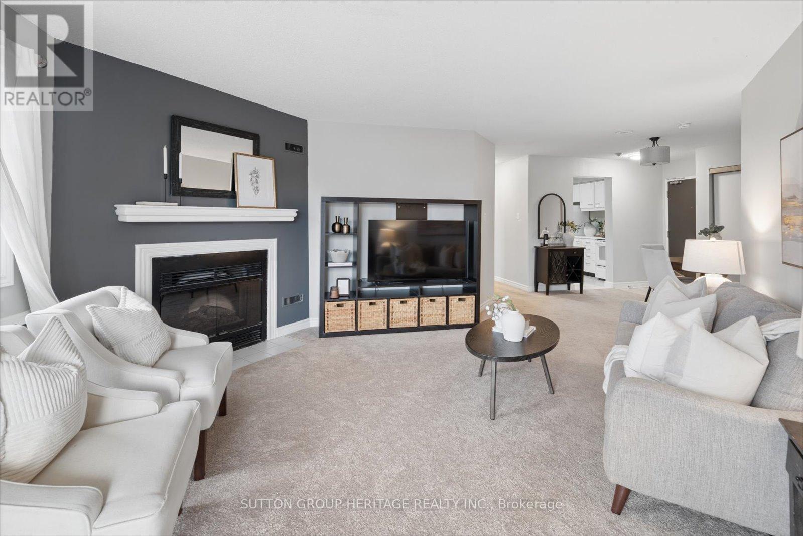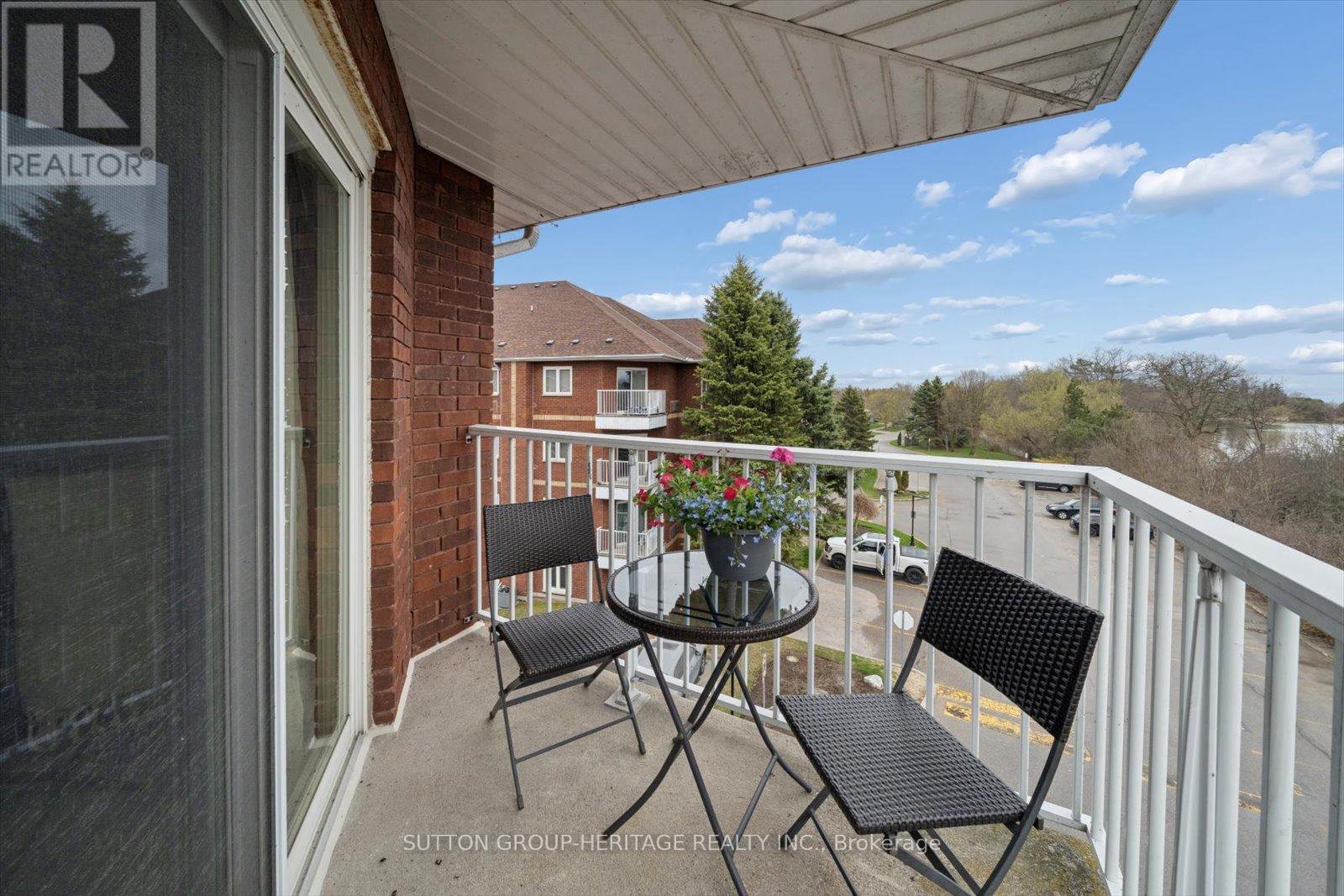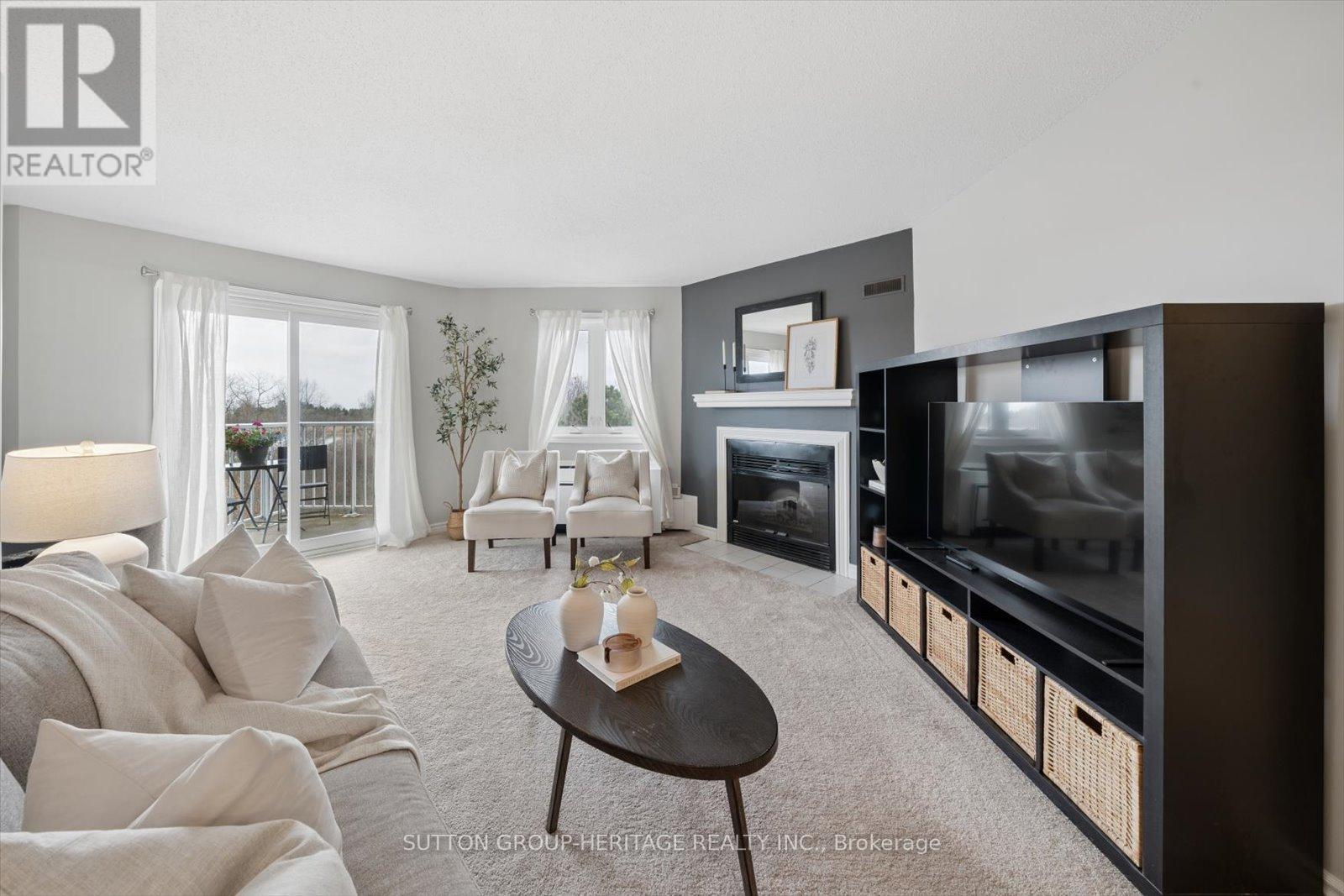 Welcome to Lakeside Condo Living! This spacious 1,099 sq ft "penthouse" corner suite sits on the top floor of the beautifully maintained East Hamptons complex with preferred southwest exposure and picturesque views of Duffins Creek, Discovery Bay, and Lake Ontario. A rare find, this suite offers 3 generous bedrooms, 2 full 4-piece bathrooms, 2 parking spaces (1 underground & 1 surface - surface Parking space only 2 spots away from main entry), and a storage unit on the ground floor. The sun-filled, open-concept living and dining area is perfect for entertaining, complete with a built-in electric fireplace with custom mantel and walkout access to a private balcony. Living area Heating/Air Conditioning unit updated 2021. Bright kitchen with plenty of counter and cabinet space, task lighting, updated backsplash & porcelain flooring. Convenient in-suite laundry adds accessibility and extra storage. Primary Ensuite updated 2021 with Porcelain floors, Tub Surround & Faucet fixtures. Relax and take in serene lakeside views from your corner balcony. This home offers the perfect balance of lifestyle, comfort and convenience! *** East Hamptons Complex Amenities include: Indoor Pool, Tennis & Basketball Courts, Fitness & Party Room, Sauna, Outdoor Gazebo, Picnic & BBQ area, Playgrounds, Visitor Parking and more!*** Prime Location just Steps from incredible Nature Trails along the shores of Lake Ontario with Ajax Waterfront Park, Rotary Park & the Trans Canada Trail each offering countless ways to enjoy the outdoors while taking in the scenic Lakeside views. Superb location close to Hwy 401, Go Station, Schools, plenty of Shops and Restaurants and New Public Transit Bus Stop just steps from Complex Driveway. (id:4555)