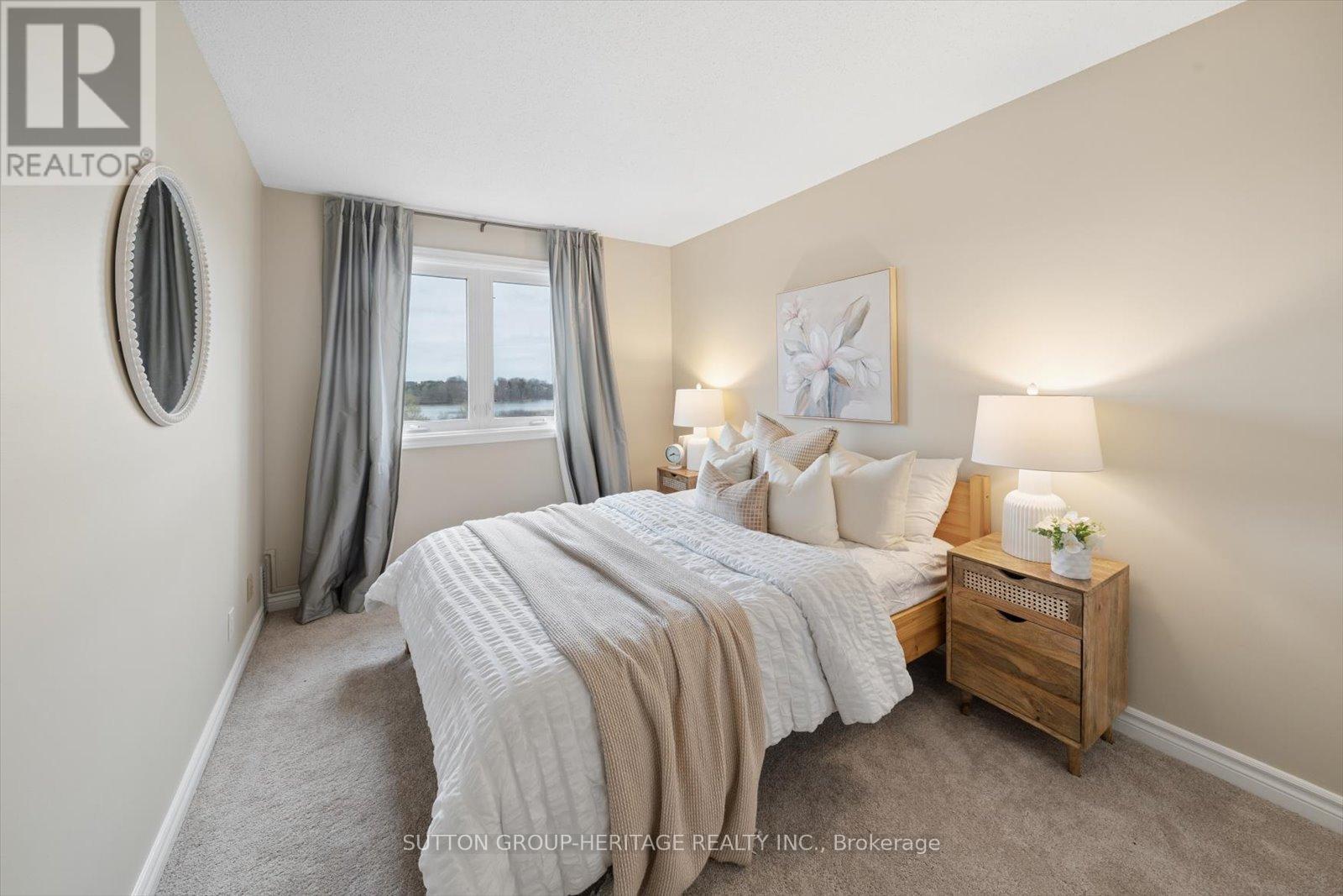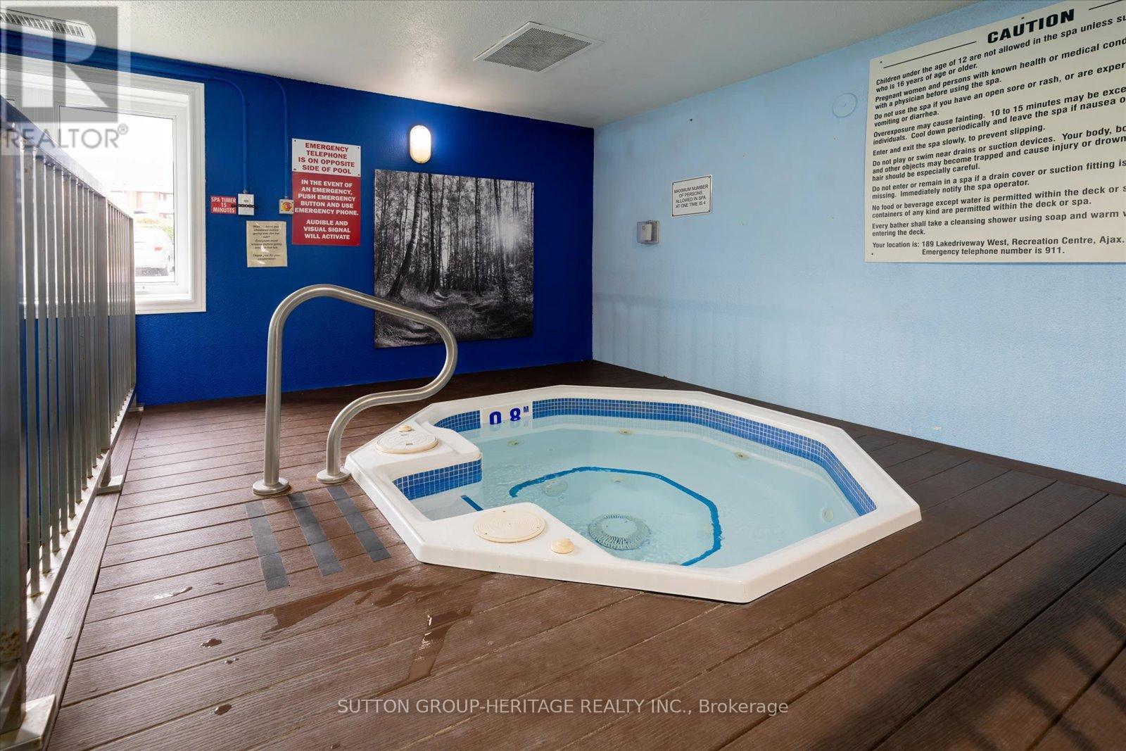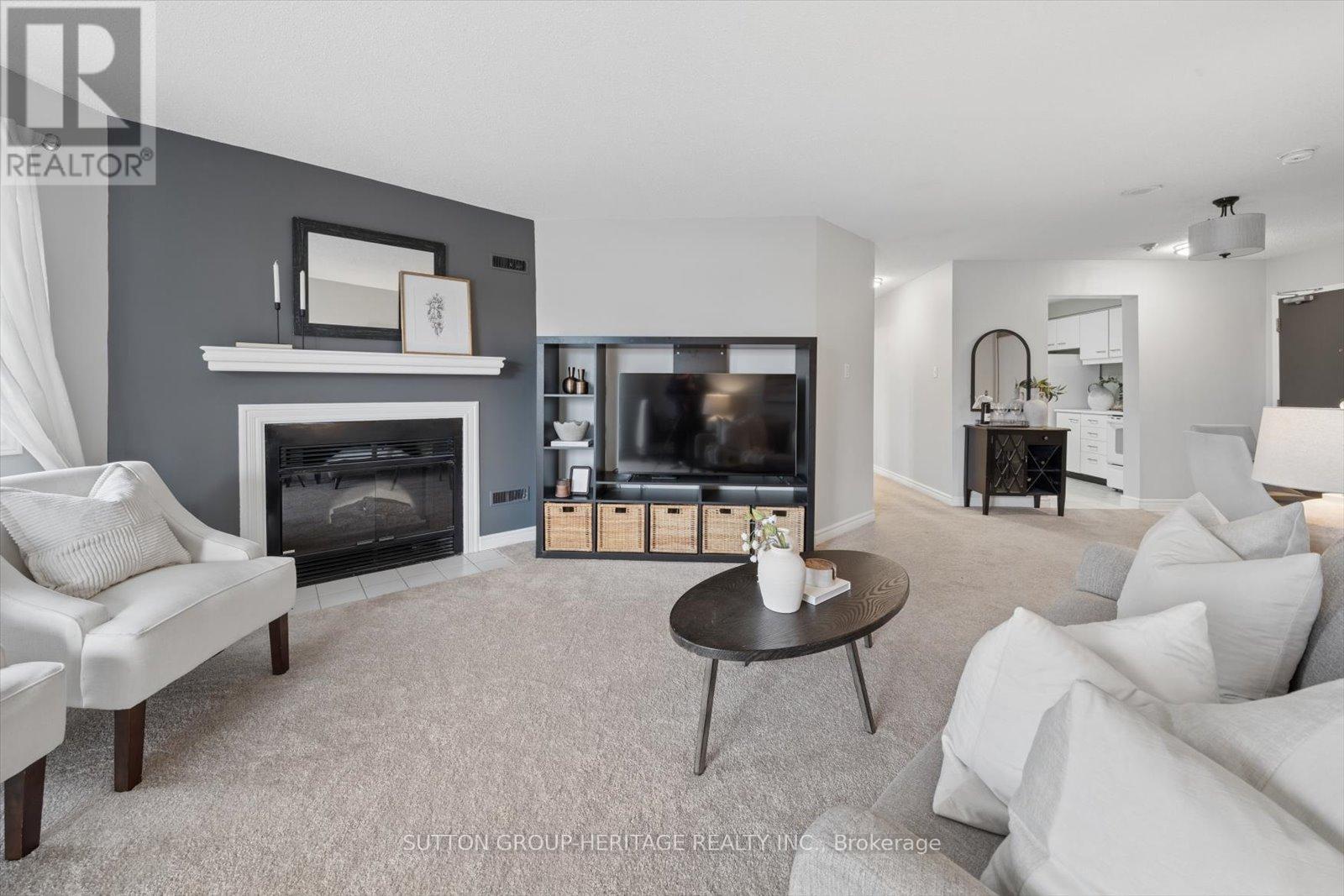Welcome to Lakeside Condo Living! This spacious 1,099 sq ft "penthouse" corner suite sits on the top floor of the beautifully maintained East Hamptons complex with preferred southwest exposure and picturesque views of Duffins Creek, Discovery Bay, and Lake Ontario. A rare find, this suite offers 3 generous bedrooms, 2 full 4-piece bathrooms, 2 parking spaces (1 underground & 1 surface - surface Parking space only 2 spots away from main entry), and a storage unit on the ground floor. The sun-filled, open-concept living and dining area is perfect for entertaining, complete with a built-in electric fireplace with custom mantel and walkout access to a private balcony. Living area Heating/Air Conditioning unit updated 2021. Bright kitchen with plenty of counter and cabinet space, task lighting, updated backsplash & porcelain flooring. Convenient in-suite laundry adds accessibility and extra storage. Primary Ensuite updated 2021 with Porcelain floors, Tub Surround & Faucet fixtures. Relax and take in serene lakeside views from your corner balcony. This home offers the perfect balance of lifestyle, comfort and convenience! *** East Hamptons Complex Amenities include: Indoor Pool, Tennis & Basketball Courts, Fitness & Party Room, Sauna, Outdoor Gazebo, Picnic & BBQ area, Playgrounds, Visitor Parking and more!*** Prime Location just Steps from incredible Nature Trails along the shores of Lake Ontario with Ajax Waterfront Park, Rotary Park & the Trans Canada Trail each offering countless ways to enjoy the outdoors while taking in the scenic Lakeside views. Superb location close to Hwy 401, Go Station, Schools, plenty of Shops and Restaurants and New Public Transit Bus Stop just steps from Complex Driveway. (id:4555)