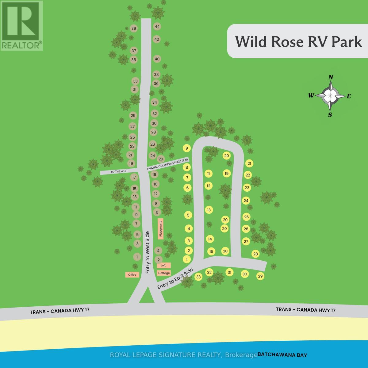 Nestled along the beautiful shores of Lake Superior, Wild Rose RV Park represents a rare opportunity to own a stable, high-yield, and turnkey hospitality business in the heart of Batchawana Bay. This well-established, family-run campground is built on a foundation of consistent cash flow and a loyal base of recurring campers. The property features 75 spacious seasonal RV sites equipped with full 30-amp hookups, water, and sewer, all strategically laid out to offer a quiet, wooded retreat for residents. The campground can be further expanded to more sites, subject to permits and allowance by authorities having jurisdiction. Complementing the seasonal sites are 2 premium short term rental units: a cozy, fully-equipped two-bedroom cottage and a Loft. Beyond its impressive infrastructure, the park's greatest asset is its scenic indirect waterfront exposure. Situated across from the lake, guests enjoy the sights and sounds of the Great Lakes without the high maintenance and taxes of direct shoreline ownership. The park serves as a premier point for outdoor enthusiasts, offering access to an expansive network of ATV and hiking trails, while remaining stone's throw distance to local General Store, Gas Station, LCBO, a Lodge, Tesla superchargers and a Restaurant. This can also be viewed as the perfect retirement plan for a couple looking to live on the property and run the business from May to Oct every year and taking time off in the winters. The perfect work life balance exists and you will find it here. (id:4555)