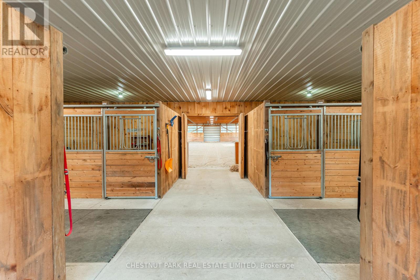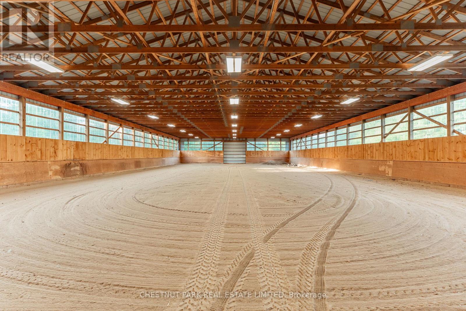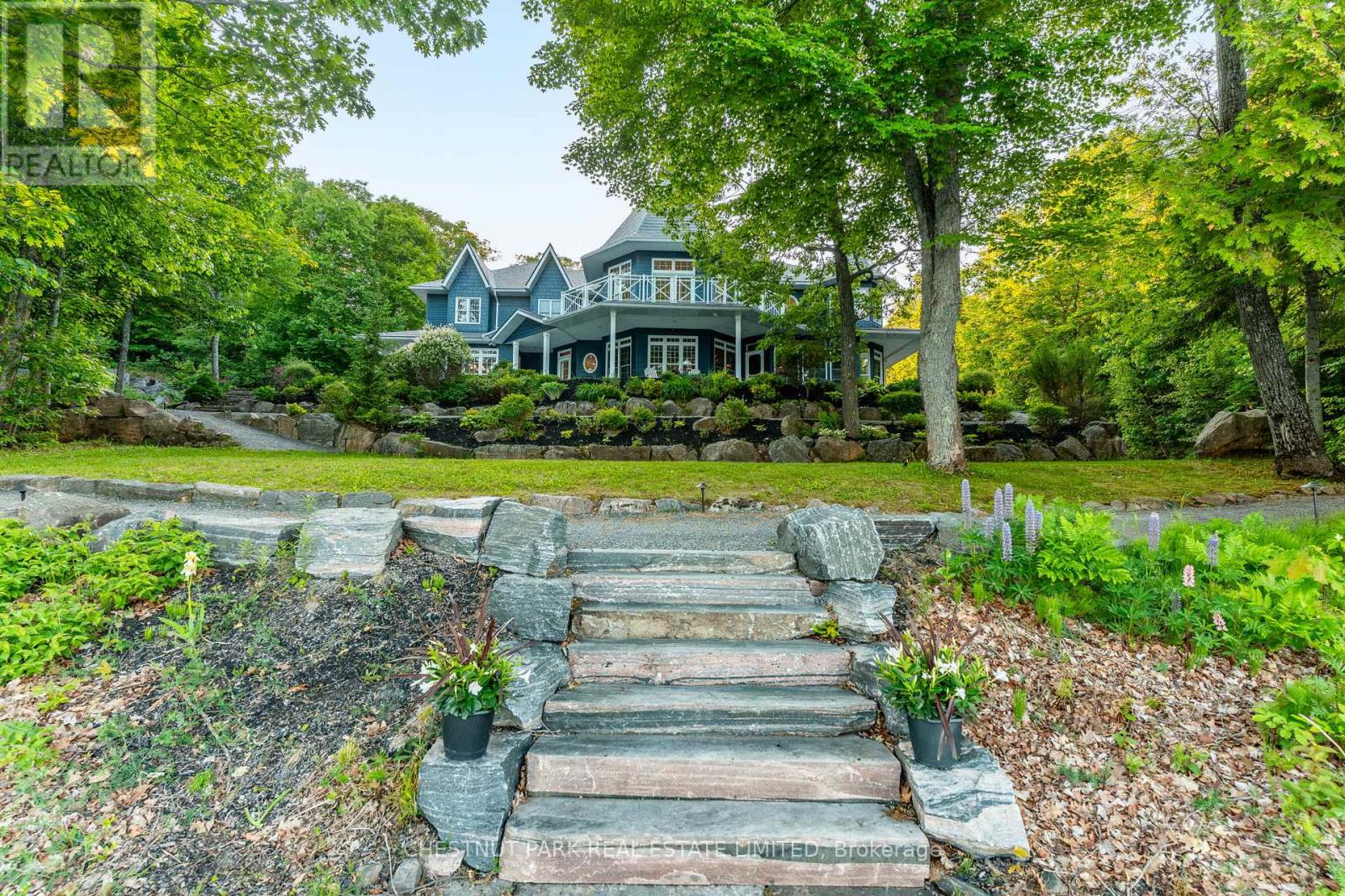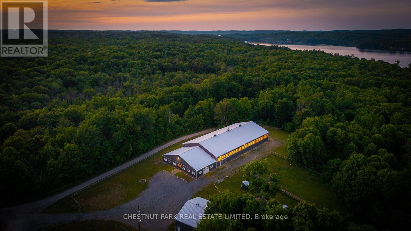 A rare offering where luxury waterfront living and premier equestrian infrastructure converge on prestigious Boshkung Lake. Encompassing over 100 acres and 440 ft of pristine shoreline, this private estate delivers an exceptional four-season lifestyle in the heart of the Haliburton Highlands. The custom-built residence offers over 7,000 sq ft of finished living space, designed for elevated entertaining and relaxed lakeside living. The primary suite is a true retreat, featuring a fireplace, spa-inspired ensuite with soaker tub overlooking the lake, expansive walk-in closet, and private lakeside deck. The gourmet kitchen is a showpiece with premium appliances, custom cabinetry, generous prep surfaces, and a sunlit breakfast area, supported by a butler's pantry. Principal living and dining spaces are anchored by fireplaces and sweeping lake views, with seamless walkouts to maintenance-free decking. Additional features include a media and games room with wet bar, home gym, and flexible spaces for family and guests. For the equestrian buyer, this property is exceptionally well-appointed. A professionally designed 70 x 140 indoor riding arena, multi-stall barn, and multiple paddocks provide turnkey infrastructure for year-round riding, training, and care. Private groomed trails wind throughout the acreage, offering an outstanding setting for riding and recreation.The grounds evoke a private resort, with curated outdoor spaces for entertaining and relaxation, all positioned to capture the serenity of the lake. A 4-car garage completes this exceptional offering. A rare opportunity to own a luxury waterfront estate with true equestrian capability in one of Ontario's most desirable cottage country settings. (id:4555)
