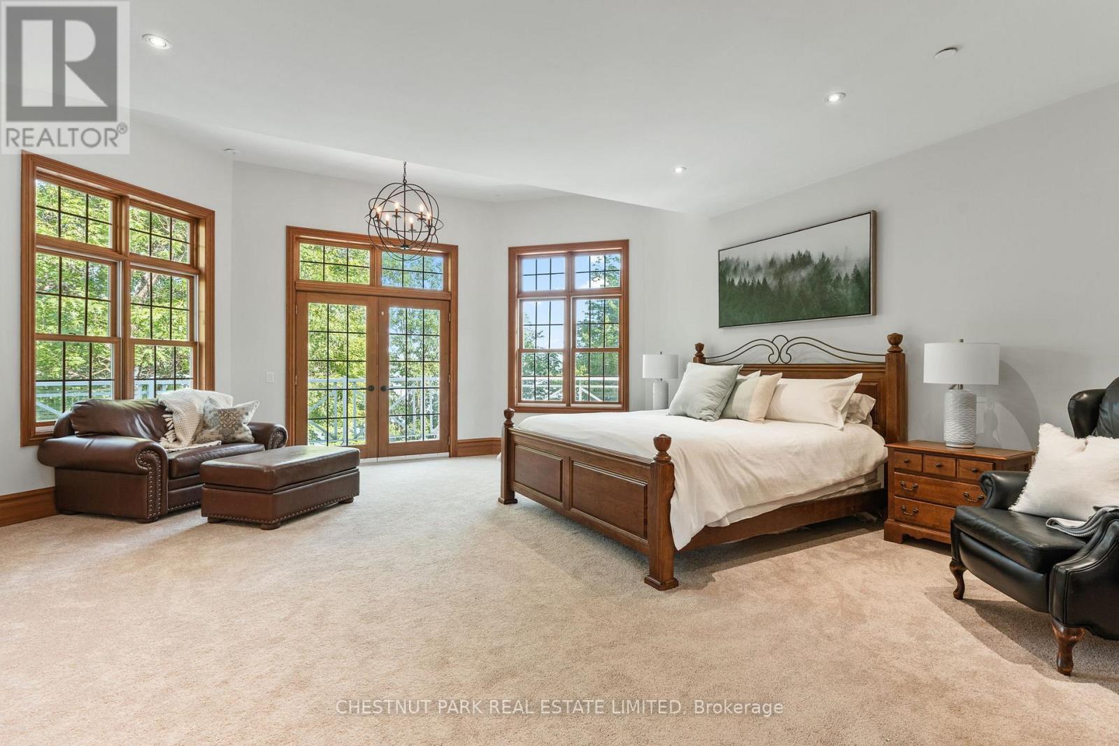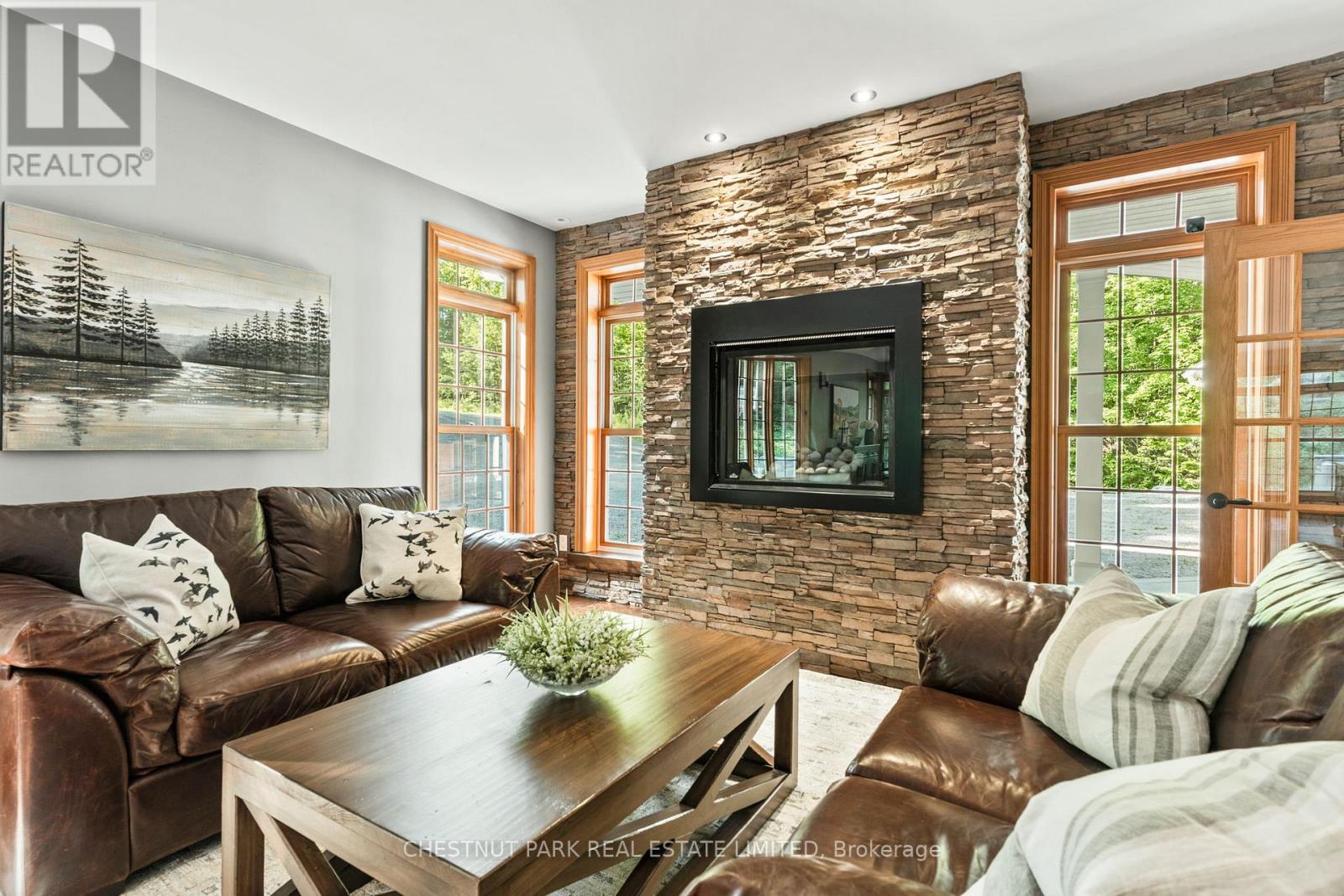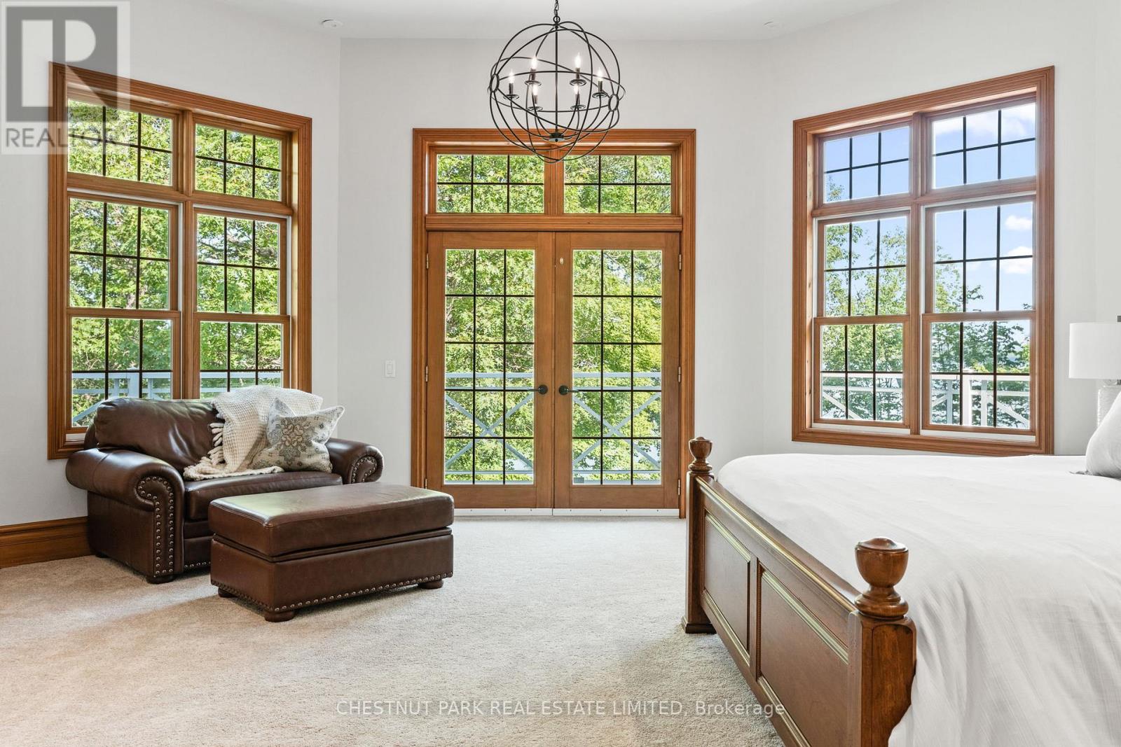 A rare offering where luxury waterfront living and premier equestrian infrastructure converge on prestigious Boshkung Lake. Encompassing over 100 acres and 440 ft of pristine shoreline, this private estate delivers an exceptional four-season lifestyle in the heart of the Haliburton Highlands. The custom-built residence offers over 7,000 sq ft of finished living space, designed for elevated entertaining and relaxed lakeside living. The primary suite is a true retreat, featuring a fireplace, spa-inspired ensuite with soaker tub overlooking the lake, expansive walk-in closet, and private lakeside deck. The gourmet kitchen is a showpiece with premium appliances, custom cabinetry, generous prep surfaces, and a sunlit breakfast area, supported by a butler's pantry. Principal living and dining spaces are anchored by fireplaces and sweeping lake views, with seamless walkouts to maintenance-free decking. Additional features include a media and games room with wet bar, home gym, and flexible spaces for family and guests. For the equestrian buyer, this property is exceptionally well-appointed. A professionally designed 70 x 140 indoor riding arena, multi-stall barn, and multiple paddocks provide turnkey infrastructure for year-round riding, training, and care. Private groomed trails wind throughout the acreage, offering an outstanding setting for riding and recreation.The grounds evoke a private resort, with curated outdoor spaces for entertaining and relaxation, all positioned to capture the serenity of the lake. A 4-car garage completes this exceptional offering. A rare opportunity to own a luxury waterfront estate with true equestrian capability in one of Ontario's most desirable cottage country settings. (id:4555)