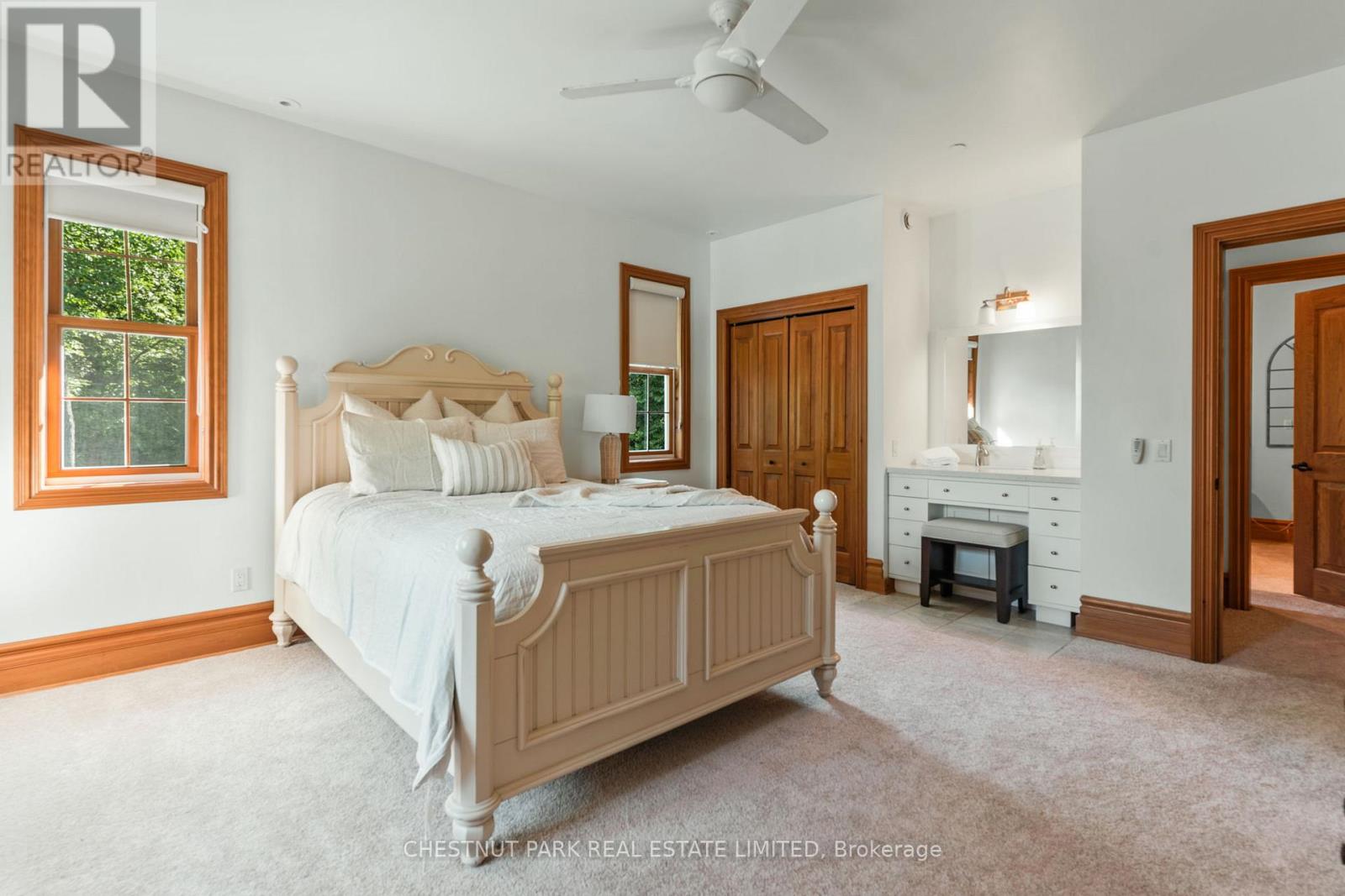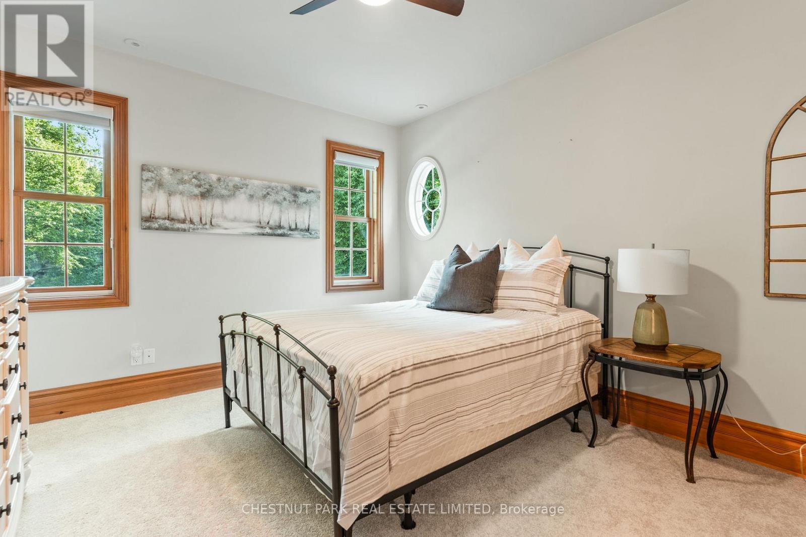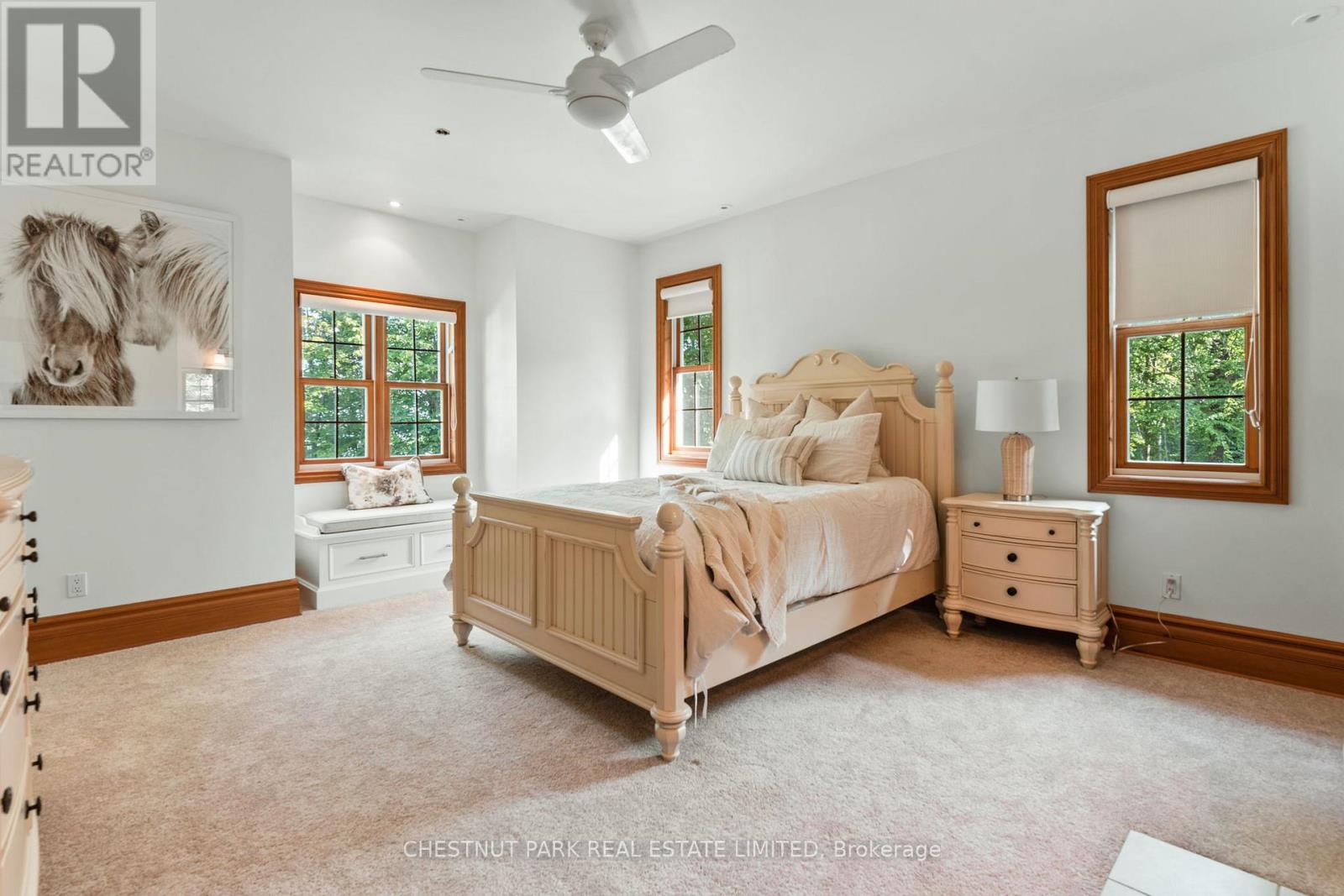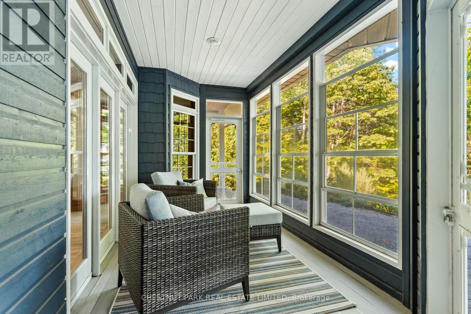 A rare offering where luxury waterfront living and premier equestrian infrastructure converge on prestigious Boshkung Lake. Encompassing over 100 acres and 440 ft of pristine shoreline, this private estate delivers an exceptional four-season lifestyle in the heart of the Haliburton Highlands. The custom-built residence offers over 7,000 sq ft of finished living space, designed for elevated entertaining and relaxed lakeside living. The primary suite is a true retreat, featuring a fireplace, spa-inspired ensuite with soaker tub overlooking the lake, expansive walk-in closet, and private lakeside deck. The gourmet kitchen is a showpiece with premium appliances, custom cabinetry, generous prep surfaces, and a sunlit breakfast area, supported by a butler's pantry. Principal living and dining spaces are anchored by fireplaces and sweeping lake views, with seamless walkouts to maintenance-free decking. Additional features include a media and games room with wet bar, home gym, and flexible spaces for family and guests. For the equestrian buyer, this property is exceptionally well-appointed. A professionally designed 70 x 140 indoor riding arena, multi-stall barn, and multiple paddocks provide turnkey infrastructure for year-round riding, training, and care. Private groomed trails wind throughout the acreage, offering an outstanding setting for riding and recreation.The grounds evoke a private resort, with curated outdoor spaces for entertaining and relaxation, all positioned to capture the serenity of the lake. A 4-car garage completes this exceptional offering. A rare opportunity to own a luxury waterfront estate with true equestrian capability in one of Ontario's most desirable cottage country settings. (id:4555)