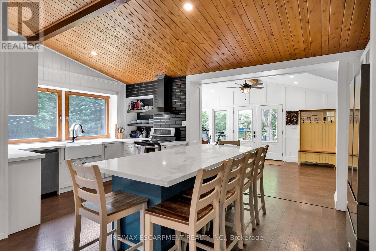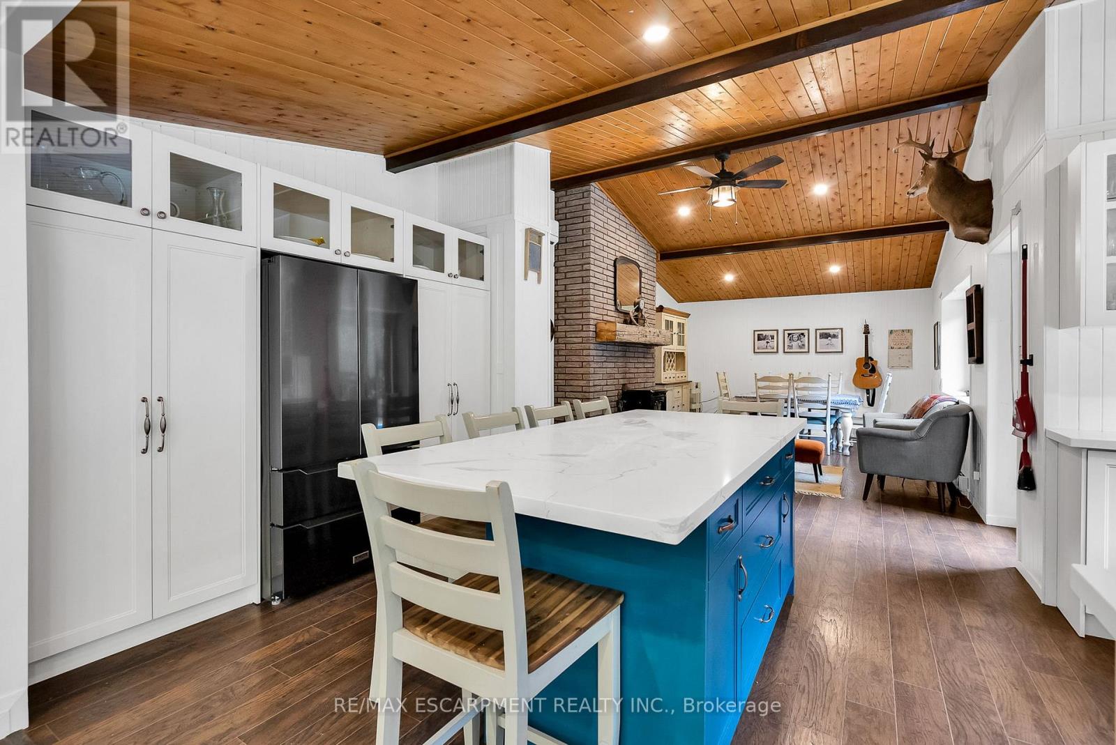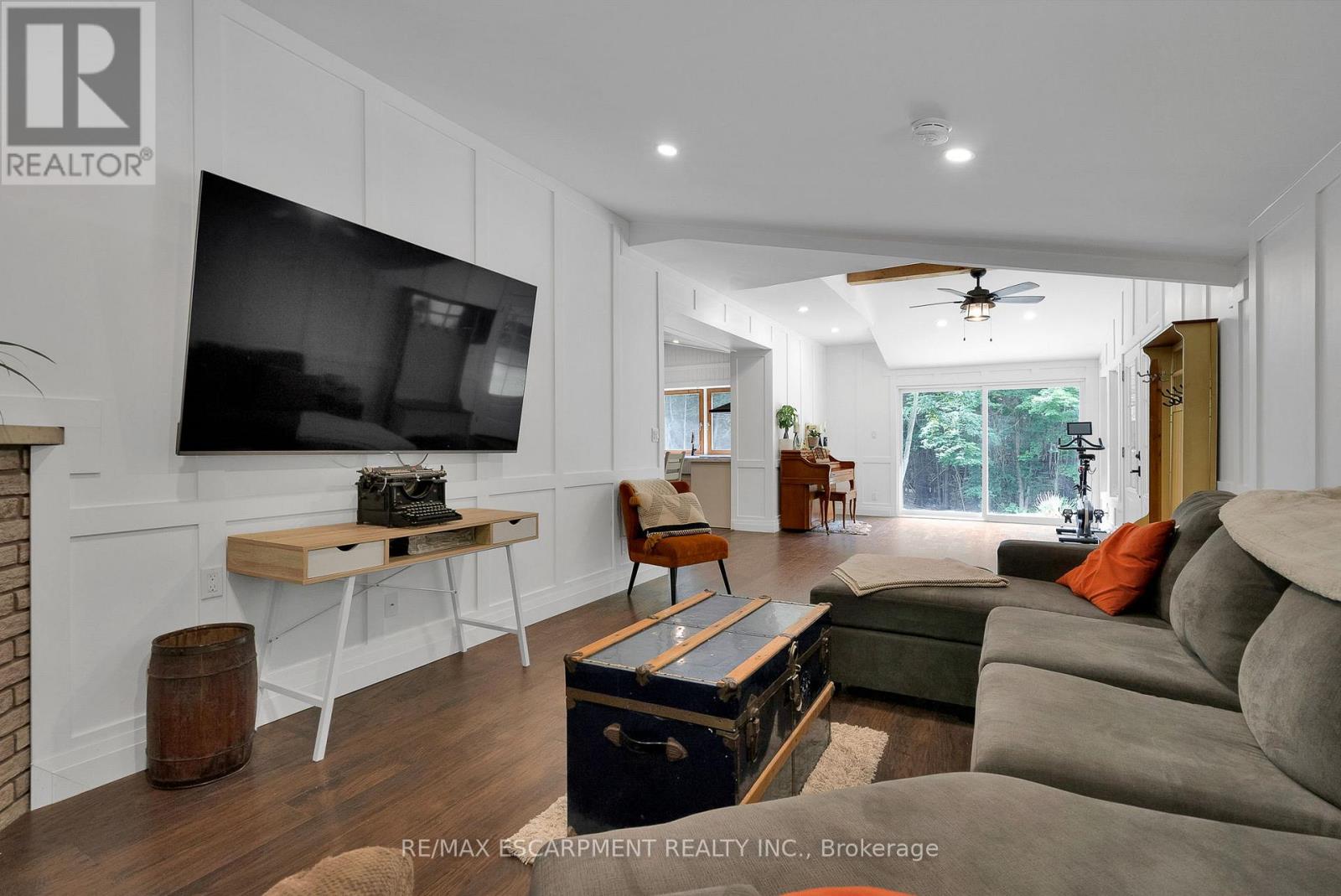 Welcome to 155 Hofer Road your private retreat on 18+ acres of rolling countryside. Renovated and thoughtfully designed, this family home offers the perfect balance of rustic charm and modern comfort. Step inside to a bright and inviting family room where soaring vaulted ceilings, exposed beams, and a wood-burning fireplace create a warm and welcoming atmosphere. Huge windows and a walkout to the deck fill this space with natural light, while pot lighting adds a touch of modern style. The open-concept kitchen and dining area is the true heart of the home, featuring quartz countertops, a farmers sink, a central island, and plenty of storage and prep space ideal for both everyday living and entertaining. On the main level, you'll find two generous bedrooms, including a stunning primary bedroom with a luxurious 5-piece ensuite. A second bedroom and a beautifully updated 4-piece bath ensure comfort and convenience for family or guests. The fully finished lower level provides even more living space with three additional bedrooms, a 3-piece bath, a laundry room, and a large rec room with its own walkout. Perfect for a growing family or hosting overnight guests. Outdoors, every season brings new adventures. In summer, relax in the pool or hot tub, explore the river running through the property, or entertain family and friends on over 1,200 sq. ft. of deck space. Evenings are made for gathering around the firepit under the stars. In winter, lace up your skates and enjoy your own private pond just steps away. Stay connected with Starlink, enjoy the convenience of school bus route access, and appreciate being just 10 minutes to town with easy 401 access. This isn't just a home its a place where every season brings new memories, new adventures, and a way of life you've been waiting for. The only thing missing is you. Its Time to Make YOUR Move! (id:4555)