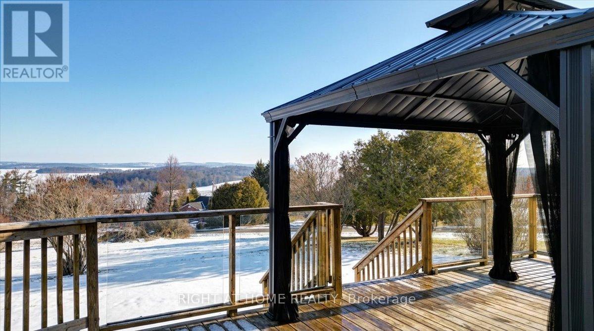 Located on a thoughtfully positioned 1-acre lot with unobstructed lake views, this well cared for 2-bedroom, 2-bath home offers breathtaking views of Rice Lake and the rare benefit of deeded waterfront ownership. The fully owned shoreline measures roughly 12 x 110 ft & includes private docking with direct access to the Trent-Severn Waterway, ideal for adventure, boating, fishing, and enjoying lakeside living. Designed for gatherings, the spacious kitchen includes stainless steel appliances and ample counter space, while the large adjoining dining room features a walkout, creating seamless indoor-outdoor entertaining. The living room offers a cozy wood-burning fireplace and a huge sliding glass door that opens to the deck, filling the space with natural light and lake views. The primary bedroom offers a 2-piece ensuite and a walkout to the upper deck-perfect for morning coffee overlooking the lake. A second well-sized bedroom completes the main level. The walkout lower level features a generous recreation room with direct access to the expansive yard. The landscaped grounds feature tranquil koi ponds and vibrant perennial gardens, making the property especially appealing to nature lovers and gardening enthusiasts. A major highlight is the oversized detached garage offering nearly 1,000 sq ft, measuring 32 x 32 feet and is fully heated and powered-ideal for the mechanic with project vehicles, the hobbyist who needs a workshop, or recreational toy storage for those who love to ATV, boat and snowmobile. Additional features include 200-amp electrical service, a heat pump (installed 2018) providing efficient heating and air conditioning, and a forced-air propane furnace. Updates include a metal roof with a 40-year warranty (installed approximately 15 years ago), new furnace (2023) and a hydro meter ready for a backup generator. Year round enjoyment or a seasonal escape, this Rice Lake property delivers! Come see it for yourself and fall in love! (id:4555)