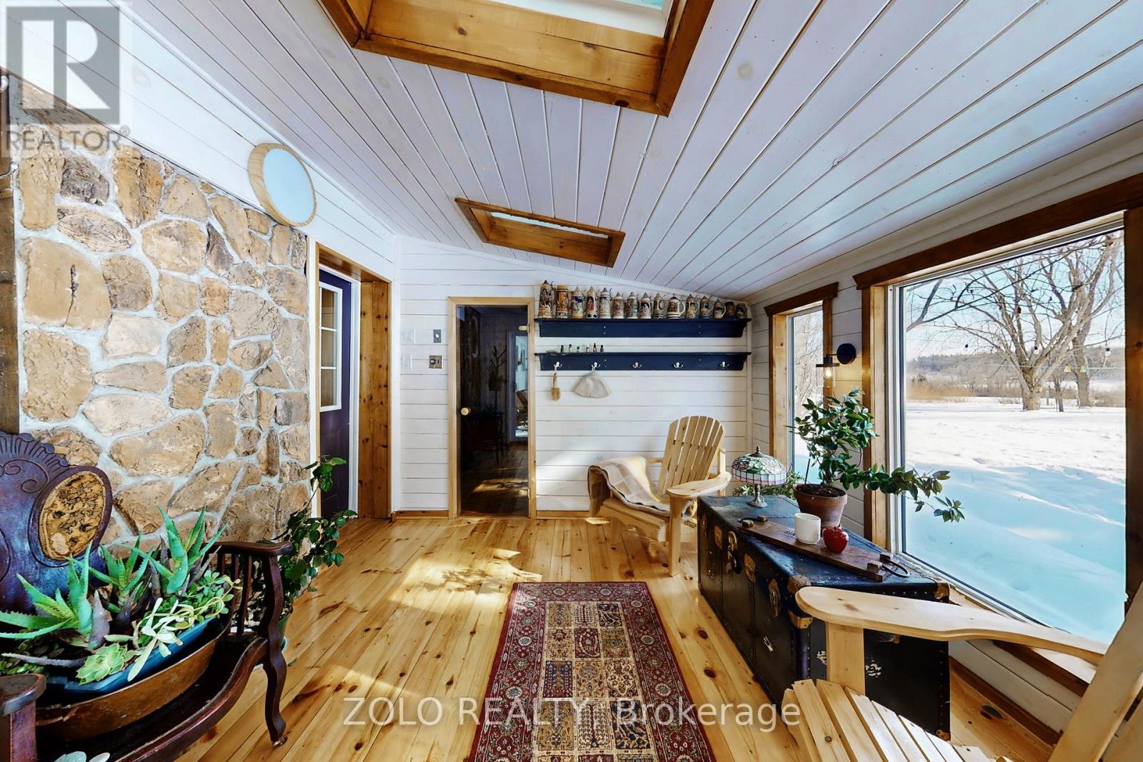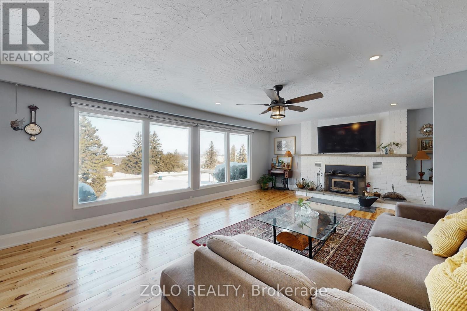 Enjoy pastoral living in an extensively renovated and upgraded home plus run the business, set in the Rice Lake community (SEE ATTACHED floor plan, upgrades list, business potential ). See Virtual Tour for 3D walkthrough and read the description: .....MAIN LEVEL....: Three bedrooms and a full bathroom, anchored by an impressive living room featuring a wood-burning fireplace and expansive panoramic windows with stunning views of Rice Lake and the surrounding landscape. Contemporary eat-in kitchen with direct walk-out to the deck, offering scenic views of forests and rolling hills. Front deck with lake views.....LOWER LEVEL....: Finished at-grade lower level with a separate exterior entrance to the terrace and backyard, providing excellent flexibility for extended family or work-from-home use. Includes a kitchen, laundry area, recreation room with fireplace, bedroom, bathroom, relaxation room, sauna, and direct access to a thermo-insulated garage/workshop.....OUTDOOR.....: Set on approximately 1 acre of lush green space with picturesque pastoral views. High-speed Bell fibre optic internet available (not currently connected) Spacious backyard surrounded by mature trees, ideal for outdoor enjoyment, featuring a terrace, BBQ area, in-ground fire pit, storage building, tool shed, and firewood storage. Ample parking at the front on a newly paved asphalt driveway. ......LAKE ACCESS.....: Enjoy Rice Lake with approximately 12 ft of waterfront access and a newer dock structure, ideal for boating, fishing, and seasonal lake activities (buyer to verify all uses, licensing, and permits) (id:4555)