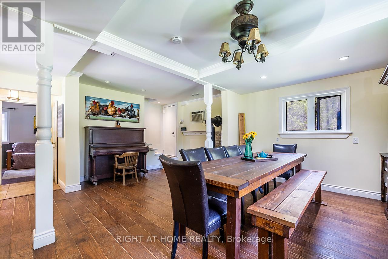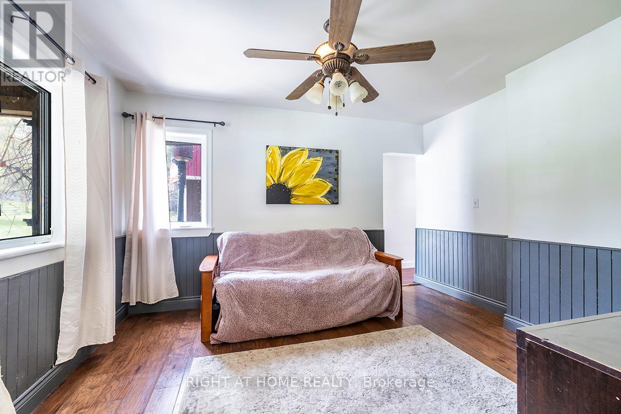 Remarkable 21.25 acre property offers a rare combination of land, versatility, and self-sufficient living. The home provides a larger living area than currently reflected by MPAC. Perfect for homesteading, farmsteading, or a self-reliant lifestyle, this property is thoughtfully designed for those seeking space, independence, and long term potential. include two cabins, a trailer with hydro and deck, two vegetable gardens, including one with a greenhouse, established berry bushes, and mature fruit trees. Outdoor living with an above-ground pool, fire pit, and playground area, creating inviting spaces for relaxation and connection. The home features a flexible layout with two kitchens and separate entrances, making it well-suited for extended family or multi-generational living. The main floor can be reconfigured to accommodate a living room, family room, home office, studio, or private retreat. A spacious and versatile great room with its own separate entrance offers endless possibilities. Accessible through the hall from the deck. This space features existing plumbing and sits beside a 2-piece bath with potential to expand to a full. Ideal for a home office, or guest retreat. Wood stoves provide warmth and rustic charm throughout the home. Recent improvements include a new hot water tank, pressure tank, and well pump completed in 2022, along with a dual fuel gas and propane generator for added reliability. The barn is equipped with water, electricity, a tack room, and a paddock with livestock fencing. Additional outbuildings include three chicken coops, a large outbuilding with two garage doors, including one with a wood stove, and a covered dog kennel with runs. (id:4555)