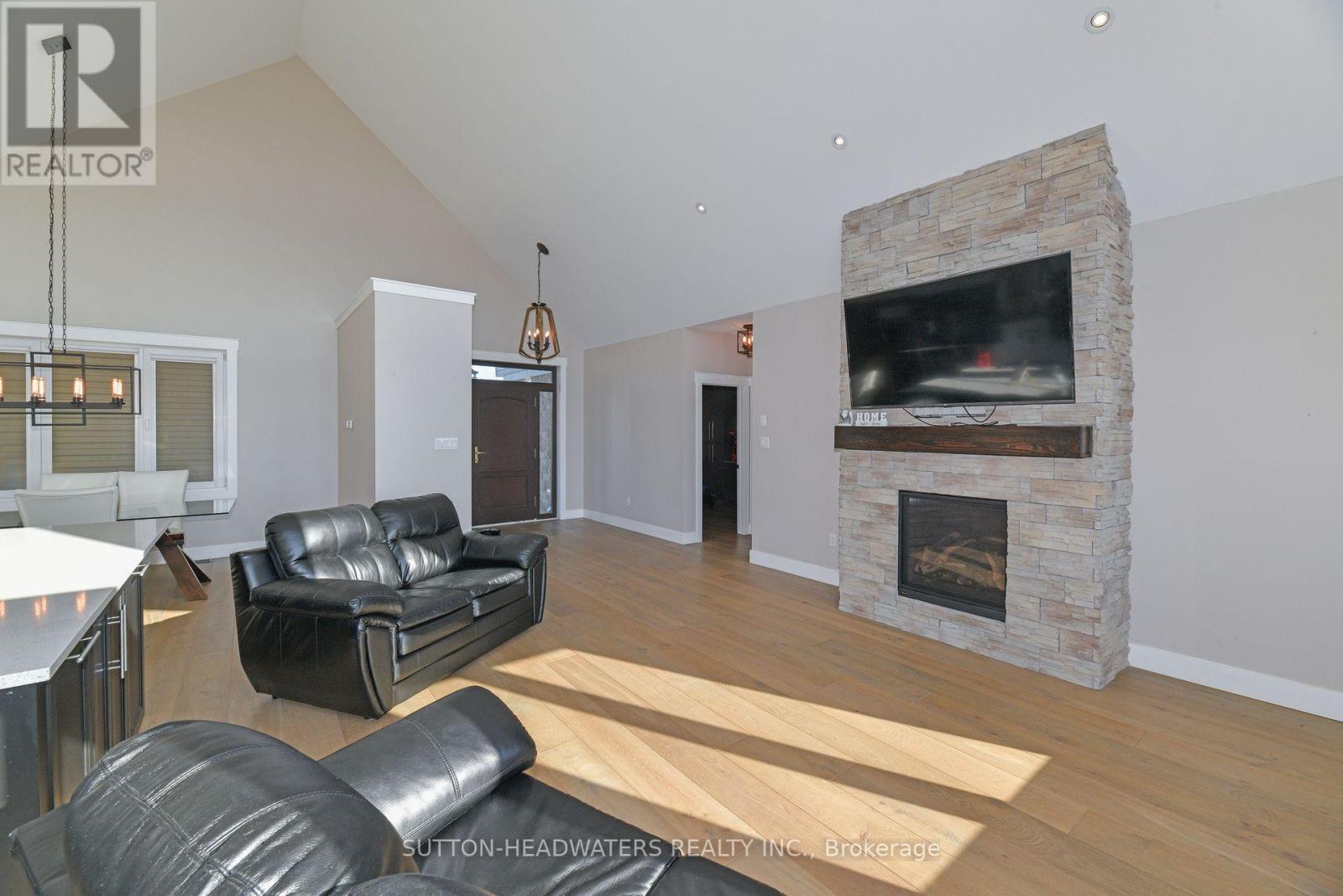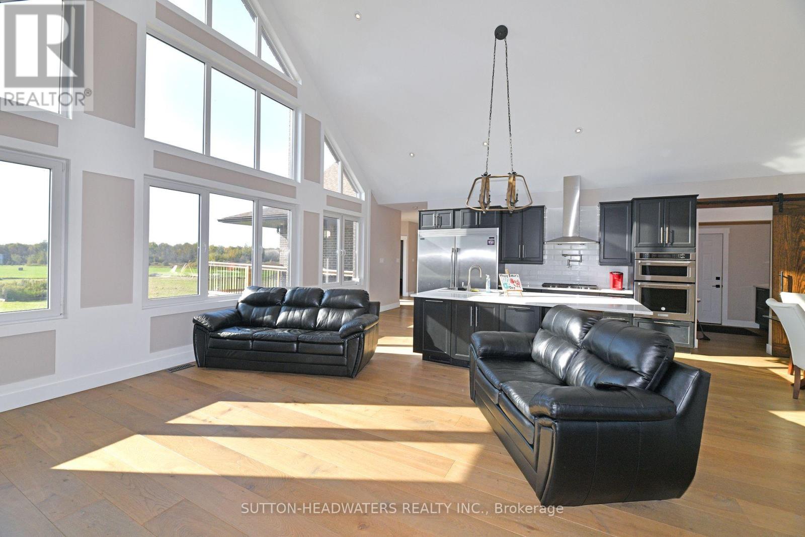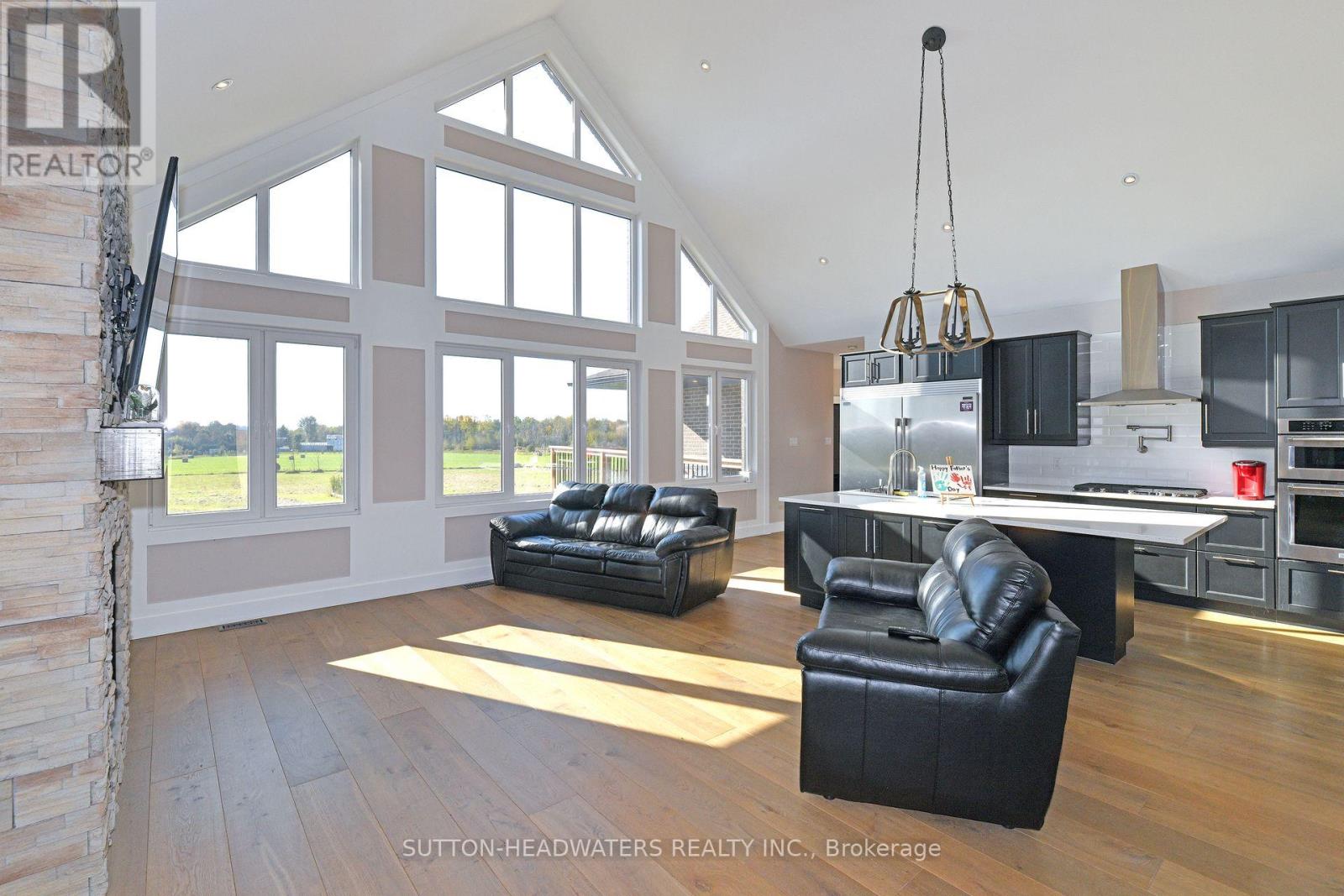 Experience Modern Elegance in the CountryDiscover carefree country living in this stunning 3+1 bedroom walk-out bungalow, set on just under 2.5 acres with sweeping views of fields and nature. The open-concept design features a chefs dream kitchen with commercial-grade appliances, a butlers pantry with second stove, and a spacious great room with vaulted ceiling, stone fireplace, and walkout to the west-facing deck. Hardwood floors flow throughout the main level, where youll find 3 generous bedrooms including a private primary suite with 5-pc ensuite. A well-planned laundry adds convenience for busy households. The massive walk-out basement offers endless possibilitiescreate an in-law suite, rental space, or dream recreation area. A perfect blend of comfort, functionality, and stylethis is country living at its finest! (id:4555)