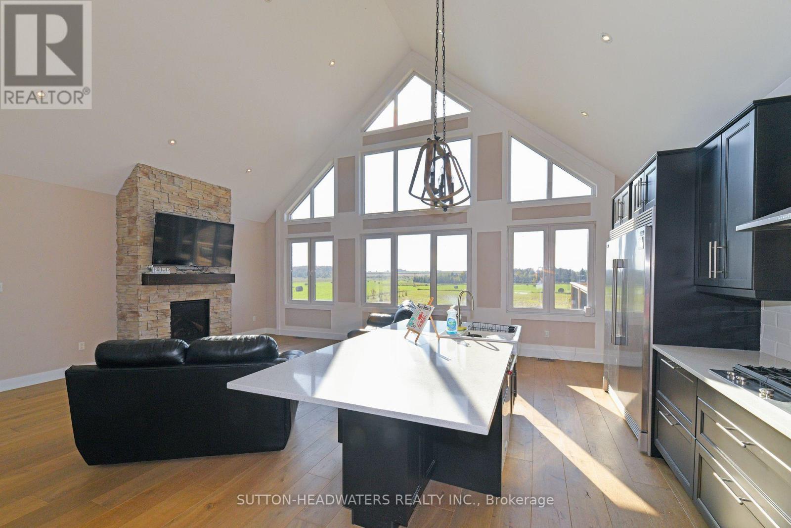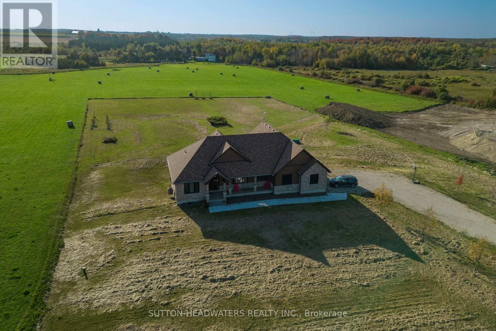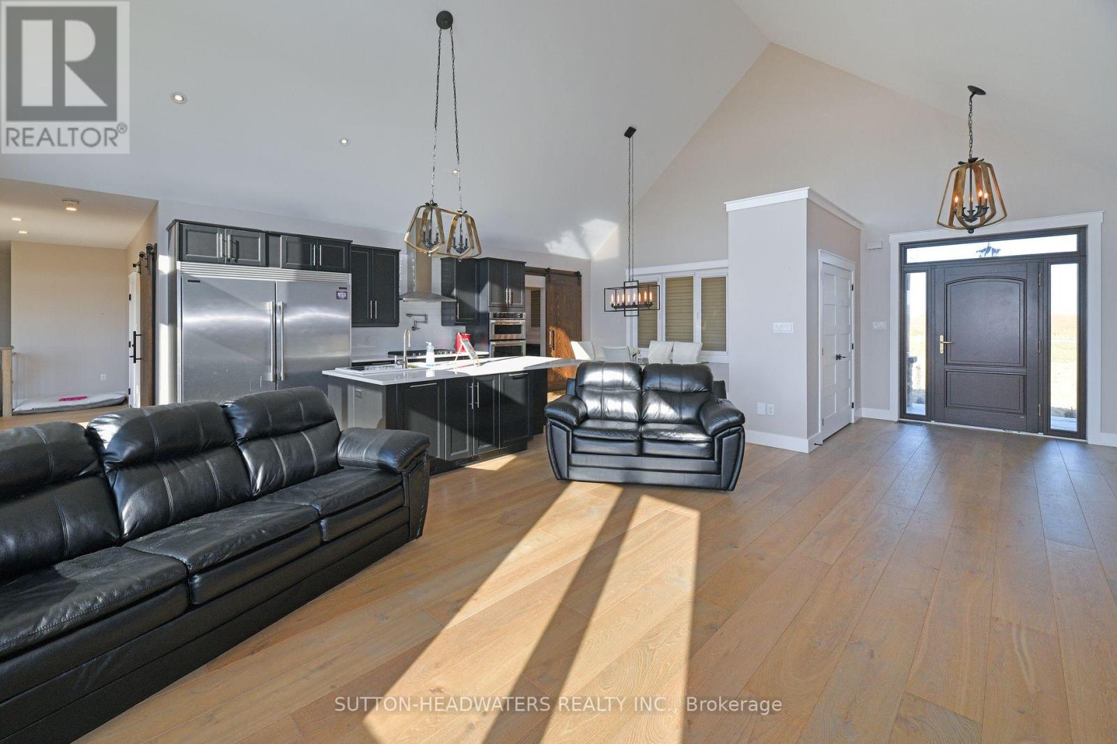 Experience Modern Elegance in the CountryDiscover carefree country living in this stunning 3+1 bedroom walk-out bungalow, set on just under 2.5 acres with sweeping views of fields and nature. The open-concept design features a chefs dream kitchen with commercial-grade appliances, a butlers pantry with second stove, and a spacious great room with vaulted ceiling, stone fireplace, and walkout to the west-facing deck. Hardwood floors flow throughout the main level, where youll find 3 generous bedrooms including a private primary suite with 5-pc ensuite. A well-planned laundry adds convenience for busy households. The massive walk-out basement offers endless possibilitiescreate an in-law suite, rental space, or dream recreation area. A perfect blend of comfort, functionality, and stylethis is country living at its finest! (id:4555)