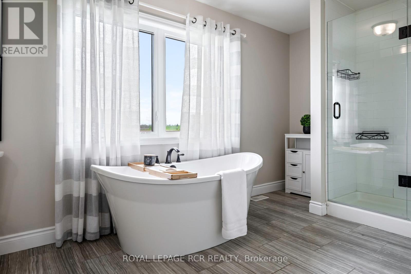 Country Charm Meets Modern Convenience on 2.5 Acres. Welcome to this beautifully maintained 3+2 bedroom bungalow, offering the perfect balance of space, functionality, and in-law/income potential. Nestled on a 2.5-acre lot, this home features a fully finished basement with a seperate entrance ideal for multi-generational living or an in-law suite.The bright, open-concept main level showcases vaulted ceilings, a stunning stone natural gas fireplace, and a custom kitchen with a center island and gas range. The spacious primary suite features a walk-in closet with built-in organizer and a luxurious 5-piece ensuite complete with soaker tub, glass shower, and double vanity. Two additional bedrooms, a formal dining room, a 4-piece bath, and a convenient laundry/mudroom with inside access to the heated and insulated 2.5-car garage complete this level.The finished lower level offers a large recreation room, two additional bedrooms, a full bath, and a second kitchen with new appliances, plus two generous storage rooms. A separate entrance from the heated garage adds privacy and flexibility - perfect for extended family or rental income opportunities.Outside, enjoy breathtaking sunrise from the front porch and sunset views from the back deck. Enjoy family nights around the firepit watching the sun go down and enjoy the yard with ample open space for outdoor hobbies, entertaining, or future projects. A paved double driveway leads to a 1,200 sq. ft. detached heated and insulated shop, with room for 4+ vehicles or a workshop.Additional features: Rural home with Natural gas heat source! Rogers Fibe internet, Generac hookup. Just minutes from town amenities - groceries, schools, and shopping - this rare property offers the peace of country living with the convenience of in-town access.Don't miss this exceptional opportunity! (id:4555)