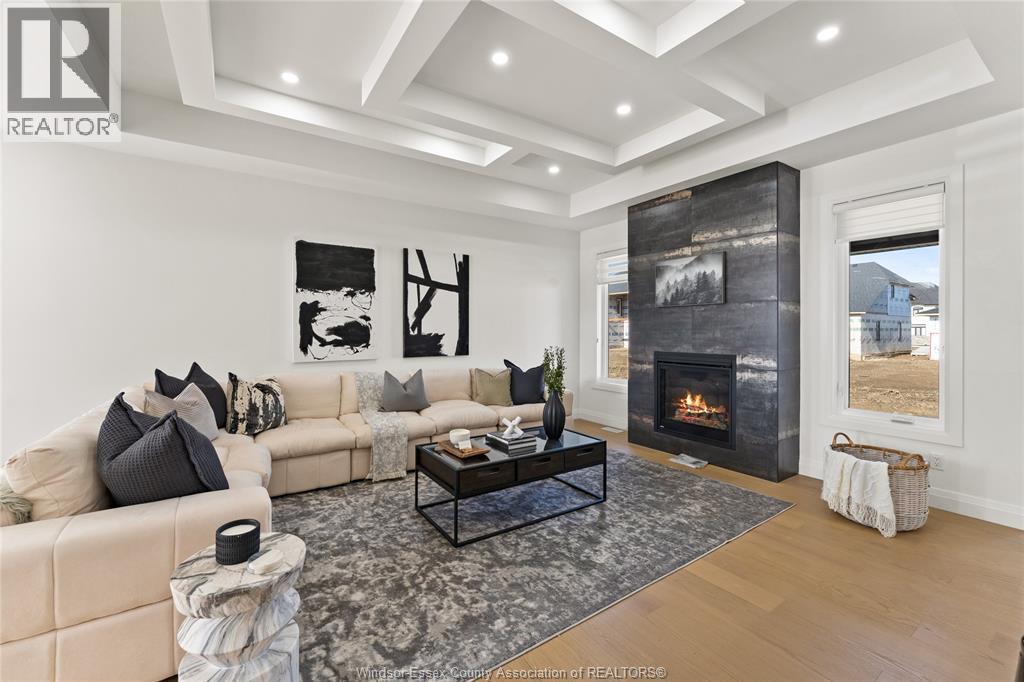 Looking for your dream home? Custom built by Dream Homes, this beautiful ranch style home features all the fine finishing and carpentry a custom home should include. 9 and 10 ft ceilings, 8 ft doors, quartz countertops, walk-in pantry, large open concept kitchen with island overlooks a beautiful great room with fireplace and patio doors to covered porch, 2 full baths and powder room, primary suite with huge walk-in closet and 5 pc. ensuite, 2 car garage, main floor laundry and full basement. The perfect plan for entertaining family and friends. Choose to live in one of Amherstburg's finest neighborhoods with walking trails, parks, marina and every amenity close by. (id:4555)