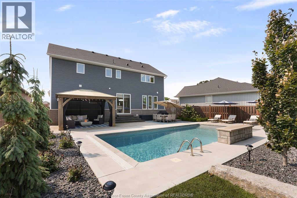 Welcome to this exceptional two-storey home in sought after area of Meadowview Estates. Built by BK Cornerstone, this home is thoughtfully designed for both elegance and everyday living. Main floor features a living room with gas fireplace, mudroom, 2 piece bath and a stunning custom kitchen with quartz countertops, ample cabinetry and a walk-in pantry. The primary suite offers a spa-like ensuite with soaker tub and tiled shower. With 5 spacious bedrooms (3 with walk-in closets), 3.5 bathrooms and a fully finished basement, there's room for the whole family. Step outside to your private backyard oasis with an inground heated saltwater pool with LED lighting, waterfall feature, Euroshed bar and playground - perfect for entertaining. Professionally landscaped with no rear neighbours for added privacy. A true must-see! (id:4555)