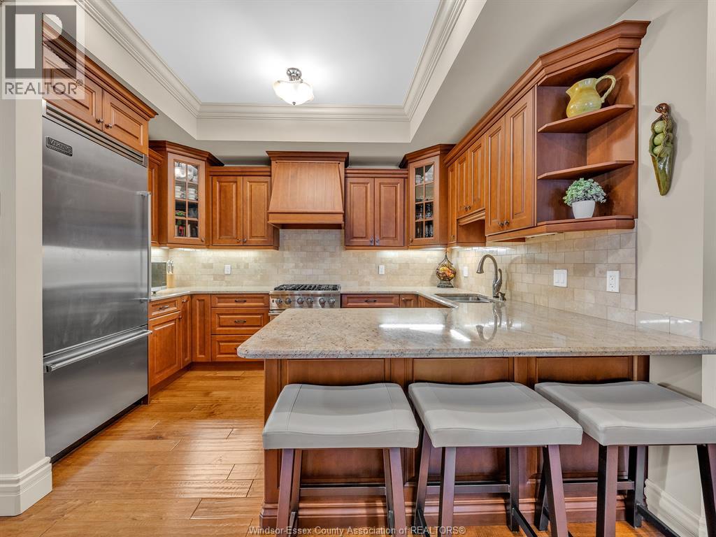 ABSOLUTELY STUNNING CONDO IN THE SOUGHT AFTER ""SALMONI PLACE 1849"" IN DOWNTOWN HISTORIC AMHERSTBURG. ONE OF THE PREMIER QUALITY CONDOMINIUM BUILDINGS IN THE WINDSOR & ESSEX COUNTY AREA. 1,460 SQ FT OF UNBELIEVABLE QUALITY OVERLOOKING THE TOWN SQUARE - YOU WILL ENJOY THE AWESOME WATER-VIEWS FROM YOUR LIVING ROOM OR VENTURE TO THE ROOF-TOP W/FAMILY & FRIENDS TO A BREATHTAKING PANORAMIC VIEW OF THE DETROIT RIVER OVERLOOKING BOB-LO ISLAND. ENJOY YOUR STATE OF THE ART KITCHEN W/VIKING APPLIANCES, CUSTOM CABINETS W/GRANITE TOPS, CABINET LIGHTING, BEAUTIFUL BACKSPLASH & BREAKFAST BAR. DINING ROOM HAS A GORGEOUS BUILT IN BUFFET CABINET W/WINE FRIDGE. LARGE MASTER W/WALK IN CLOSET W/CALIFORNIA SHELVING & ENSUITE W/AN UPDATED WALK IN SHOWER. UNDERGROUND PARKING FOR YOUR CONVENIENCE. WE DARE YOU TO FIND A BETTER CONSTRUCTED CONDO BUILDING IN THE WINDSOR AND ESSEX COUNTY AREA...CONDO LIVING AT ITS FINEST! (id:4555)