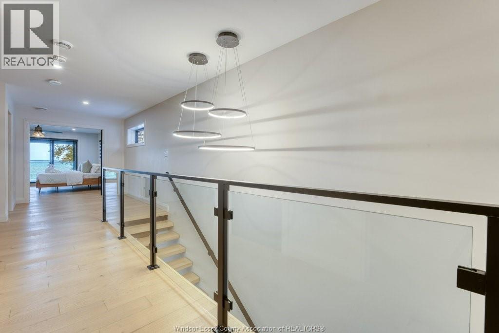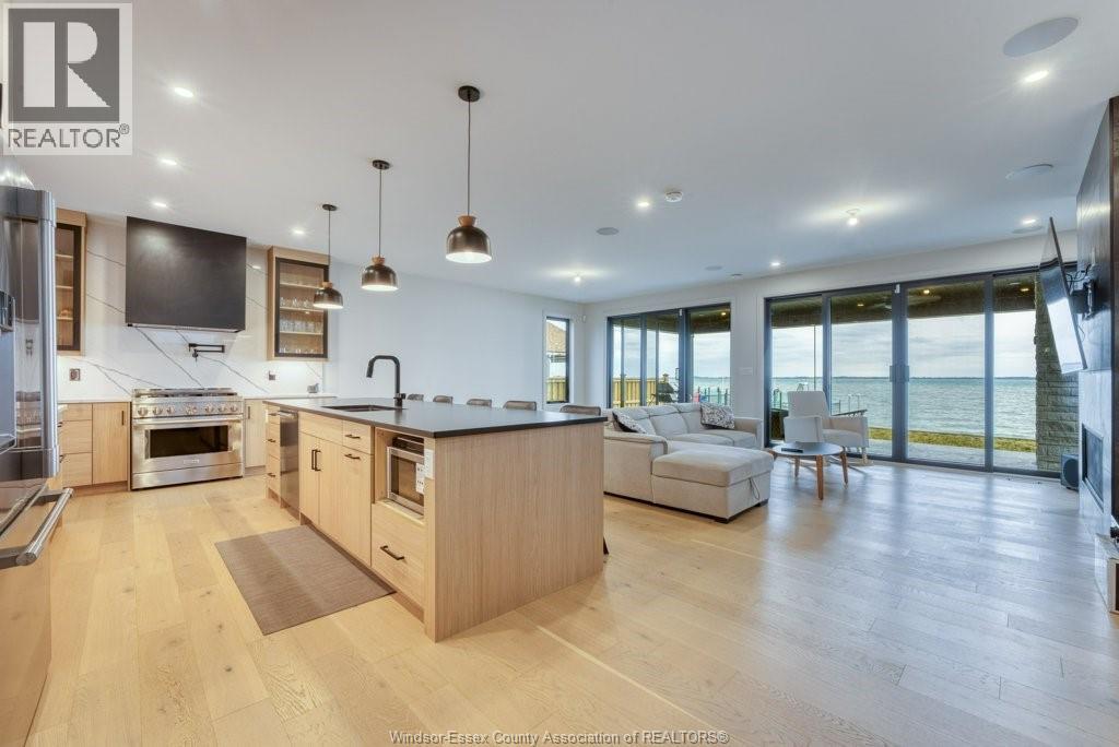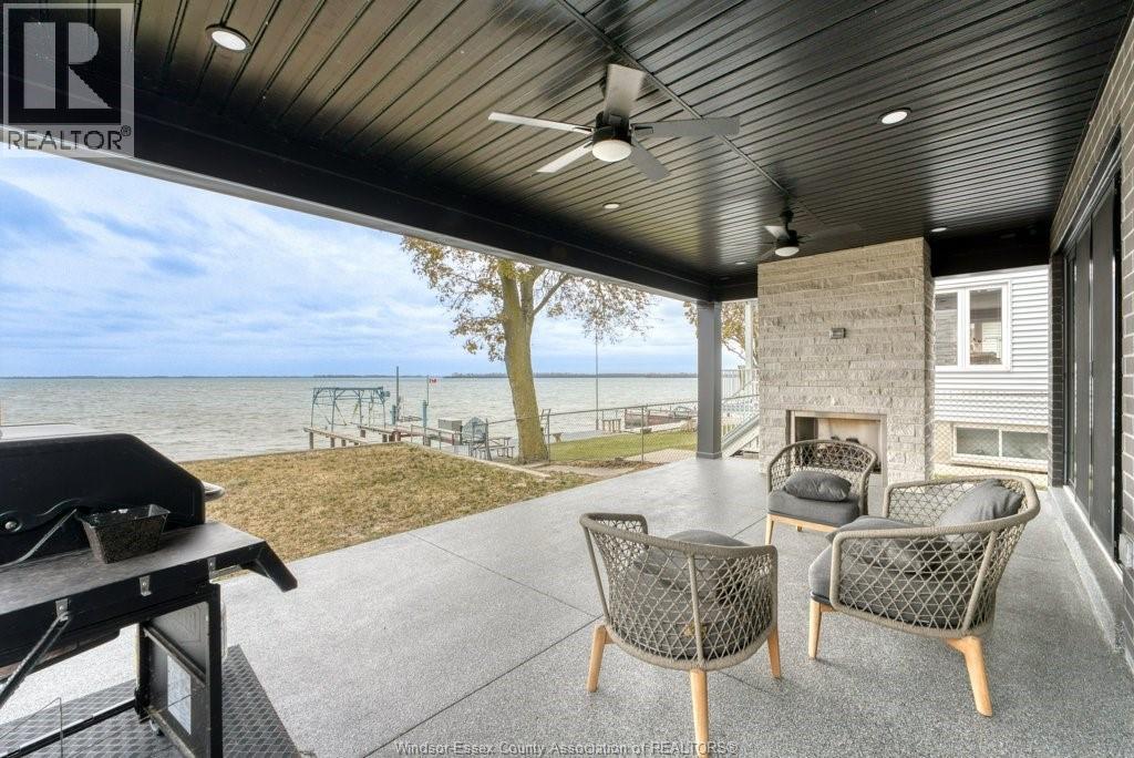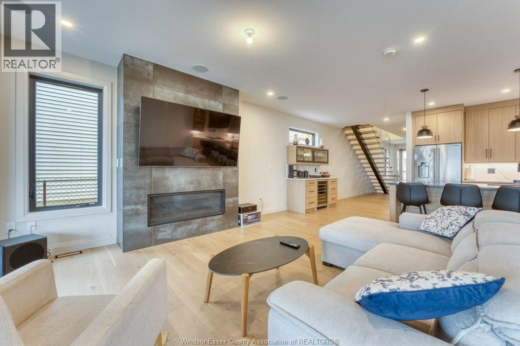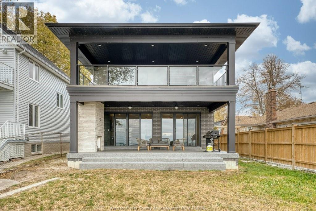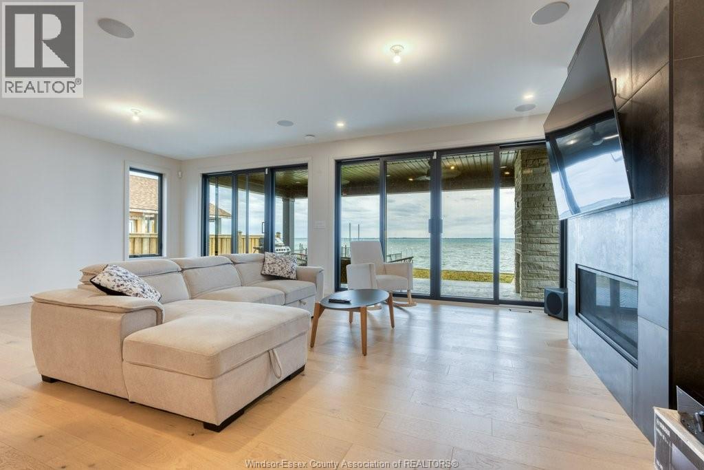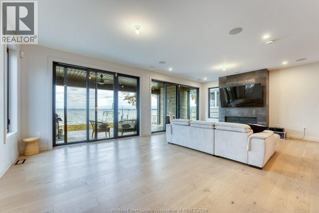Welcome to 1512 Goodview Street, a newly built 2023 luxury waterfront home in one of Amherstburg’s most desirable neighbourhoods. This modern two-storey Colson Homes build offers sleek design, high-end finishes, and stunning panoramic views of the Detroit River. The main level features an open-concept layout with a designer kitchen, quartz counters, a large island, and premium built-in appliances. The great room includes a gas fireplace and a full wall of glass doors leading to a covered patio with a stone outdoor fireplace. Upstairs, the primary suite offers a private balcony, walk-in closet, and spa-like ensuite with soaker tub, double vanity, and glass shower overlooking the water. Two additional bedrooms share a stylish 4-piece bath. Additional highlights include a residential elevator, custom mudroom, second-floor laundry, built-in office area, and steel two-tiered break wall—combining luxury living with true waterfront tranquility. (id:4555)