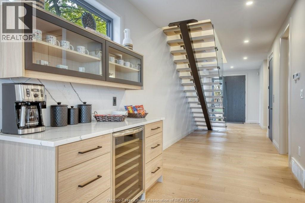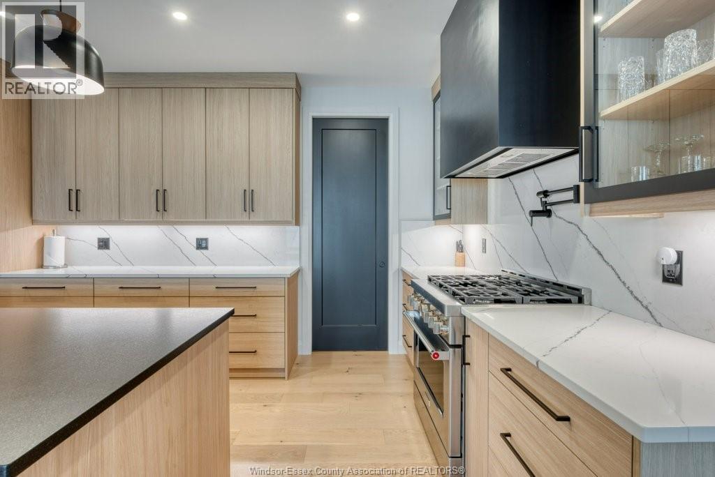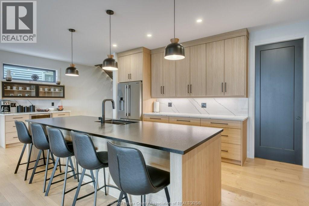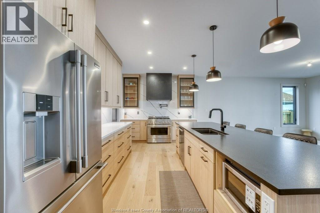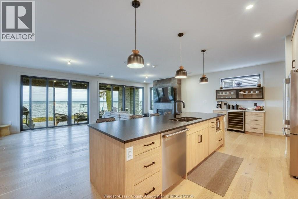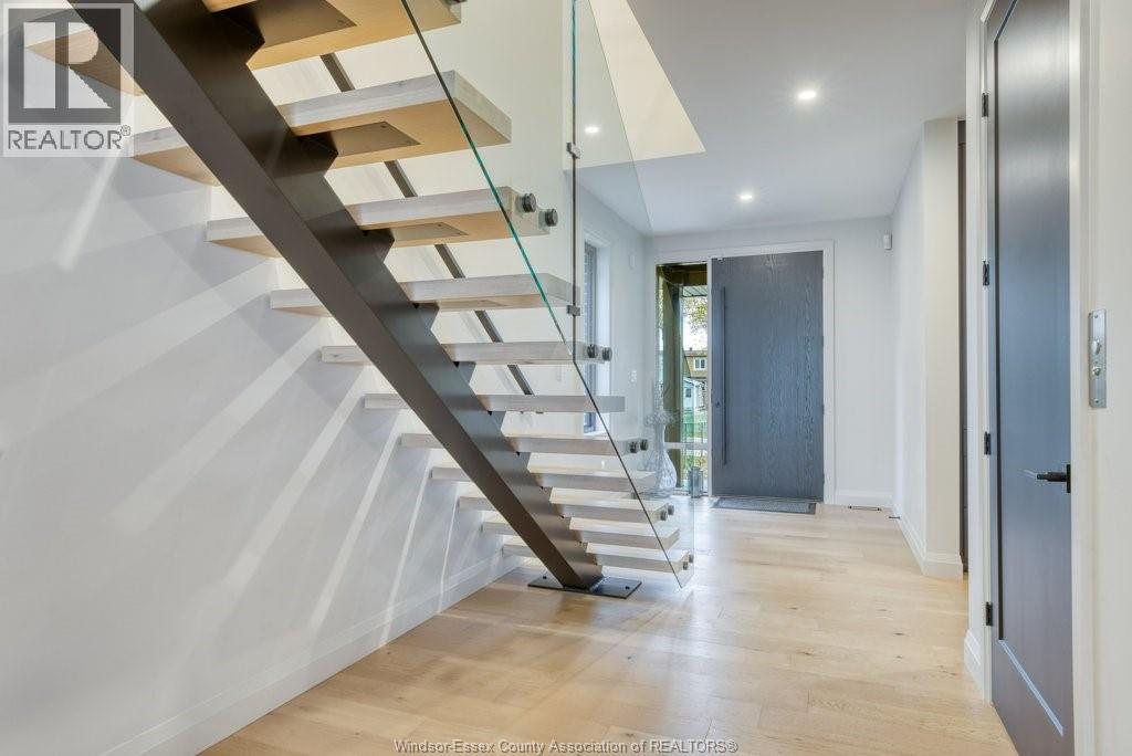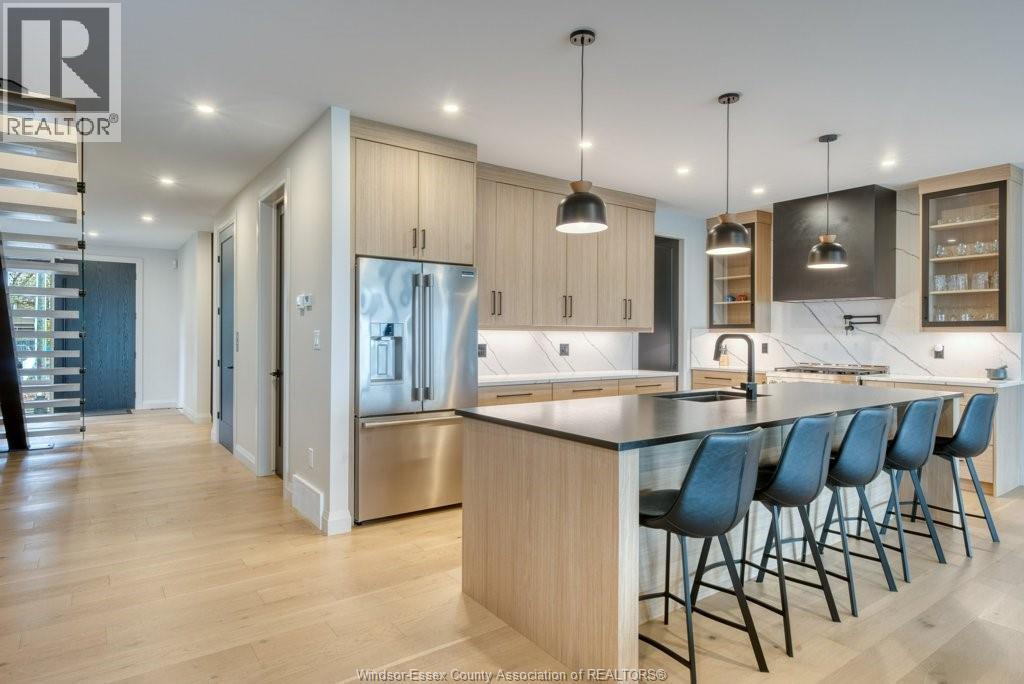 Welcome to 1512 Goodview Street, a newly built 2023 luxury waterfront home in one of Amherstburg’s most desirable neighbourhoods. This modern two-storey Colson Homes build offers sleek design, high-end finishes, and stunning panoramic views of the Detroit River. The main level features an open-concept layout with a designer kitchen, quartz counters, a large island, and premium built-in appliances. The great room includes a gas fireplace and a full wall of glass doors leading to a covered patio with a stone outdoor fireplace. Upstairs, the primary suite offers a private balcony, walk-in closet, and spa-like ensuite with soaker tub, double vanity, and glass shower overlooking the water. Two additional bedrooms share a stylish 4-piece bath. Additional highlights include a residential elevator, custom mudroom, second-floor laundry, built-in office area, and steel two-tiered break wall—combining luxury living with true waterfront tranquility. (id:4555)