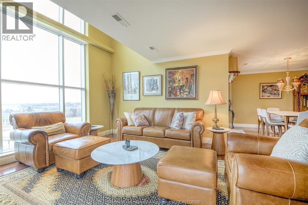 Experience refined waterfront living on exclusive Boblo Island in this stunning 2-storey penthouse condo offering over 2,100 sq ft of luxurious space. This spacious 3 bedroom suite showcases expansive windows and four private balconies, including a spectacular rooftop patio with panoramic views of the Amherstburg Channel, the waterfront, and passing ships. Enjoy breathtaking sunrises and sunsets from every vantage point. The open-concept main floor features a gourmet kitchen with a bright inviting living area-perfect for entertaining or relaxing in style. A loft-style second level adds architectural interest and flexible living space. High-end finishes are found throughout, complemented by in-unit laundry and generous storage. Residents enjoy resort-style amenities including an exercise room, party room, scenic walking trails, sandy beaches, and marina access. All just a quick 3-minute ferry ride to historic Amherstburg. (id:4555)