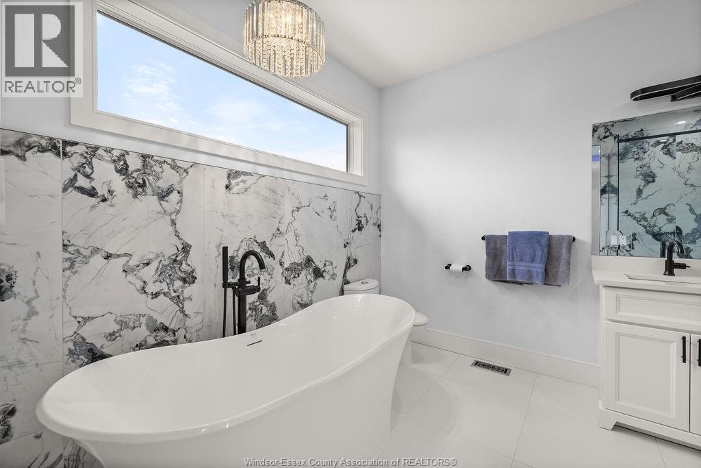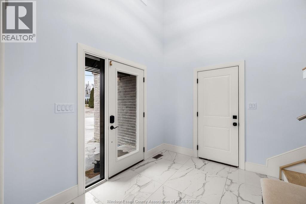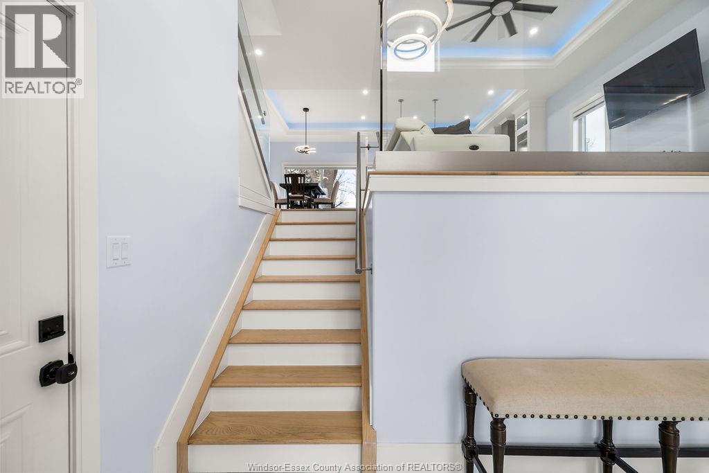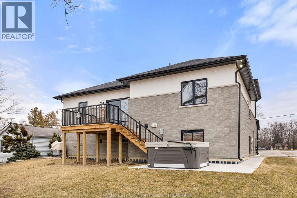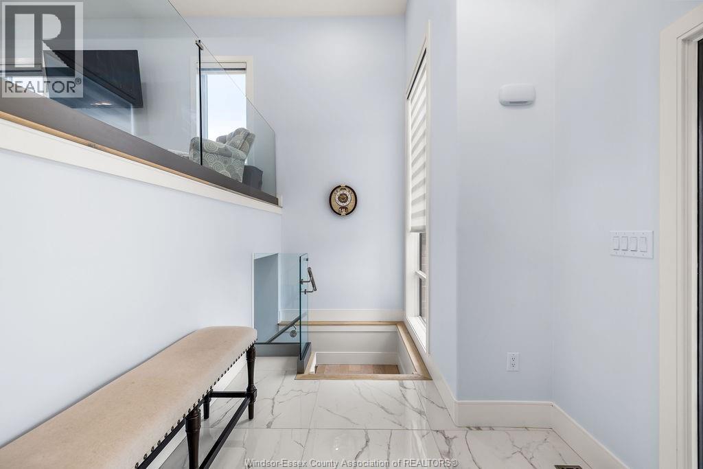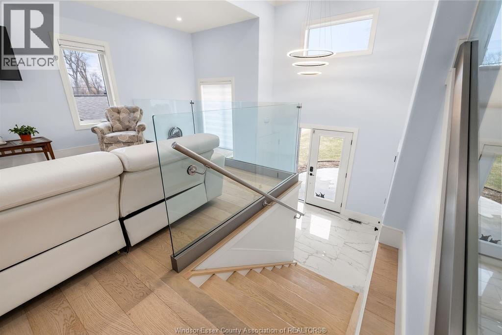 2yr new Cutting Edge, Loaded+ Water Views! Just Absolutely Breath-Taking Styles & Finishes!!! A must see! 10'4"" XX-tall basement ceiling, 9' main flr trayed up to 10' !!! Beautiful XL Quartz kitchen, Hi-End S/Steel Appliances, commercial gas stove, hood fan+ pot filler, b/splash, XXL 30x30 gorgeous flr tile, massive Island, 8' patio dr, uniquely open to living rm with X-Tall raised boxed ceilings, accented indirect lighting & pot lites! Luxurious Ensuite for the XL Private Master Suite, soaker tub, 1pc toilet, 5'x3'custom shower, double sinks, organized walkin closet + balcony walk out with ultra sleek glass rails. Enjoy main flr laundry, front load LG washer/dry + quartz working top. All hardwood thru-out continue into main flr bedrms (1 has walkin) + a sharp main bath with double quartz sink top. Heavy Duty borderless Clear Glass rails thru-out complements the open bright atmosphere. The Excitement continues, wide open Lower with amazing 10'4""ceiling, 4' tall windows, tiled feature wall + 8' linear fireplace, 3rd beautiful full bath, bedrms 4 & 5. Heated Kit & Ensuite floors, power blinds, security cameras , wired for tv's & projector system, Premium Light fixts & ceilng fans, LED's, Premium Plumbing fixts, Glass/tile showers, 8' tall doors, Premium hardware, H/wood Stairs, 200 Amp service +++more! Eye catching exterior, stone brick, landscaped, Full concrete drive with Full Side-Walk to rear patio(wired for Hot Tub-excluded) & deck with Maint-Free Aluminium rails. 23' wide Insulated garage & 9'x8' decora doors + more! Skip the subdivision, take-in this laid back neighbourhood of ""Edgewater ""with cool breezes, gorgeous sunsets with raised views of the water & the U.S. , right above across from houses on the River! Just mins to full amenities in Amherstburg + easy relax drive to Windsor with a properly yr round maintained 4 lane road! All approx. (id:4555)