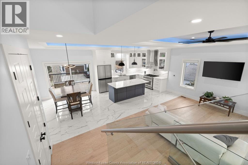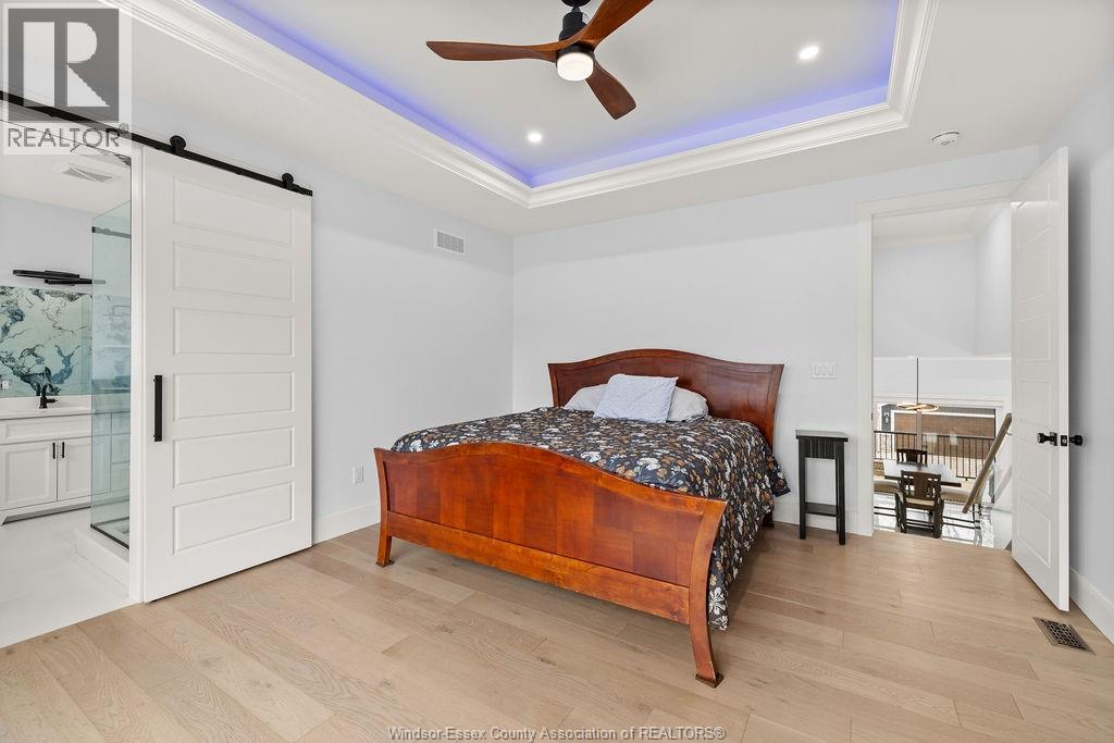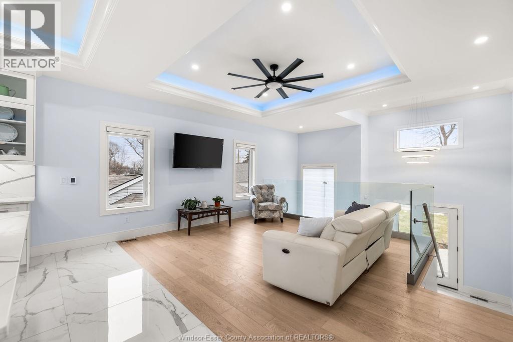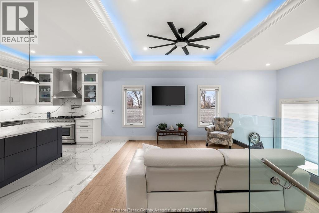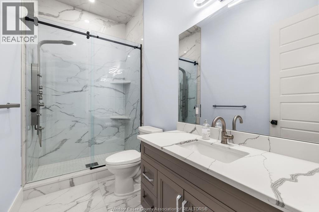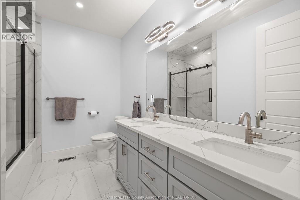 2yr new Cutting Edge, Loaded+ Water Views! Just Absolutely Breath-Taking Styles & Finishes!!! A must see! 10'4"" XX-tall basement ceiling, 9' main flr trayed up to 10' !!! Beautiful XL Quartz kitchen, Hi-End S/Steel Appliances, commercial gas stove, hood fan+ pot filler, b/splash, XXL 30x30 gorgeous flr tile, massive Island, 8' patio dr, uniquely open to living rm with X-Tall raised boxed ceilings, accented indirect lighting & pot lites! Luxurious Ensuite for the XL Private Master Suite, soaker tub, 1pc toilet, 5'x3'custom shower, double sinks, organized walkin closet + balcony walk out with ultra sleek glass rails. Enjoy main flr laundry, front load LG washer/dry + quartz working top. All hardwood thru-out continue into main flr bedrms (1 has walkin) + a sharp main bath with double quartz sink top. Heavy Duty borderless Clear Glass rails thru-out complements the open bright atmosphere. The Excitement continues, wide open Lower with amazing 10'4""ceiling, 4' tall windows, tiled feature wall + 8' linear fireplace, 3rd beautiful full bath, bedrms 4 & 5. Heated Kit & Ensuite floors, power blinds, security cameras , wired for tv's & projector system, Premium Light fixts & ceilng fans, LED's, Premium Plumbing fixts, Glass/tile showers, 8' tall doors, Premium hardware, H/wood Stairs, 200 Amp service +++more! Eye catching exterior, stone brick, landscaped, Full concrete drive with Full Side-Walk to rear patio(wired for Hot Tub-excluded) & deck with Maint-Free Aluminium rails. 23' wide Insulated garage & 9'x8' decora doors + more! Skip the subdivision, take-in this laid back neighbourhood of ""Edgewater ""with cool breezes, gorgeous sunsets with raised views of the water & the U.S. , right above across from houses on the River! Just mins to full amenities in Amherstburg + easy relax drive to Windsor with a properly yr round maintained 4 lane road! All approx. (id:4555)