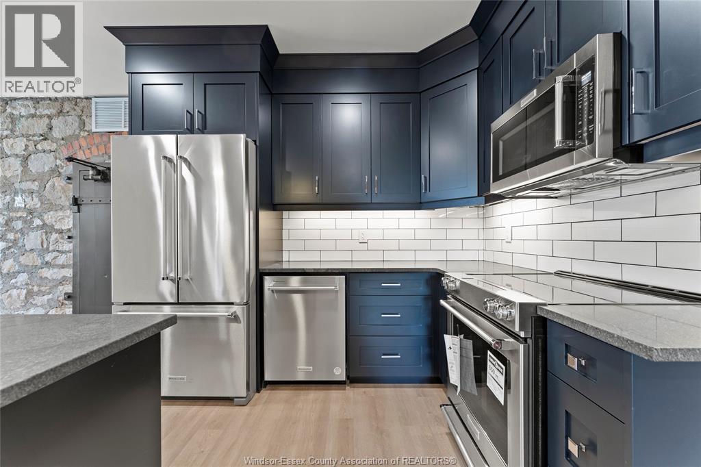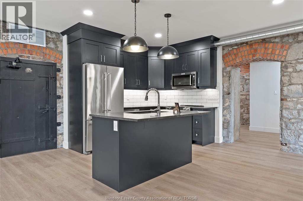 WELCOME TO THE 2042 SQFT MAJOR MODEL AT THE HIGHLY ANTICIPATED LOFTS AT ST. ANTHONY. ENJOY THE PERFECT BLEND OF OLD WORLD CHARM & MODERN LUXURY WITH THIS UNIQUE LOFT STYLE CONDO. FEATURING GLEAMING ENGINEERED HARDWOOD FLOORS, QUARTZ COUNTER TOPS IN THE SPACIOUS MODERN KITCHEN FEATURING LARGE CENTRE ISLAND AND FULL APPLIANCE PACKAGE. 2 SPACIOUS BEDROOMS COMPLETE WITH PRIMARY SUITE WITH ENSUITE BATH & WALK IN CLOSET. IN SUITE LAUNDRY. ADDITIONAL DEN PERFECT FOR AN OFFICE SPACE. BRIGHT AIRY LIVING ROOM WITH PLENTY OF WINDOWS. PRIVATE 295 SQ FT WALK OUT TERRACE WITH BBQ HOOK UP. THIS ONE OF A KIND UNIT FEATURES PLENTY OF ORIGINAL EXPOSED BRICK AND STONE. SITUATED IN A PRIME AMHERSTBURG LOCATION WALKING DISTANCE TO ALL AMENITIES INCLUDING AMHERSTBURG'S DESIRABLE DOWNTOWN CORE. DON'T MISS YOUR CHANCE TO BE PART OF THIS STUNNING DEVELOPMENT. (id:4555)
