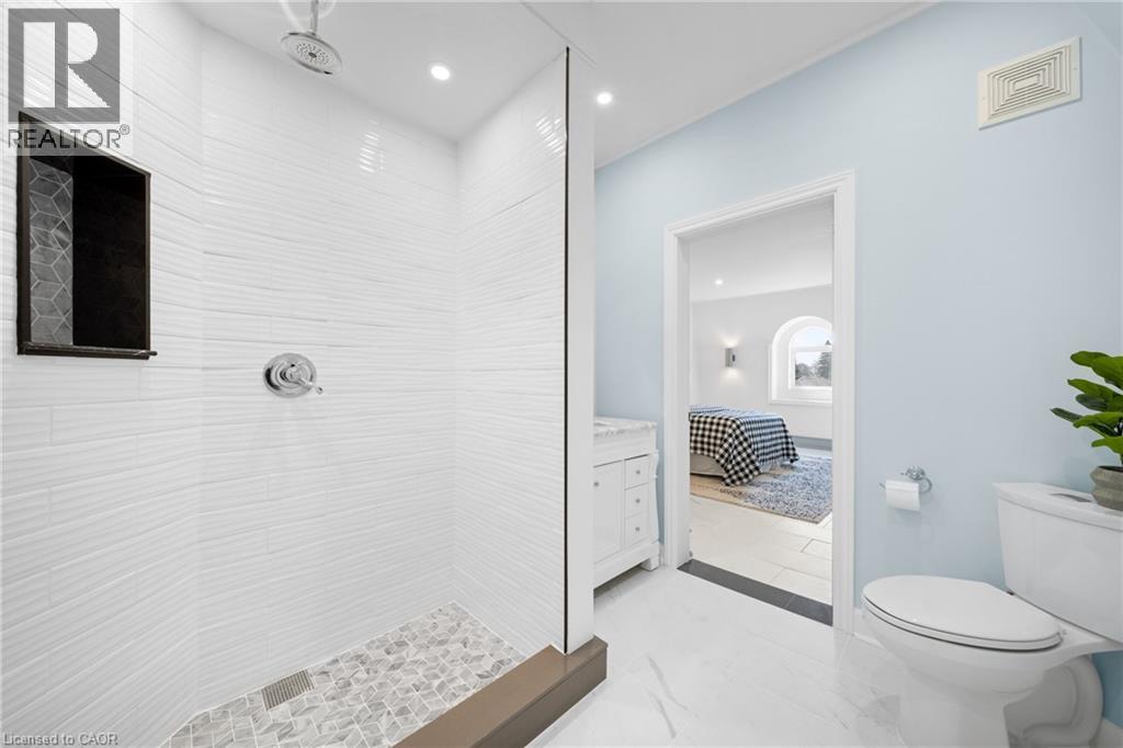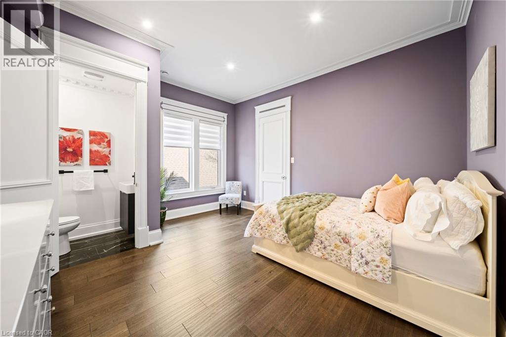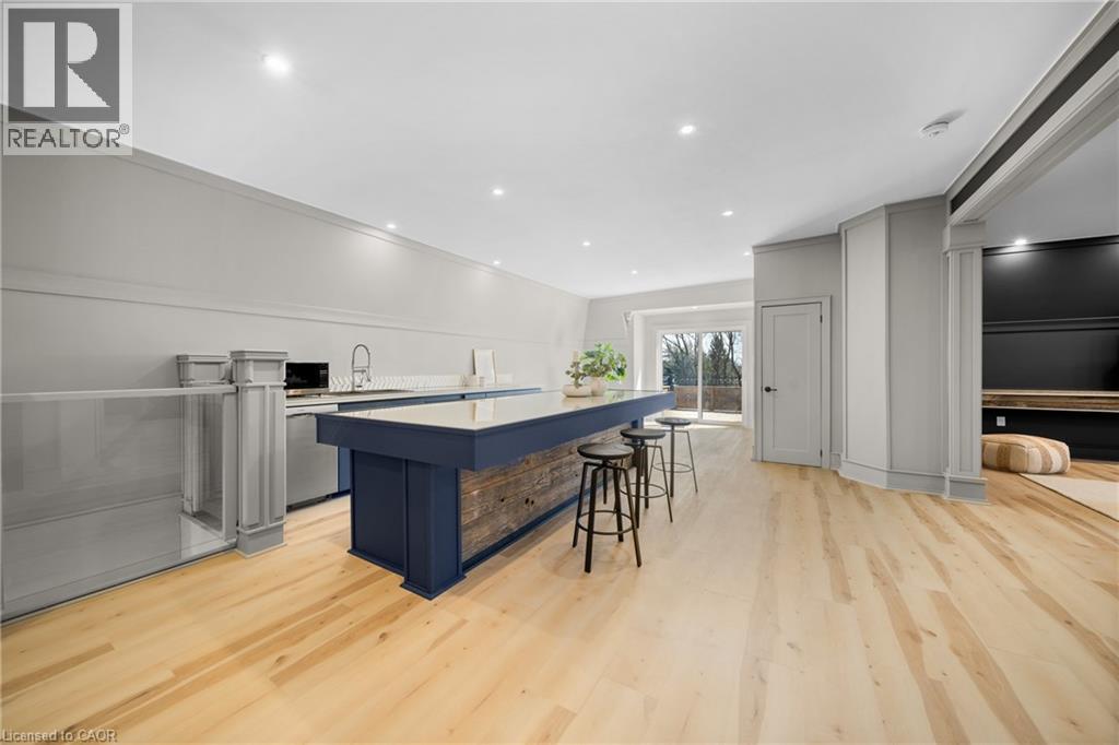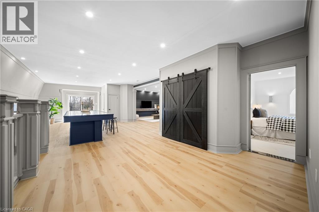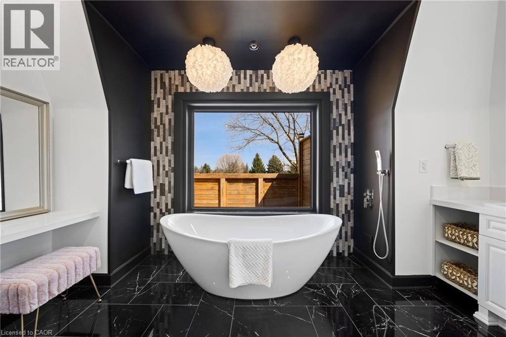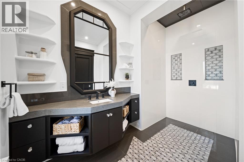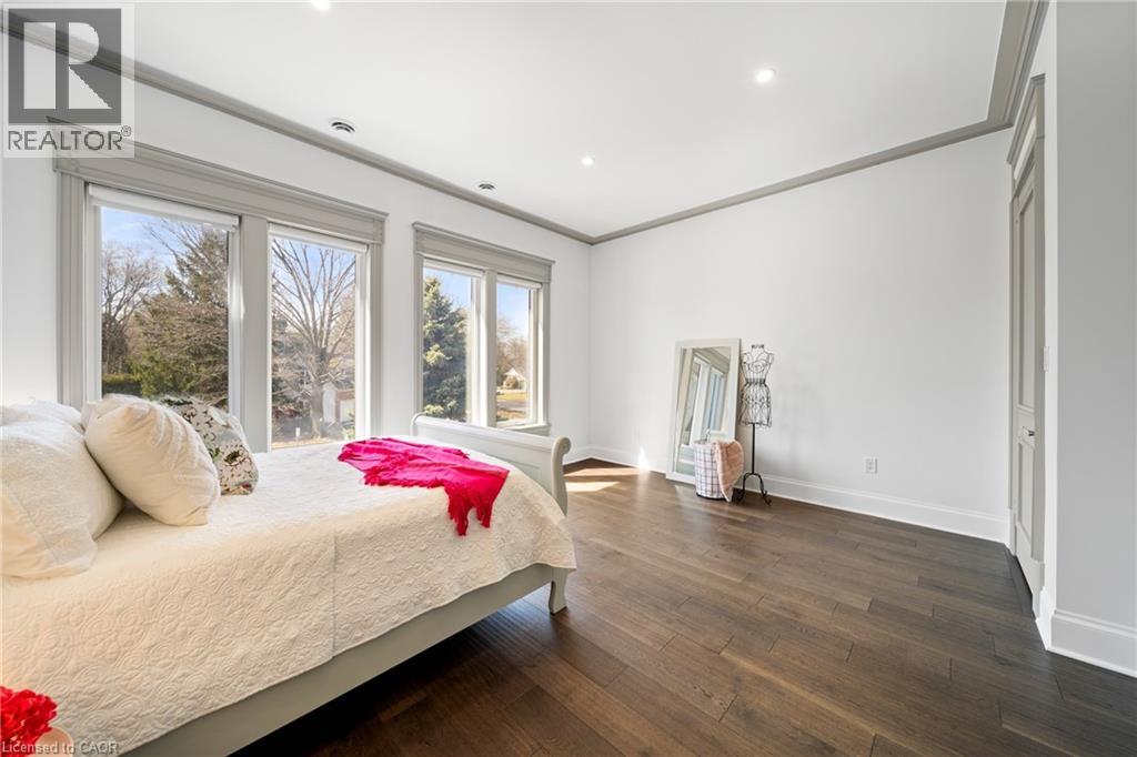 Nestled in scenic Ancaster Village, this French Chateau-inspired residence offers over 7,000 sqft of luxury backing onto the iconic Hamilton Golf Club, with sweeping views of one of Canada’s premier courses. This 3-storey masterpiece features 4 beds, 7 baths, 10.5’ soaring ceilings, custom millwork, and refined European design. The main floor is designed for entertaining, showcasing a gourmet kitchen with high-end appliances, quartz counters, custom cabinetry and a large island. Three sets of double doors open to a covered outdoor dining area. A formal dining room with chandelier, fireplace and wet bar adds elegance, while the family room with built-ins and fireplace connects seamlessly to the landscaped yard. Second level is dedicated to ultimate comfort, 3 spacious bedrooms each with private baths & walk-in closets. Primary suite boasts gorgeous stone fireplace, custom walk-in closet & spa-like ensuite with freestanding tub, rainfall shower, glass shower, and private terrace overlooking the golf course. Third level serves as a secluded refuge with spacious living room, large bedroom, full bath & kitchenette. A walk-out portico terrace offers panoramic views of the golf course. Lower level features 9' ceilings, a recroom, fitness room, family room with another fireplace, full bathroom, heated floors & a kitchenette. A wine cellar completes your chateau experience. The property boasts a cedar-ceiling covered deck, outdoor gas fireplace, mature trees for privacy, 5 fireplaces, 3 dishwashers, Terrazzo concrete driveway & large tandem garage with 4-post car lift for the car enthusiast. Crafted with an ICF foundation and whole-home hydronic in-floor heating across all four levels, the residence delivers year-round comfort, remarkably low operating costs, and a reduced carbon footprint—luxury that’s as smart as it is beautiful. Close to fine dining, shopping, trails, and conservation areas, this property is a rare haven of sophistication, luxury, and timeless elegance. (id:4555)