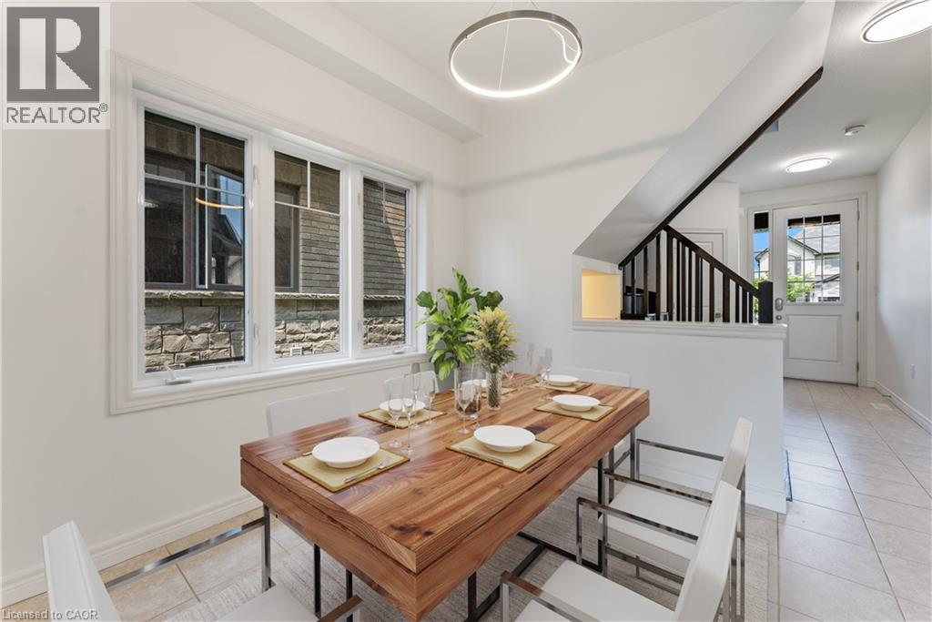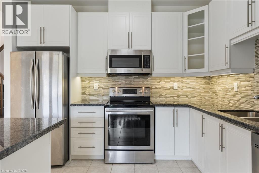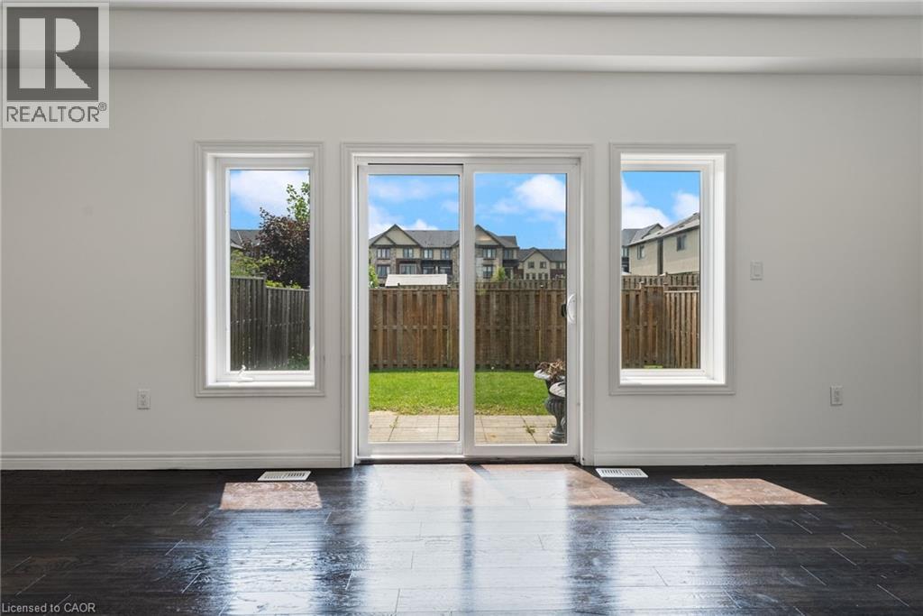 Executive end unit townhome in Ancaster! This spacious home offers a bright open-concept layout with oversized windows and plenty of natural light throughout. The main level features a modern kitchen with granite countertops, brand new fridge and stove, a large island and hardwood floors, all complimented by soaring 9 ft ceilings. Upstairs, you'll find 3 bedrooms, including a primary suite with ensuite bath, plus the convenience of a second-floor laundry room. Tucked away in a quiet and family-friendly neighborhood, just minutes from schools, shopping, restaurants, Hamilton Golf & Country Club, Highway 403 & transit to McMaster & Redeemer Universities. Note: Long driveway parking for 2 cars and the garage (total 3 parking spaces). Fully fenced spacious back yard. rent +all Utilities +hot water tank rental. requires Rental application ,single Key ,Id ,job letters, 4 pay stabs, ( Single Key will be done at the end just to verify all information.) (id:4555)