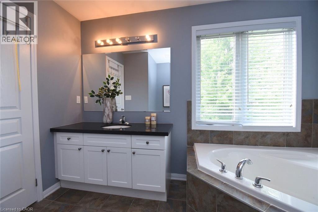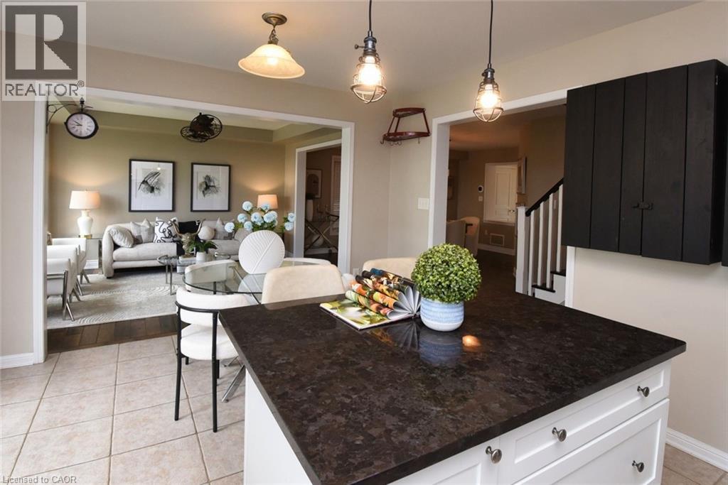 Fantastic family home in Ancaster Meadowlands! Main floor with open concept kitchen and living area with large bay window, full dining room. Updated flooring throughout. White kitchen cabinets with granite counters. 3 good sized bedrooms on the 2nd level, ensuite bathroom with granite counters, soaker tub. Large great room on the 2nd level with gas fireplace, can be converted into a 4th bedroom. Double garage with inside entry and unfinished basement with lots of potential and a rough-in for a 3 piece washroom. Close to schools, parks, easy access to Hwy 403 and Meadowlands shopping centre. (id:4555)
