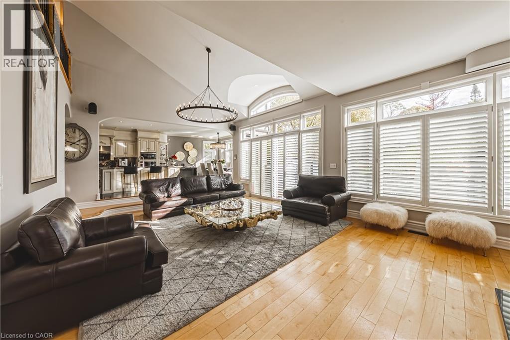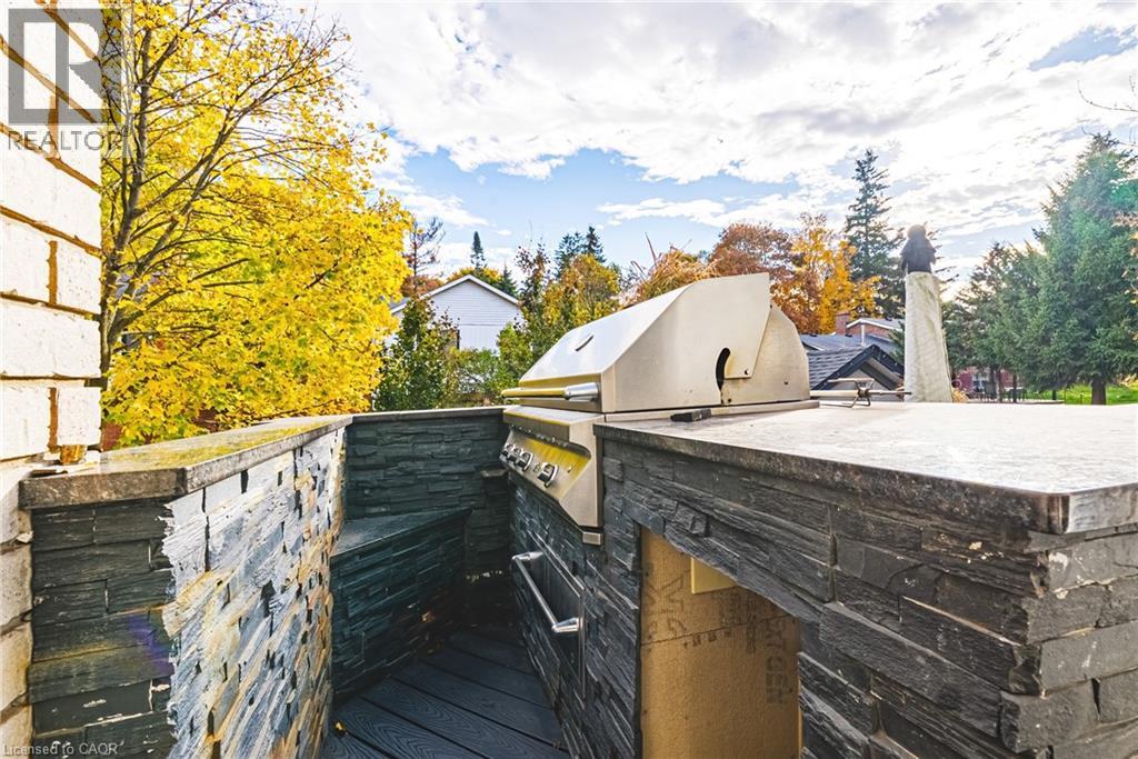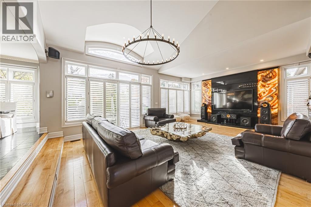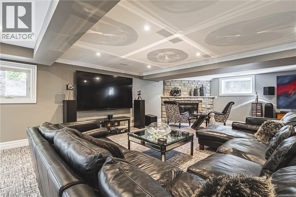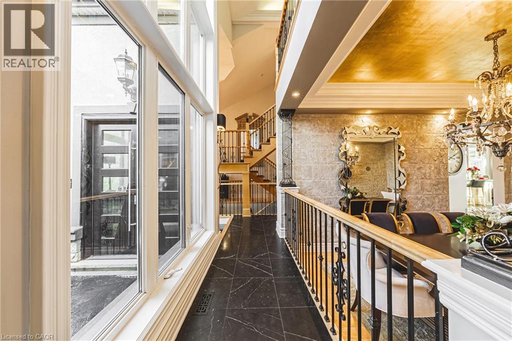 Unique, custom-built luxury home offering just over 5000 sq ft of Finished Living Space. Attention to detail & fine construction throughout, this home offers elegance, comfort, & functionality. Step into the grand sitting area, featuring soaring ceilings, stunning windows, & an impressive open staircase that connects all levels of the home. Sunken dining room boasts coffered gold leafing ceilings for refined entertaining. Custom Built Downsview kitchen offers abundant cabinetry, granite countertops, & top-of-the-line stainless steel appliances, including a Sub-Zero refrigerator, Wolf gas range, Gaggenau built-in oven, Miele dishwasher, & microwave storage. Relax or entertain in the expansive great room, featuring dramatic ceiling heights & a backlit onyx walls for your tv. An open-concept office with natural light, perfect workspace. Main-floor laundry room includes garage access. Upstairs, the spacious primary suite offers a large walk-in closet & a renovated 5-piece ensuite (2025). Two generous bedrooms share a beautifully appointed 4-piece bathroom, & a bright loft area overlooks both the front & rear of the home. The lower level features large windows & offers in-law suite potential with separate walk-ups to both the rear yard & garage. Cozy recreation room with fireplace, a fully equipped gym, a sauna for relaxation, 3 pc bath (2025), workshop, cold room, & plenty of storage space. The outdoor oasis includes a composite deck with built-in BBQ, hot tub, & an oversized waterfall feature with fireplace, artificial turf & a storage shed. Additional highlights include an oversized 2-car garage with abundant storage & a long interlock driveway accommodating up to 8 vehicles & irrigation system. Trillium award several years for landscaping. Ideally located near Tiffany Falls, Tamahaac Club, Highway 403, the Linc, Costco, schools, parks, & trails, luxury living with convenience & lifestyle. (id:4555)